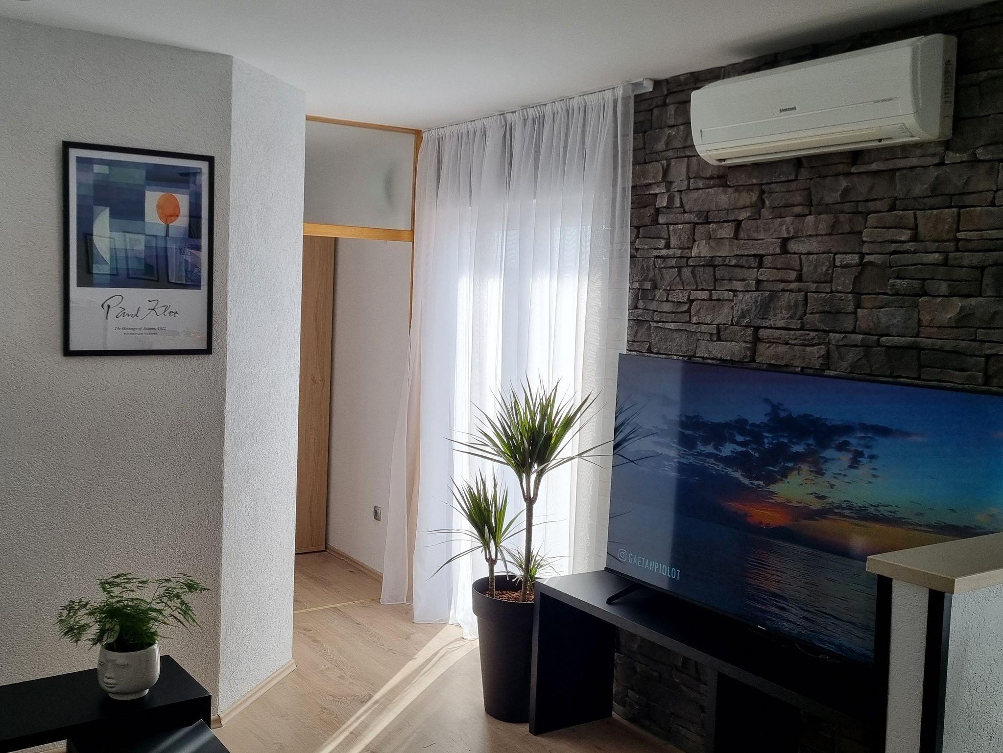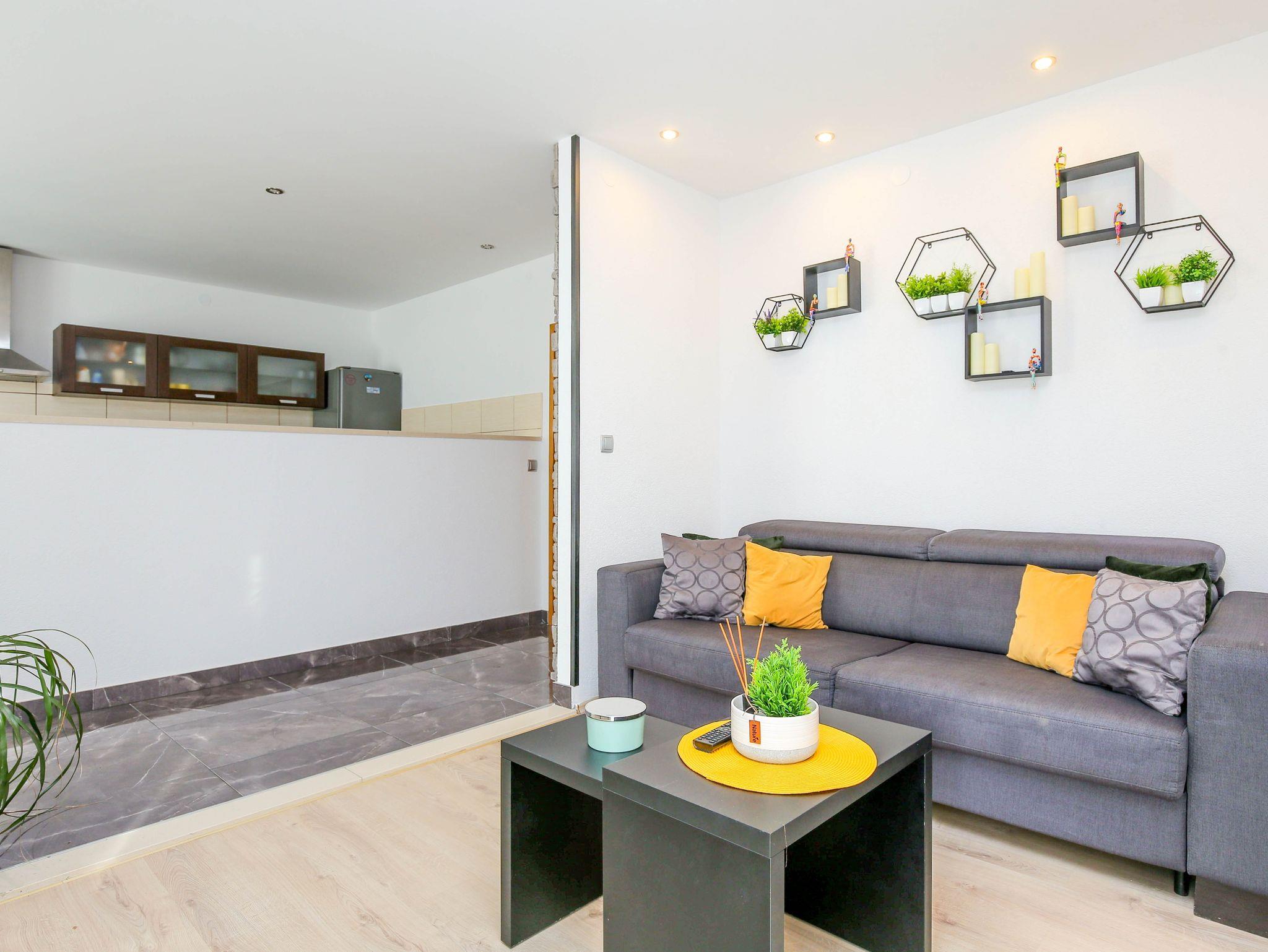 Ferienwohnung bietet Platz für 6 Gäste. Die Betten sind in Schlafzimmern, die es 3 gibt, innerhalb einer Gesamtfläche von 80m2, angeordnet. Die Gäste haben einen eigenen Balkon zur Verfügung, auf der sie in warmen Sommernächten genießen können. Das Apartment bietet Meerblick. Es ist erlaubt, Speisen auf dem Gemeinschafts-Grill vorzubereiten. In der Unterkunftseinheit besteht die Möglichkeit des Mitbringens von Haustieren, und die Dienstleistung ist im Preis der Unterkunft enthalten. IM PREIS INBEGRIFFEN: Kurtaxe, Endreinigung, Klimatisierung, Parkplatz, Internet, Haustiere, Kinderbett, Bügeleisen, Bügelbrett, Föhn. Die Verfügbarkeit zusätzlicher Dienstleistungen in Ihrem reservierten Termin und die Preise derselben (falls nicht aufgeführt) müssen im Voraus überprüft werden. Zusätzliche Dienstleistungen die in der Zahlungsaufforderung nicht aufgeführt sind werden direkt beim Vermieter bezahlt, angenommen der Gast nutzt auch diese. Ermäßigung auf den Grundpreis: Gratistag 14=13 (bei einem Aufenthalt von 14 Tagen oder mehr erhalten Sie einen Gratistag für den Aufenthalt bis 31.12.26).