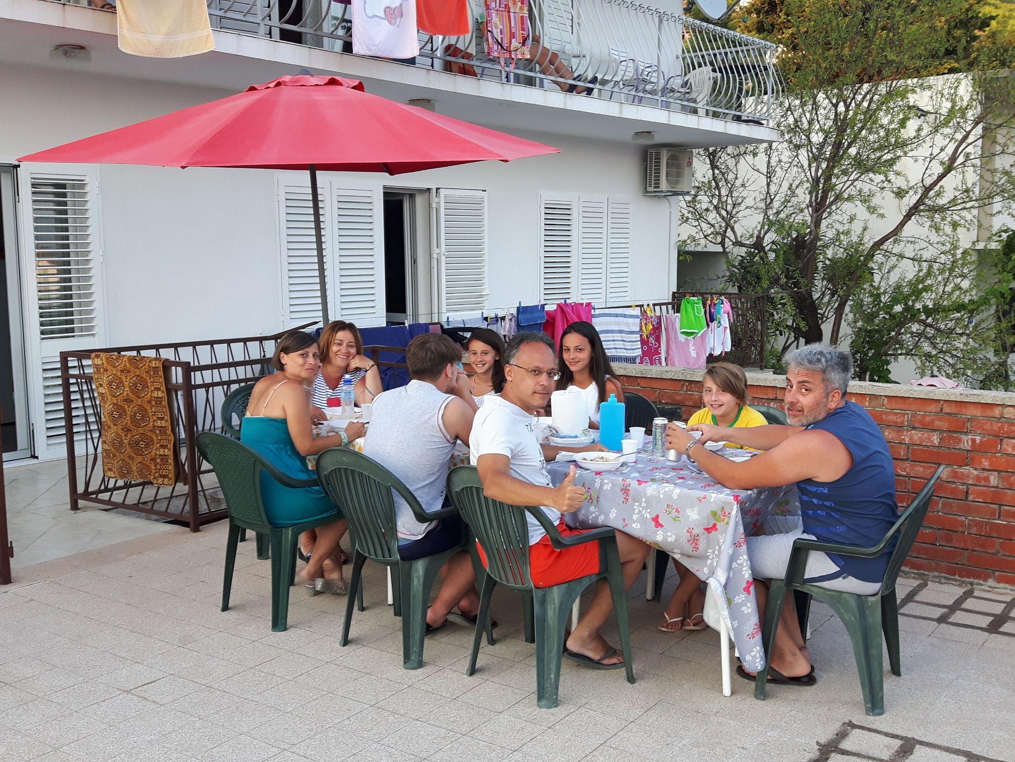 Ferienwohnung bietet Platz für 8 Gäste. Die Betten sind in Schlafzimmern, die es 3 gibt, innerhalb einer Gesamtfläche von 93m2, angeordnet. Die Gäste haben eine eigene Terrasse zur Verfügung, auf der sie in warmen Sommernächten genießen können. Das Apartment bietet Meerblick. Es ist erlaubt, Speisen auf dem Gemeinschafts-Grill vorzubereiten. IM PREIS INBEGRIFFEN: Kurtaxe, Endreinigung, Parkplatz, Internet, Bügeleisen, Bügelbrett, Föhn. VERBINDLICHE ZUSÄTZLICHE KOSTEN: Aufzahlung für Kurzaufenthalte (prozentualer Zuschlag pro Nächtigungsanzahl: 30% - 1, 20% - 2, 10% - 3). UNVERBINDLICHE ZUSÄTZLICHE KOSTEN: Klimatisierung (15,00 € pro Nacht). Die Verfügbarkeit zusätzlicher Dienstleistungen in Ihrem reservierten Termin und die Preise derselben (falls nicht aufgeführt) müssen im Voraus überprüft werden. Zusätzliche Dienstleistungen die in der Zahlungsaufforderung nicht aufgeführt sind werden direkt beim Vermieter bezahlt, angenommen der Gast nutzt auch diese.