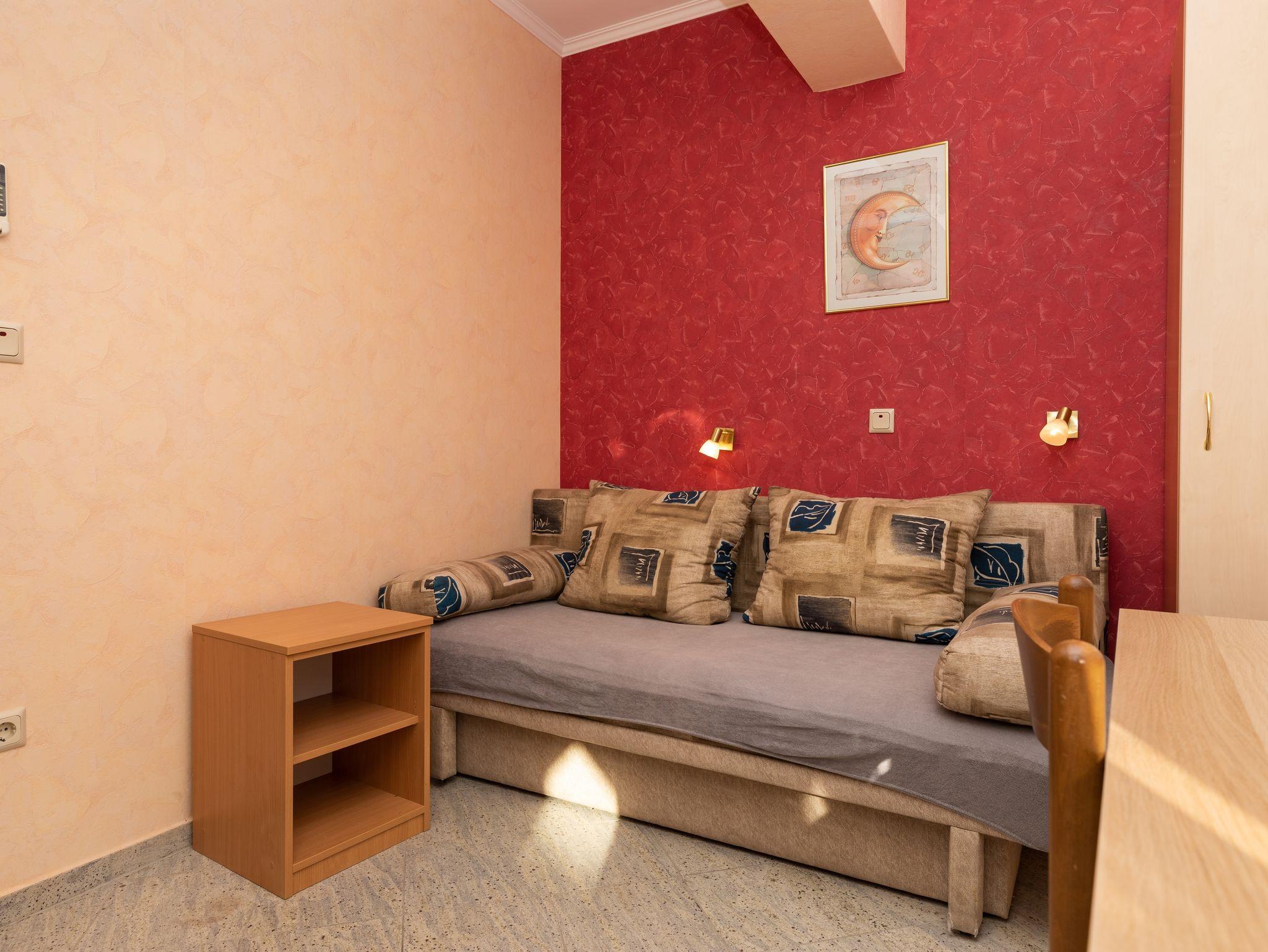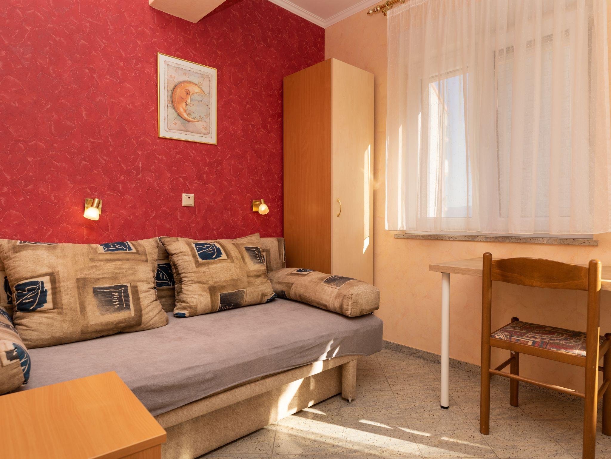 Ferienwohnung bietet Platz für 3 Gäste. Die Betten sind in Schlafzimmern, die es 1 gibt, und in Wohnzimmer, innerhalb einer Gesamtfläche von 22m2, angeordnet. Die Gäste haben einen eigenen Balkon zur Verfügung, auf der sie in warmen Sommernächten genießen können. Es ist erlaubt, Speisen auf dem Gemeinschafts-Grill vorzubereiten. IM PREIS INBEGRIFFEN: Kurtaxe, Endreinigung, Klimatisierung, Parkplatz, Internet, Bügeleisen, Bügelbrett. VERBINDLICHE ZUSÄTZLICHE KOSTEN: Aufzahlung für Kurzaufenthalte (prozentualer Zuschlag pro Nächtigungsanzahl: 30% - 1, 20% - 2, 10% - 3). UNVERBINDLICHE ZUSÄTZLICHE KOSTEN: Zentralheizung (5,00 € pro Nacht), Wäschewaschen (7,00 € Waschen). Die Verfügbarkeit zusätzlicher Dienstleistungen in Ihrem reservierten Termin und die Preise derselben (falls nicht aufgeführt) müssen im Voraus überprüft werden. Zusätzliche Dienstleistungen die in der Zahlungsaufforderung nicht aufgeführt sind werden direkt beim Vermieter bezahlt, angenommen der Gast nutzt auch diese. Ermäßigung auf den Grundpreis: Gratistag 14=13 (bei einem Aufenthalt von 14 Tagen oder mehr erhalten Sie einen Gratistag für den Aufenthalt bis 31.12.26).