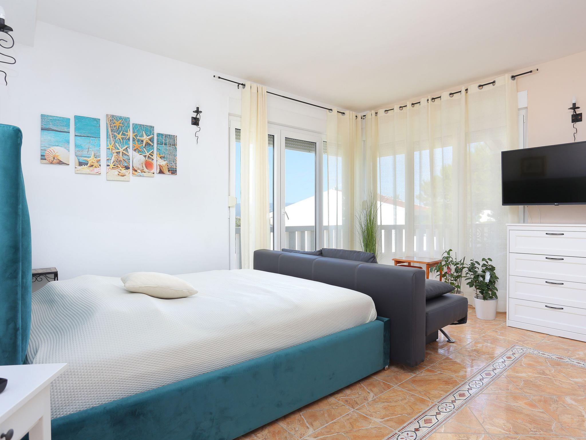 Ferienwohnung bietet Platz für 5 Gäste. Die Betten sind in Schlafzimmern, die es 1 gibt, und in Wohnzimmer, innerhalb einer Gesamtfläche von 57m2, angeordnet. Die Gäste haben eine eigene Terrasse zur Verfügung, auf der sie in warmen Sommernächten genießen können. Das Apartment bietet Meerblick. Es ist erlaubt, Speisen auf dem Gemeinschafts-Grill vorzubereiten. In der Unterkunftseinheit besteht die Möglichkeit des Mitbringens von Haustieren gegen Aufpreis. IM PREIS INBEGRIFFEN: Kurtaxe, Endreinigung, Klimatisierung, Parkplatz, Internet, Kinderbett, Bügeleisen, Bügelbrett, Föhn. VERBINDLICHE ZUSÄTZLICHE KOSTEN: Aufzahlung für Kurzaufenthalte (prozentualer Zuschlag pro Nächtigungsanzahl: 30% - 1, 20% - 2, 10% - 3). UNVERBINDLICHE ZUSÄTZLICHE KOSTEN: Haustiere (5,00 € pro Nacht). Die Verfügbarkeit zusätzlicher Dienstleistungen in Ihrem reservierten Termin und die Preise derselben (falls nicht aufgeführt) müssen im Voraus überprüft werden. Zusätzliche Dienstleistungen die in der Zahlungsaufforderung nicht aufgeführt sind werden direkt beim Vermieter bezahlt, angenommen der Gast nutzt auch diese.
