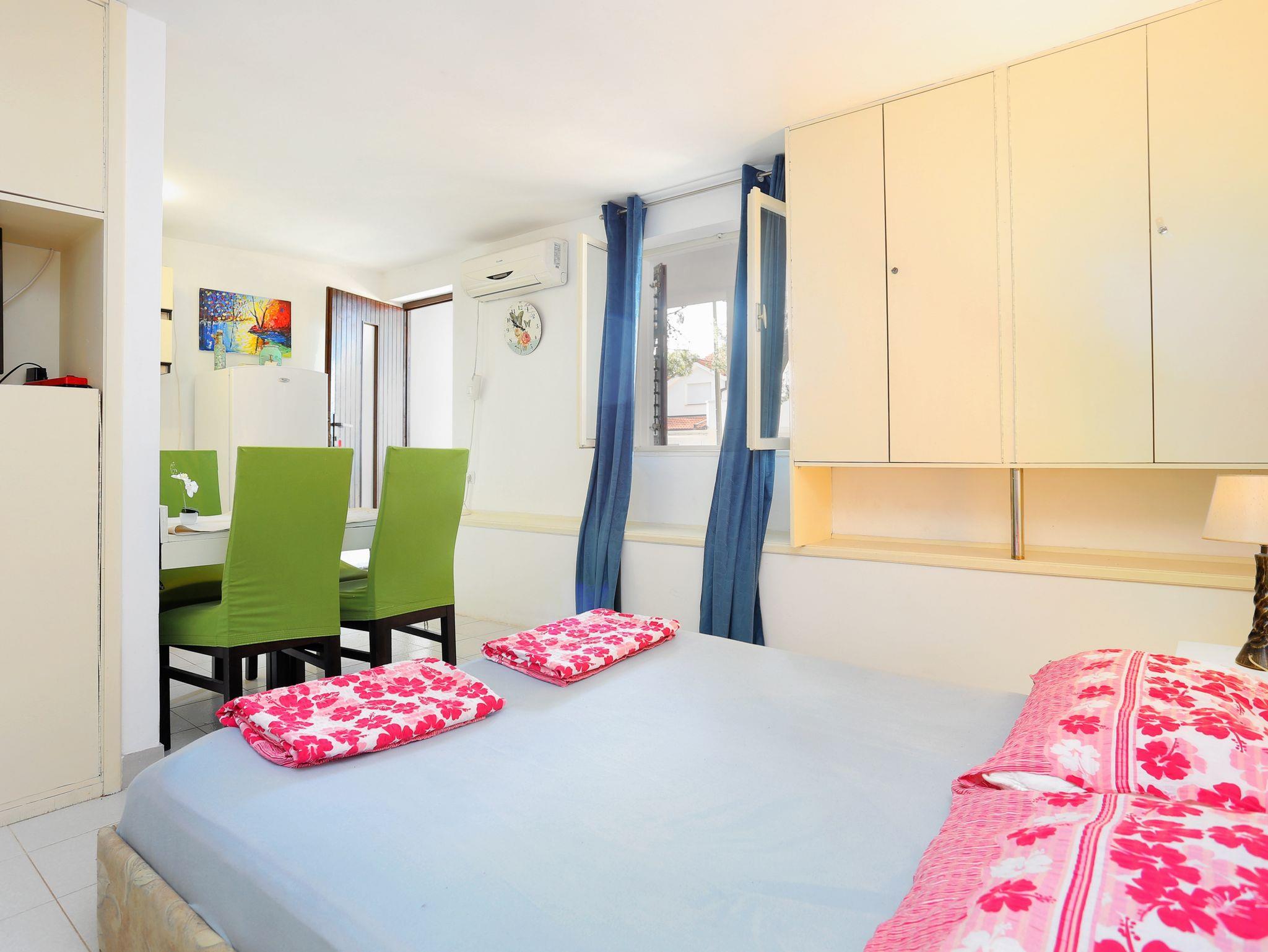 Studio bietet Platz für 4 Gäste. Die Betten sind in Schlafzimmern, die es 1 gibt, innerhalb einer Gesamtfläche von 20m2, angeordnet. Die Gäste haben eine eigene Terrasse zur Verfügung, auf der sie in warmen Sommernächten genießen können. Für vollen Genuss und Entspannung gibt es einen privaten Grill für Gäste dieser Unterkunft. In der Unterkunftseinheit besteht die Möglichkeit des Mitbringens von Haustieren gegen Aufpreis. IM PREIS INBEGRIFFEN: Kurtaxe, Endreinigung, Klimatisierung, Parkplatz, Internet, Föhn. VERBINDLICHE ZUSÄTZLICHE KOSTEN: Aufzahlung für Kurzaufenthalte (prozentualer Zuschlag pro Nächtigungsanzahl: 30% - 1, 20% - 2, 10% - 3). UNVERBINDLICHE ZUSÄTZLICHE KOSTEN: Haustiere (15,00 € pro Nacht). Die Verfügbarkeit zusätzlicher Dienstleistungen in Ihrem reservierten Termin und die Preise derselben (falls nicht aufgeführt) müssen im Voraus überprüft werden. Zusätzliche Dienstleistungen die in der Zahlungsaufforderung nicht aufgeführt sind werden direkt beim Vermieter bezahlt, angenommen der Gast nutzt auch diese.
