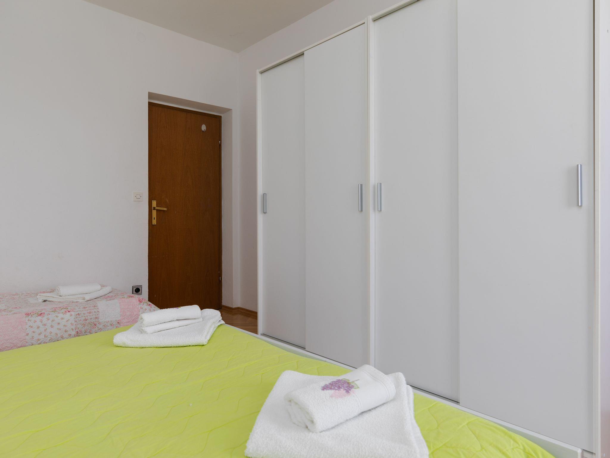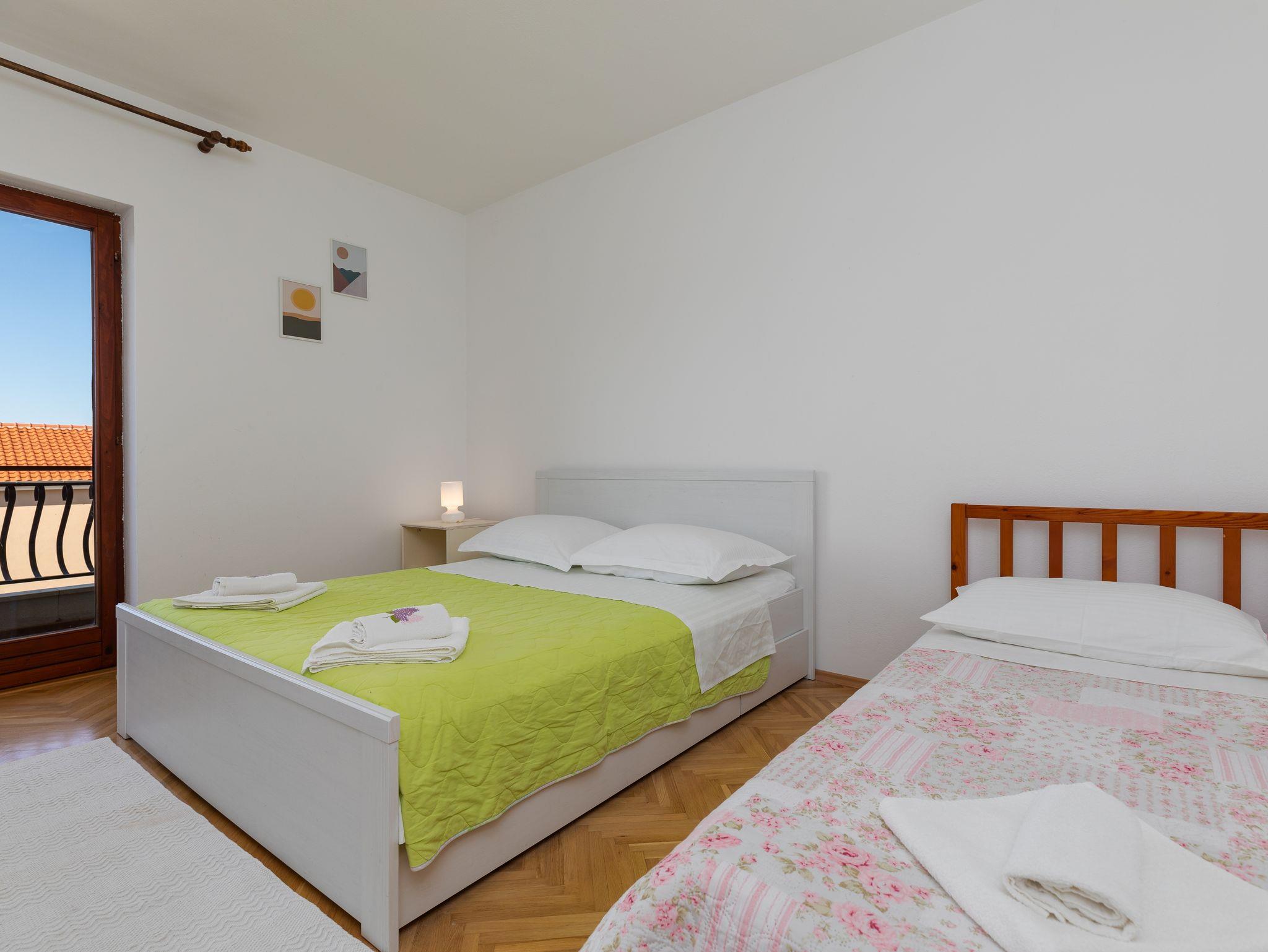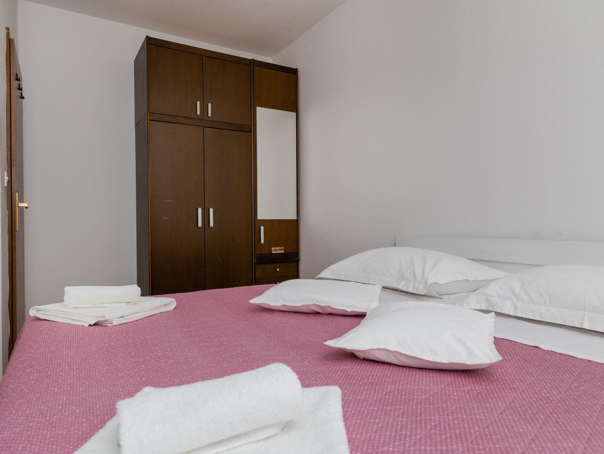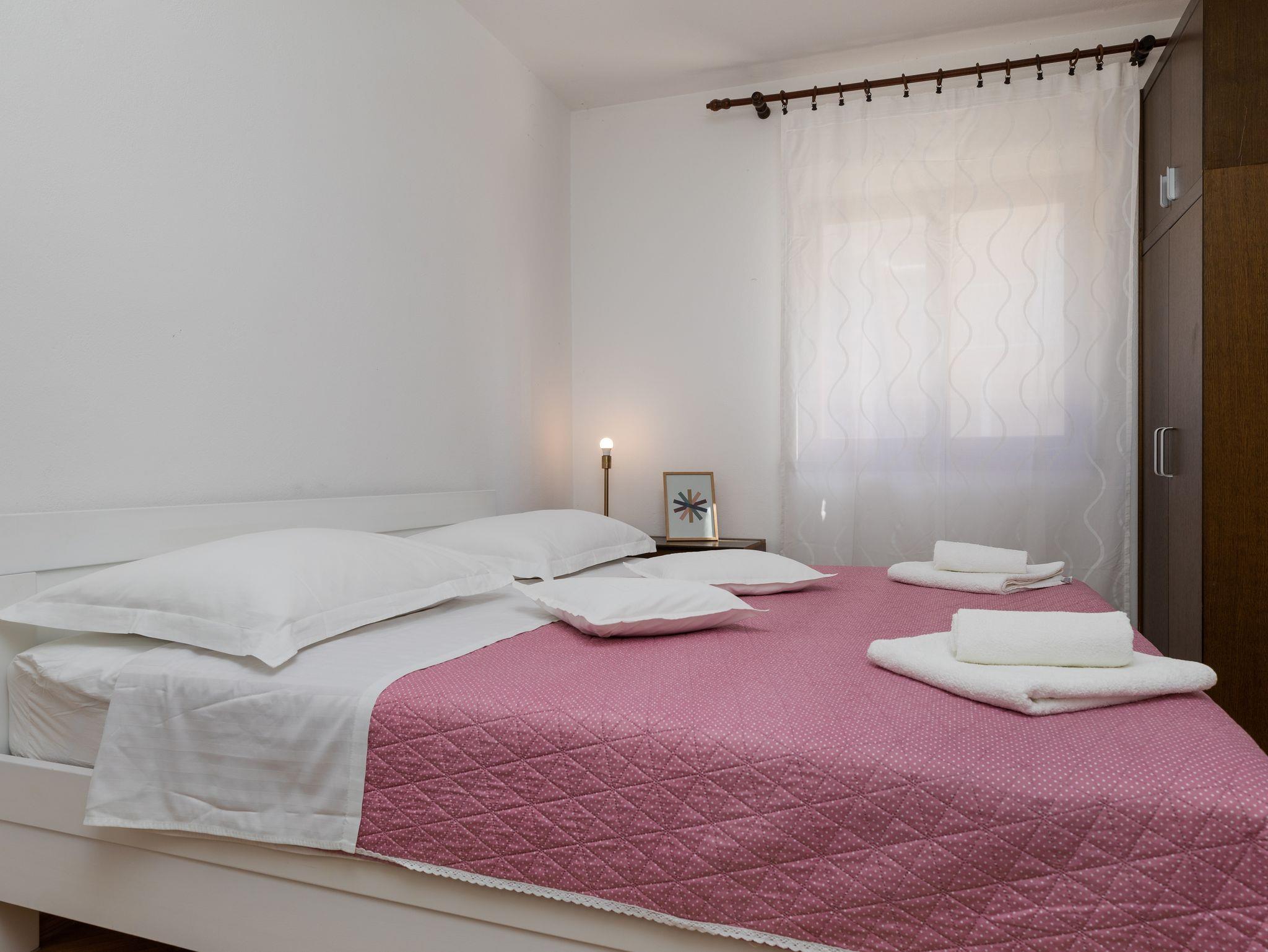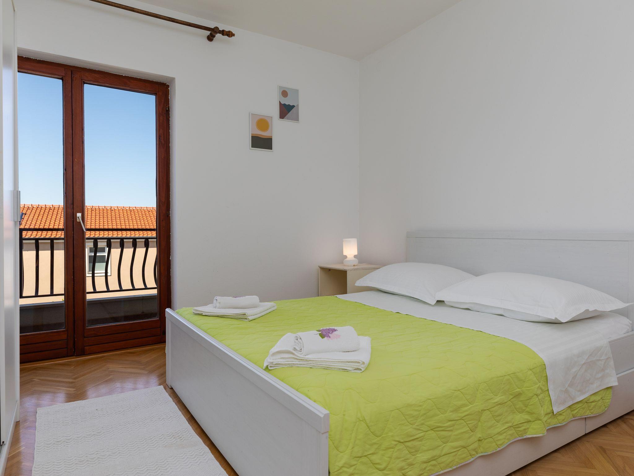 Ferienwohnung bietet Platz für 6 Gäste. Die Betten sind in Schlafzimmern, die es 2 gibt, und in Wohnzimmer, innerhalb einer Gesamtfläche von 61m2, angeordnet. Die Gäste haben eine eigene Terrasse zur Verfügung, auf der sie in warmen Sommernächten genießen können. Das Apartment bietet Meerblick. IM PREIS INBEGRIFFEN: Kurtaxe, Endreinigung, Klimatisierung, Parkplatz, Internet, Kinderbett, Zusatzbett, Bügeleisen, Bügelbrett, Föhn. VERBINDLICHE ZUSÄTZLICHE KOSTEN: Aufzahlung für Kurzaufenthalte (prozentualer Zuschlag pro Nächtigungsanzahl: 30% - 1, 20% - 2, 10% - 3). Die Verfügbarkeit zusätzlicher Dienstleistungen in Ihrem reservierten Termin und die Preise derselben (falls nicht aufgeführt) müssen im Voraus überprüft werden. Zusätzliche Dienstleistungen die in der Zahlungsaufforderung nicht aufgeführt sind werden direkt beim Vermieter bezahlt, angenommen der Gast nutzt auch diese. Ermäßigung auf den Grundpreis: Gratistag 14=13 (bei einem Aufenthalt von 14 Tagen oder mehr erhalten Sie einen Gratistag für den Aufenthalt bis 31.12.26).