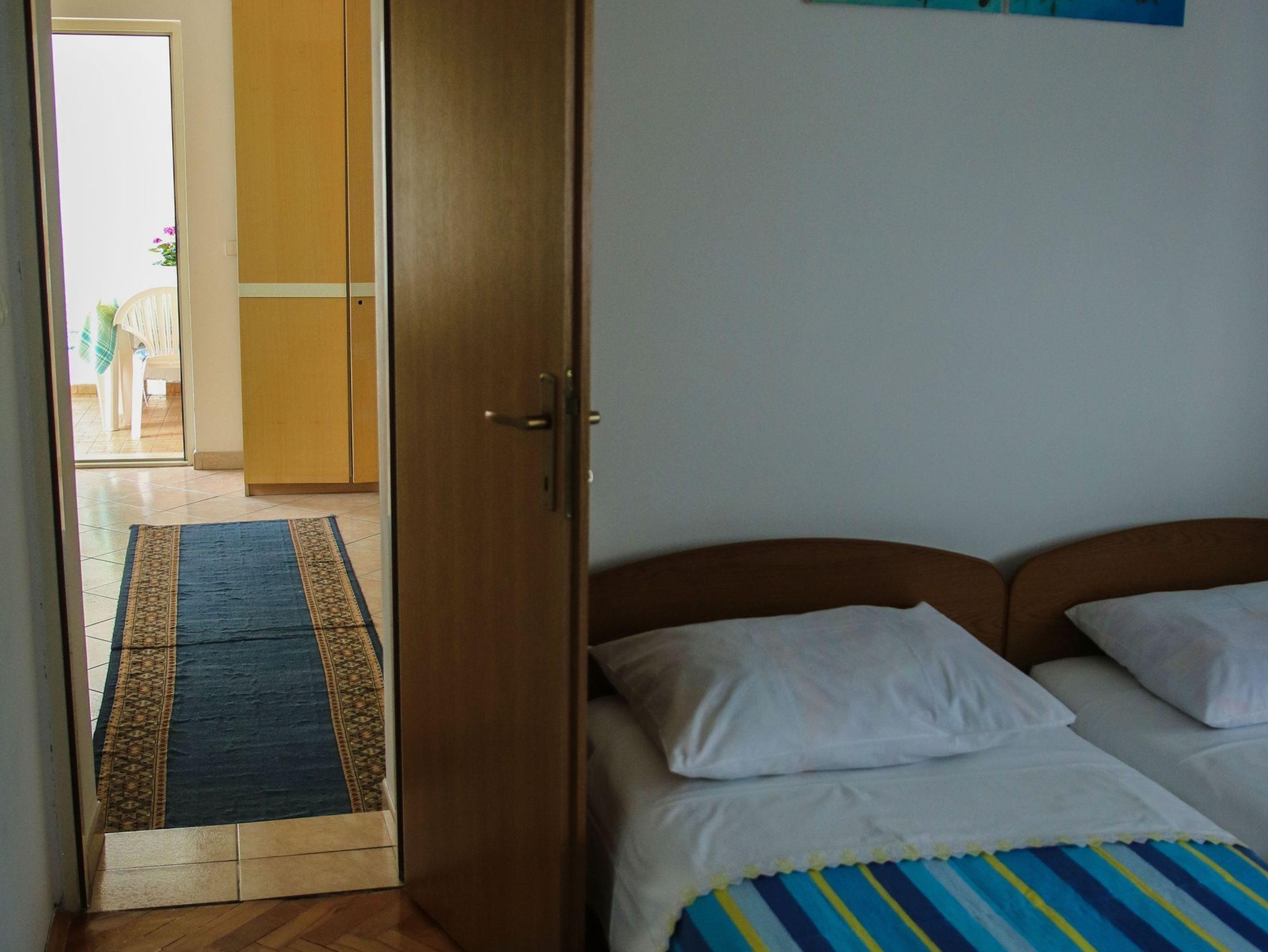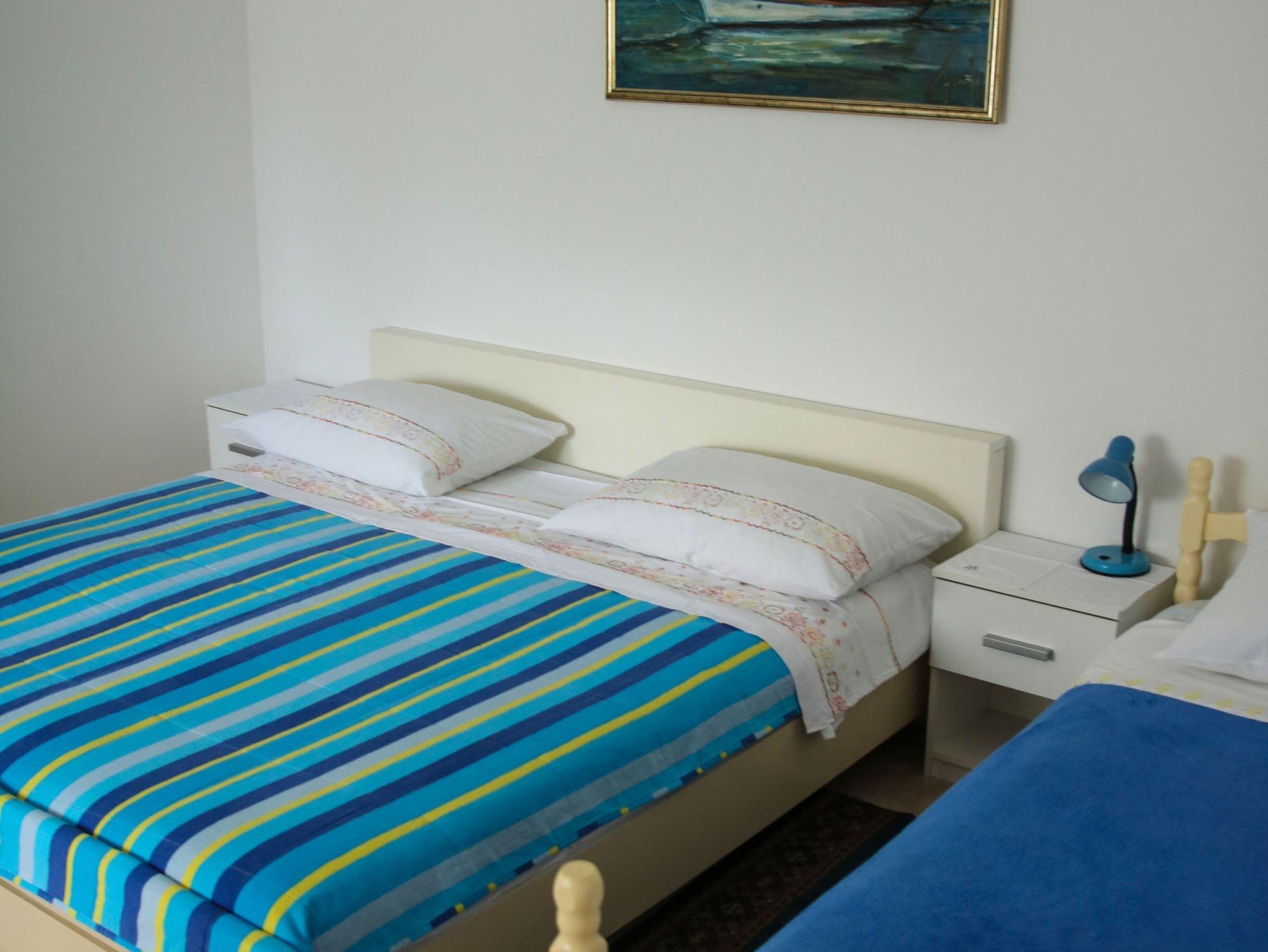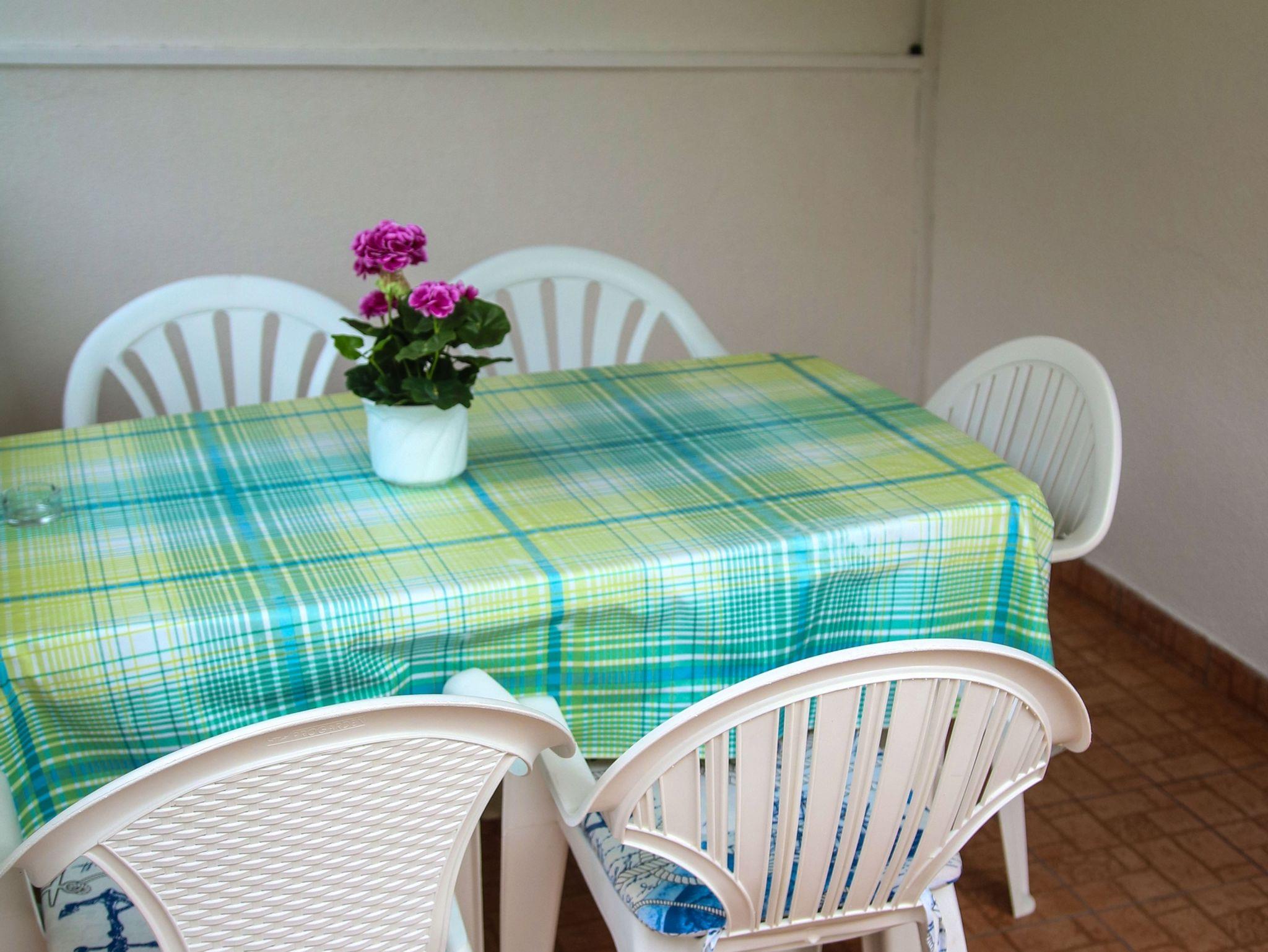 Ferienwohnung bietet Platz für 5 Gäste. Die Betten sind in Schlafzimmern, die es 1 gibt, und in Wohnzimmer, innerhalb einer Gesamtfläche von 33m2, angeordnet. Die Gäste haben eine eigene Terrasse zur Verfügung, auf der sie in warmen Sommernächten genießen können. Es ist erlaubt, Speisen auf dem Gemeinschafts-Grill vorzubereiten. IM PREIS INBEGRIFFEN: Kurtaxe, Endreinigung, Parkplatz, Internet, Bügeleisen, Bügelbrett, Föhn, tragbarer Grill. VERBINDLICHE ZUSÄTZLICHE KOSTEN: Aufzahlung für Kurzaufenthalte (prozentualer Zuschlag pro Nächtigungsanzahl: 30% - 1, 20% - 2, 10% - 3). UNVERBINDLICHE ZUSÄTZLICHE KOSTEN: Klimatisierung (5,00 € pro Nacht). Die Verfügbarkeit zusätzlicher Dienstleistungen in Ihrem reservierten Termin und die Preise derselben (falls nicht aufgeführt) müssen im Voraus überprüft werden. Zusätzliche Dienstleistungen die in der Zahlungsaufforderung nicht aufgeführt sind werden direkt beim Vermieter bezahlt, angenommen der Gast nutzt auch diese.
