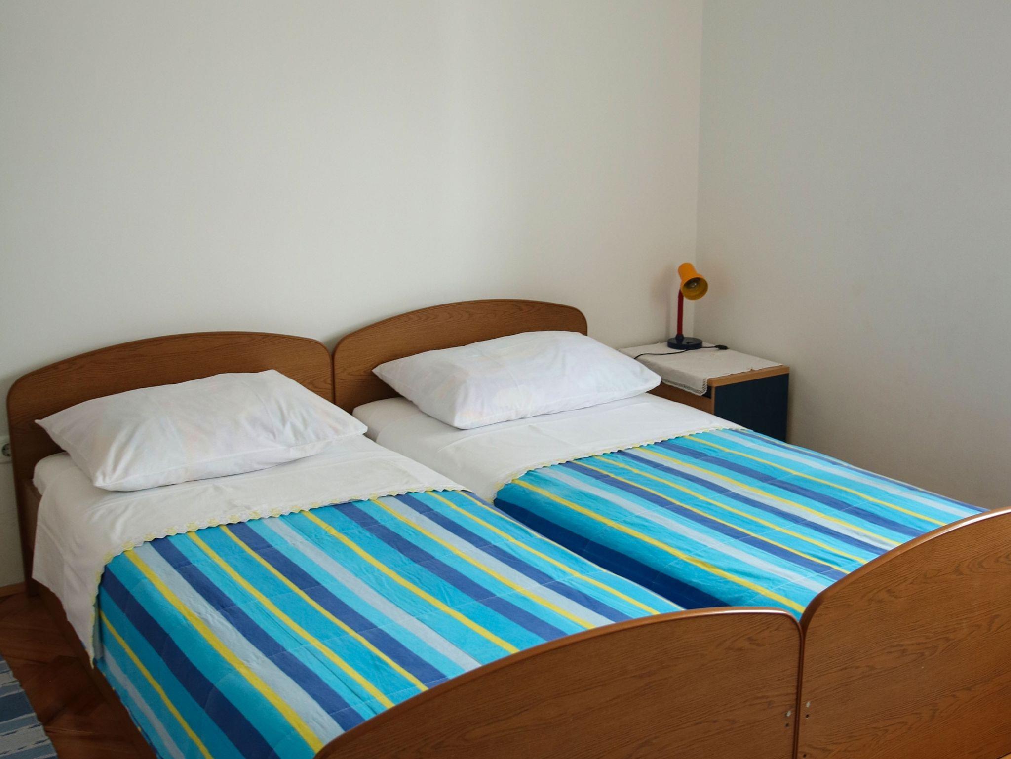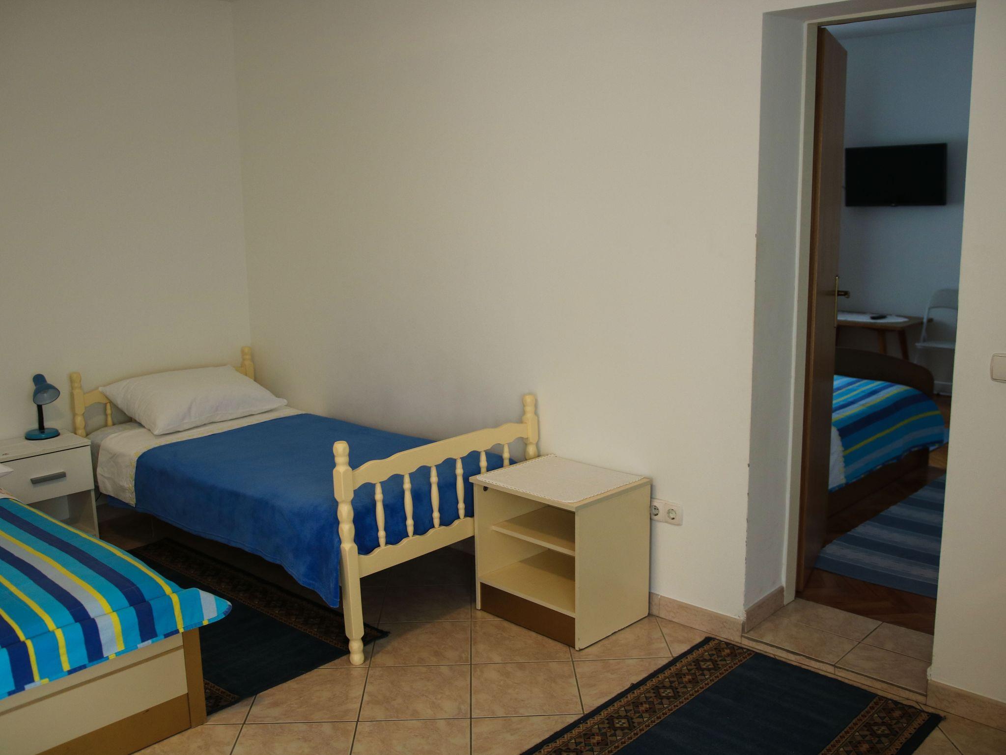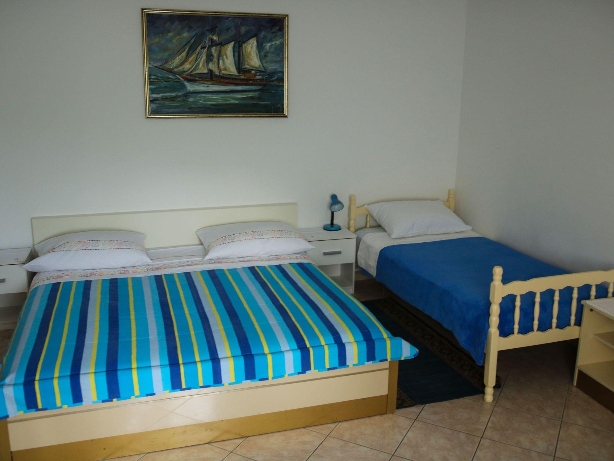Ferienwohnung bietet Platz für 5 Gäste. Die Betten sind in Schlafzimmern, die es 1 gibt, und in Wohnzimmer, innerhalb einer Gesamtfläche von 33m2, angeordnet. Die Gäste haben eine eigene Terrasse zur Verfügung, auf der sie in warmen Sommernächten genießen können. Es ist erlaubt, Speisen auf dem Gemeinschafts-Grill vorzubereiten. IM PREIS INBEGRIFFEN: Kurtaxe, Endreinigung, Parkplatz, Internet, Bügeleisen, Bügelbrett, Föhn, tragbarer Grill. VERBINDLICHE ZUSÄTZLICHE KOSTEN: Aufzahlung für Kurzaufenthalte (prozentualer Zuschlag pro Nächtigungsanzahl: 30% - 1, 20% - 2, 10% - 3). UNVERBINDLICHE ZUSÄTZLICHE KOSTEN: Klimatisierung (5,00 € pro Nacht). Die Verfügbarkeit zusätzlicher Dienstleistungen in Ihrem reservierten Termin und die Preise derselben (falls nicht aufgeführt) müssen im Voraus überprüft werden. Zusätzliche Dienstleistungen die in der Zahlungsaufforderung nicht aufgeführt sind werden direkt beim Vermieter bezahlt, angenommen der Gast nutzt auch diese.