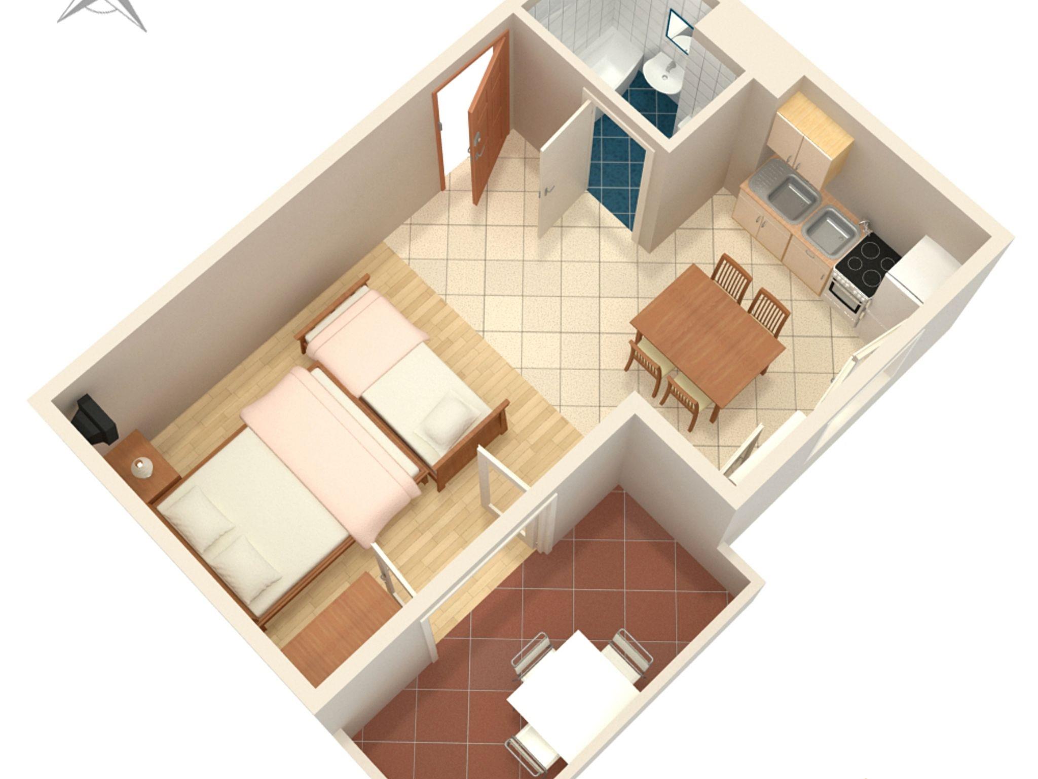 Studio bietet Platz für 4 Gäste. Die Betten sind in Schlafzimmern, die es 1 gibt, innerhalb einer Gesamtfläche von 27m2, angeordnet. Die Gäste haben eine eigene Terrasse zur Verfügung, auf der sie in warmen Sommernächten genießen können. Das Studio-Apartment bietet Meerblick. Es ist erlaubt, Speisen auf dem Gemeinschafts-Grill vorzubereiten. IM PREIS INBEGRIFFEN: Kurtaxe, Endreinigung, Klimatisierung, Parkplatz, Internet, Wäschewaschen, Bügeleisen, Bügelbrett, Föhn. VERBINDLICHE ZUSÄTZLICHE KOSTEN: Aufzahlung für Kurzaufenthalte (prozentualer Zuschlag pro Nächtigungsanzahl: 30% - 1, 20% - 2, 10% - 3). UNVERBINDLICHE ZUSÄTZLICHE KOSTEN: Zentralheizung (3,00 € pro Nacht). Die Verfügbarkeit zusätzlicher Dienstleistungen in Ihrem reservierten Termin und die Preise derselben (falls nicht aufgeführt) müssen im Voraus überprüft werden. Zusätzliche Dienstleistungen die in der Zahlungsaufforderung nicht aufgeführt sind werden direkt beim Vermieter bezahlt, angenommen der Gast nutzt auch diese.