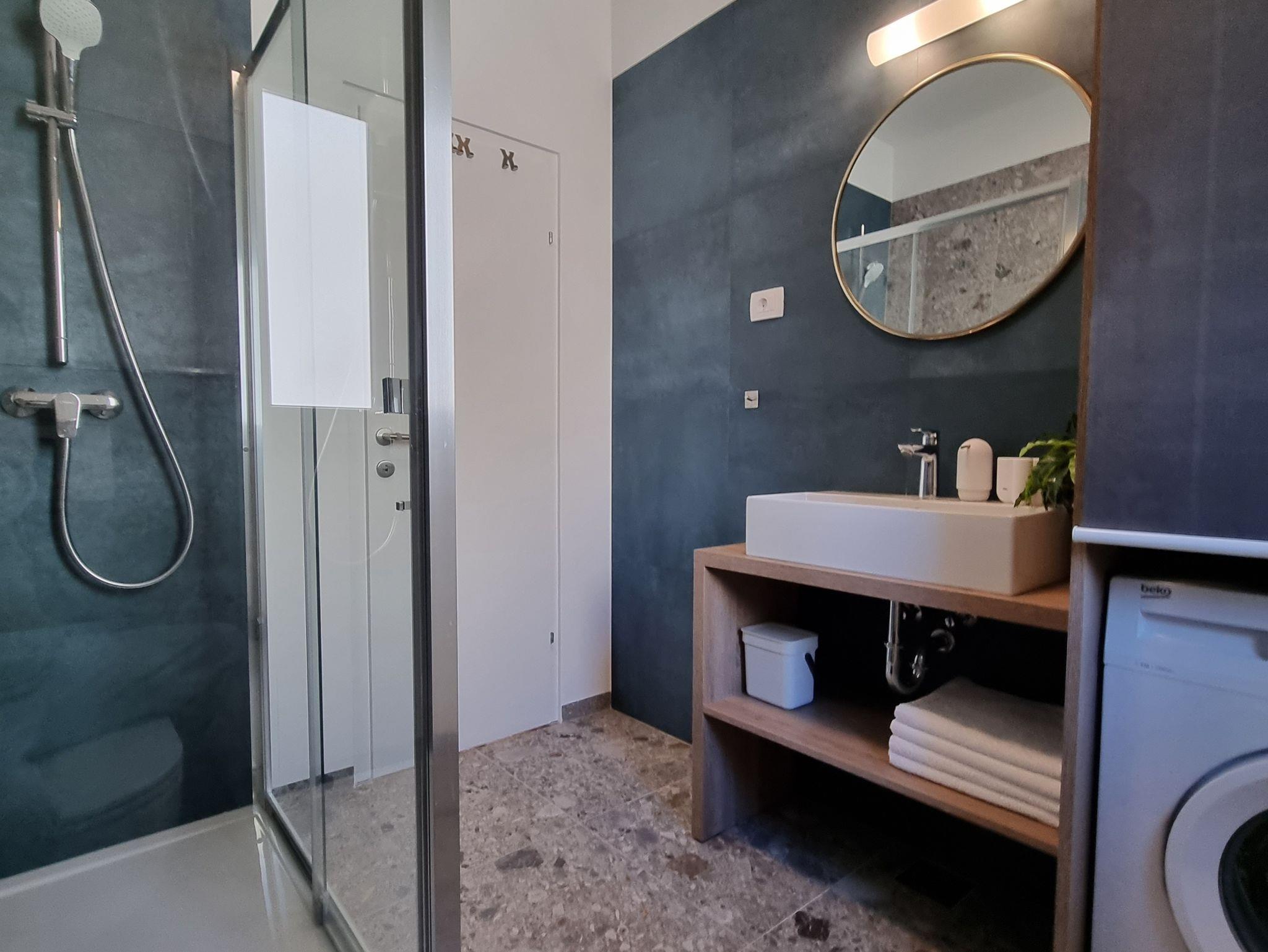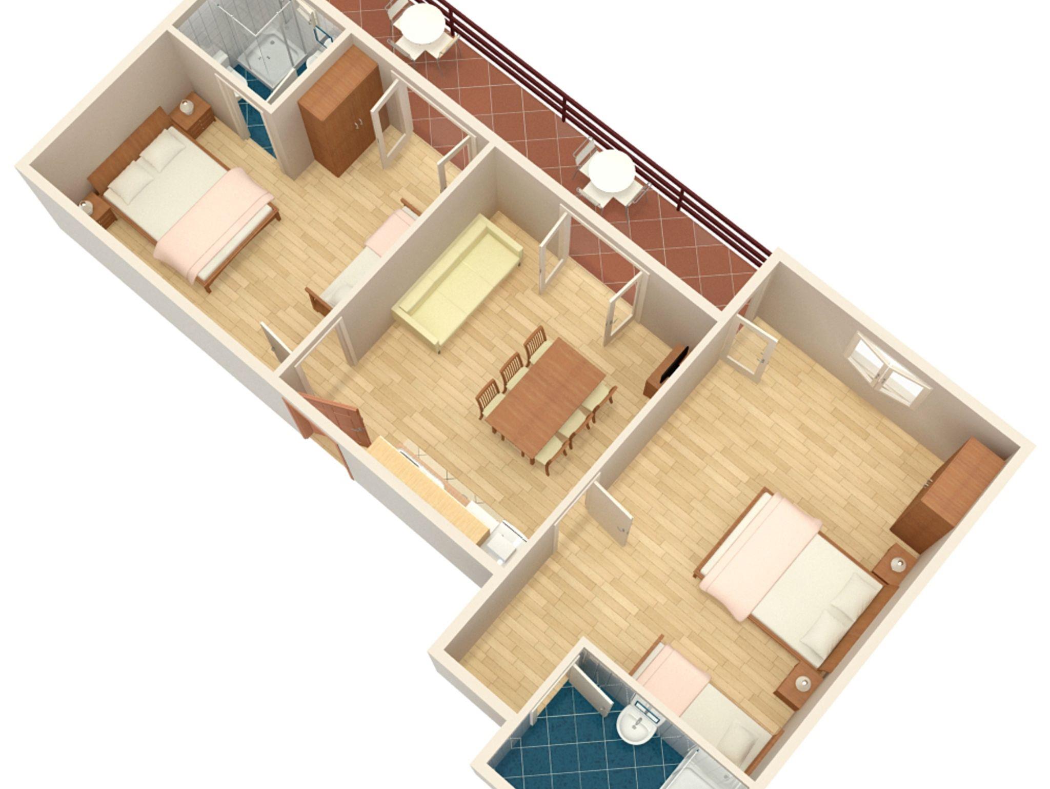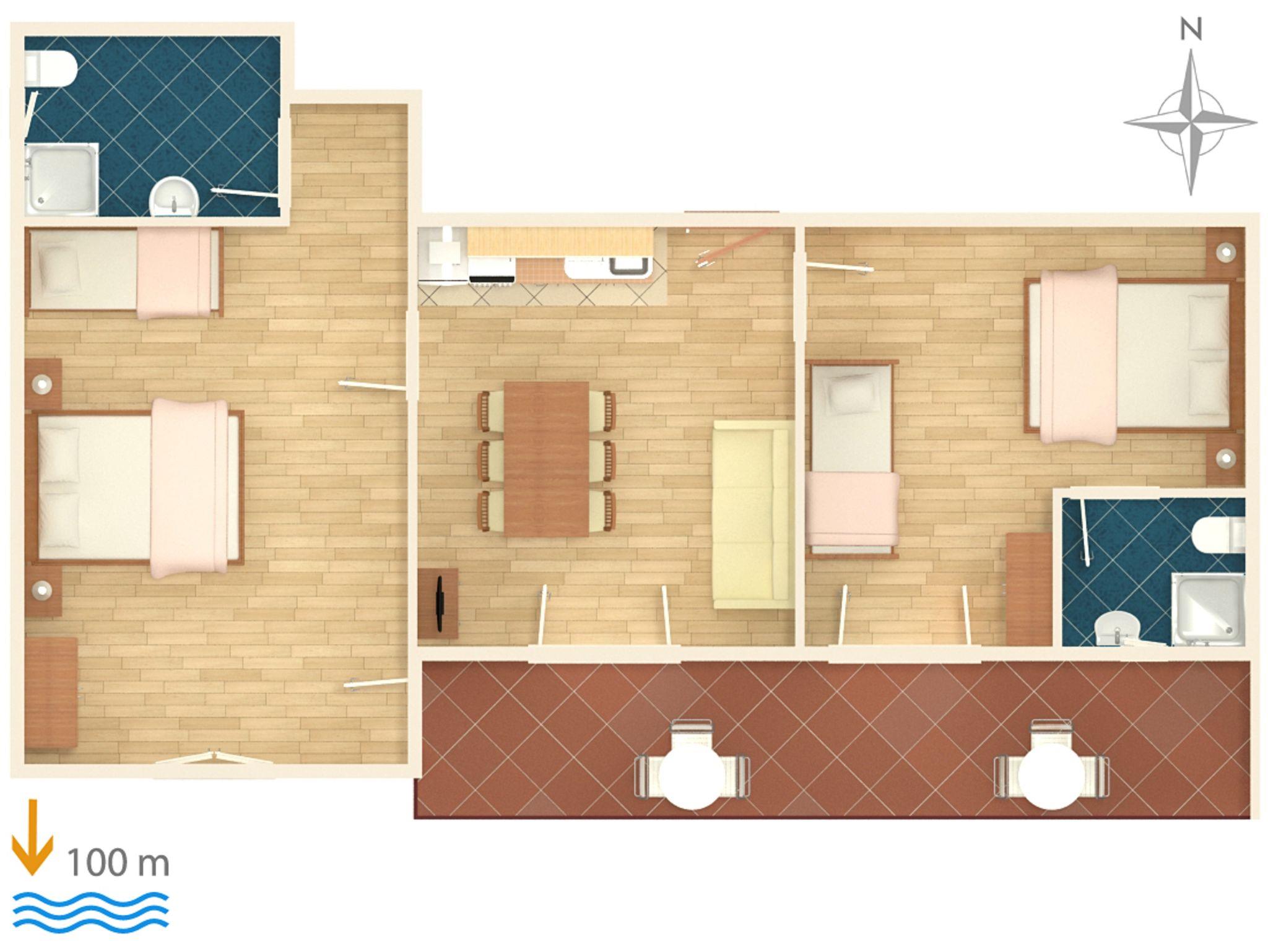 Ferienwohnung bietet Platz für 7 Gäste. Die Betten sind in Schlafzimmern, die es 2 gibt, innerhalb einer Gesamtfläche von 55m2, angeordnet. Die Gäste haben eine eigene Terrasse zur Verfügung, auf der sie in warmen Sommernächten genießen können. Das Apartment bietet Meerblick. Es ist erlaubt, Speisen auf dem Gemeinschafts-Grill vorzubereiten. IM PREIS INBEGRIFFEN: Kurtaxe, Endreinigung, Klimatisierung, Parkplatz, Internet. VERBINDLICHE ZUSÄTZLICHE KOSTEN: Aufzahlung für Kurzaufenthalte (prozentualer Zuschlag pro Nächtigungsanzahl: 30% - 1, 20% - 2, 10% - 3). Die Verfügbarkeit zusätzlicher Dienstleistungen in Ihrem reservierten Termin und die Preise derselben (falls nicht aufgeführt) müssen im Voraus überprüft werden. Zusätzliche Dienstleistungen die in der Zahlungsaufforderung nicht aufgeführt sind werden direkt beim Vermieter bezahlt, angenommen der Gast nutzt auch diese.