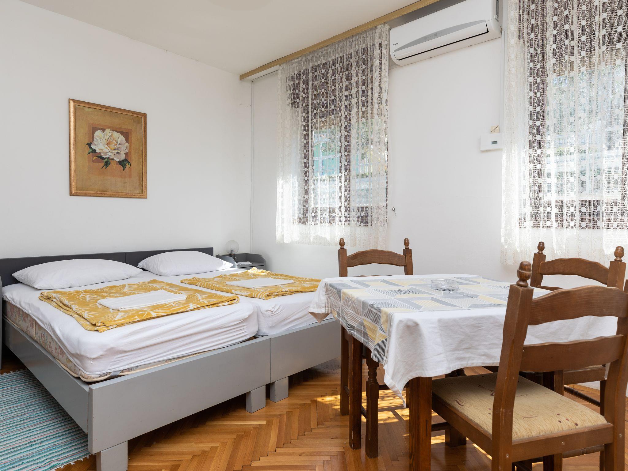 Ferienwohnung bietet Platz für 4 Gäste. Die Betten sind in Schlafzimmern, die es 1 gibt, und in Wohnzimmer, innerhalb einer Gesamtfläche von 30m2, angeordnet. Die Gäste haben einen eigenen Balkon zur Verfügung, auf der sie in warmen Sommernächten genießen können. Das Apartment bietet Meerblick. Es ist erlaubt, Speisen auf dem Gemeinschafts-Grill vorzubereiten. In der Unterkunftseinheit besteht die Möglichkeit des Mitbringens von Haustieren gegen Aufpreis. IM PREIS INBEGRIFFEN: Kurtaxe, Endreinigung, Parkplatz, Internet, Wäschewaschen, Kinderbett, Bügeleisen, Föhn, Sonnenschirm. VERBINDLICHE ZUSÄTZLICHE KOSTEN: Aufzahlung für Kurzaufenthalte (prozentualer Zuschlag pro Nächtigungsanzahl: 30% - 1, 20% - 2, 10% - 3). UNVERBINDLICHE ZUSÄTZLICHE KOSTEN: Klimatisierung (0,30 € pro Stunde), Haustiere (5,00 € pro Nacht). Die Verfügbarkeit zusätzlicher Dienstleistungen in Ihrem reservierten Termin und die Preise derselben (falls nicht aufgeführt) müssen im Voraus überprüft werden. Zusätzliche Dienstleistungen die in der Zahlungsaufforderung nicht aufgeführt sind werden direkt beim Vermieter bezahlt, angenommen der Gast nutzt auch diese.