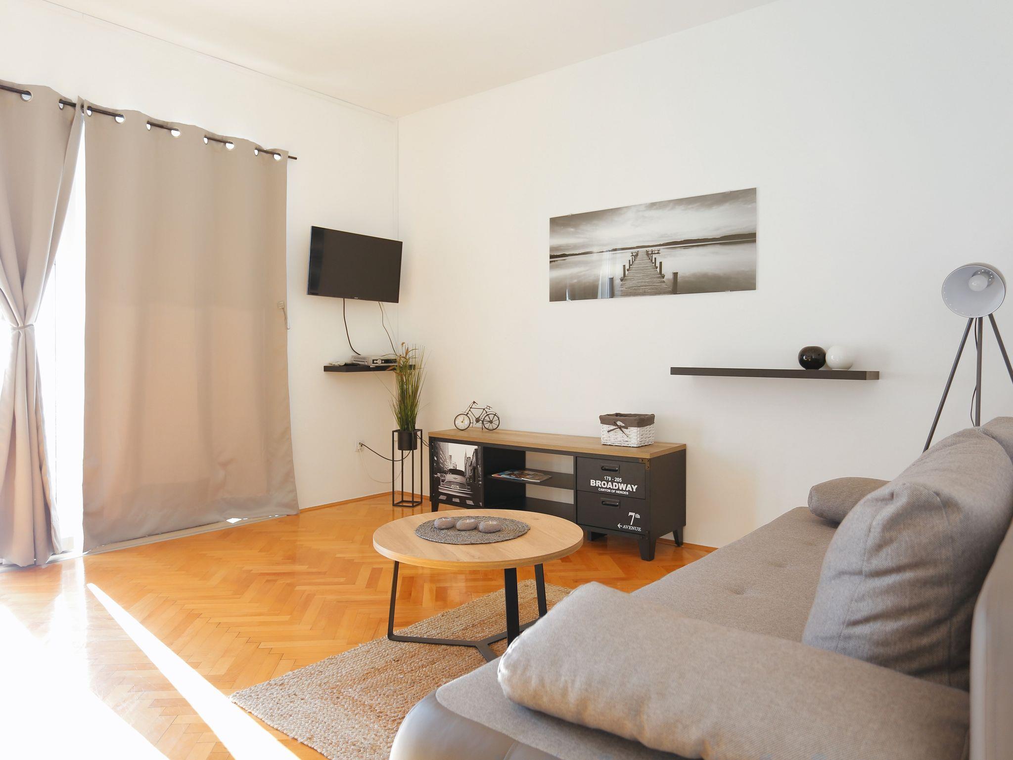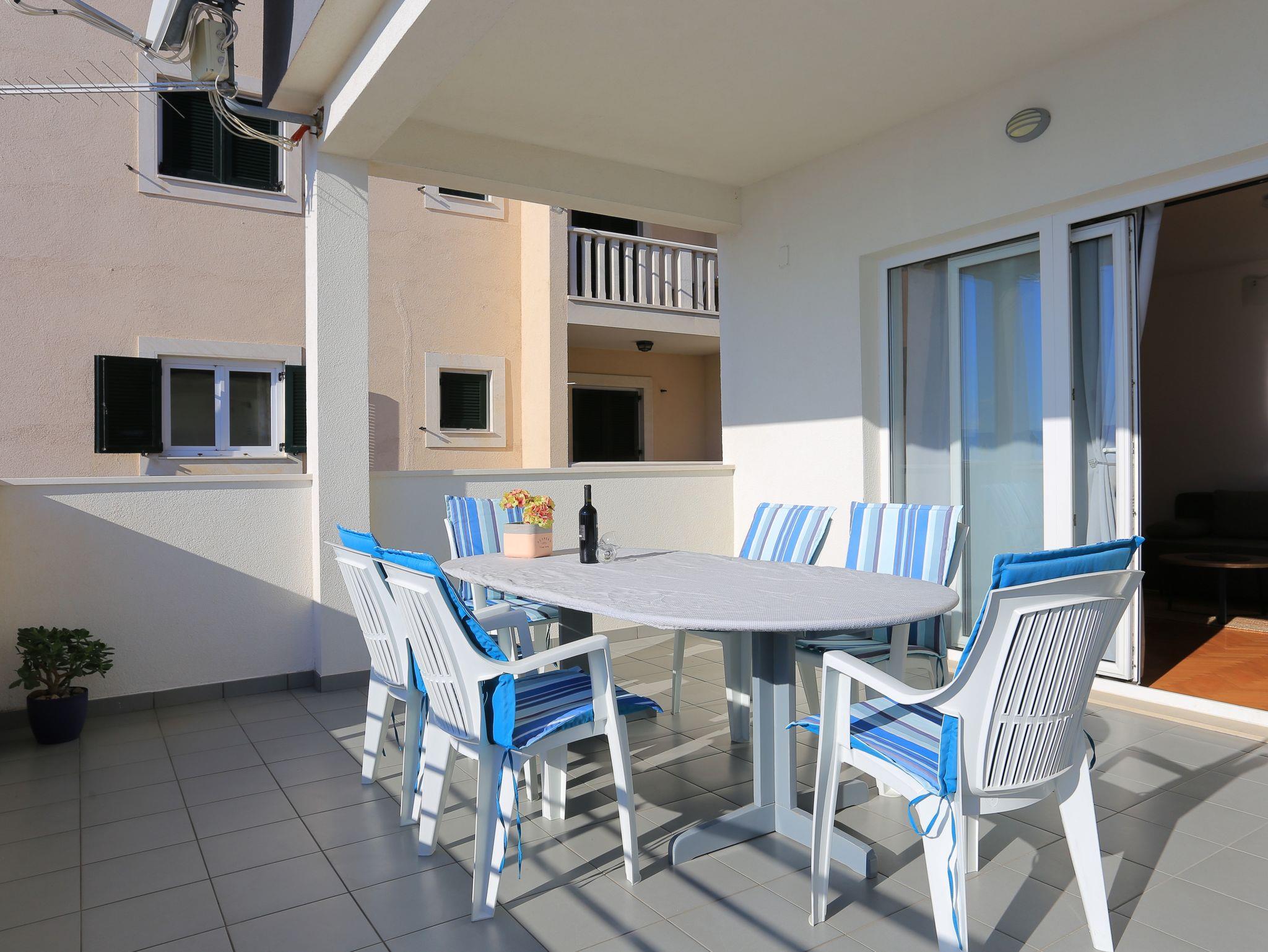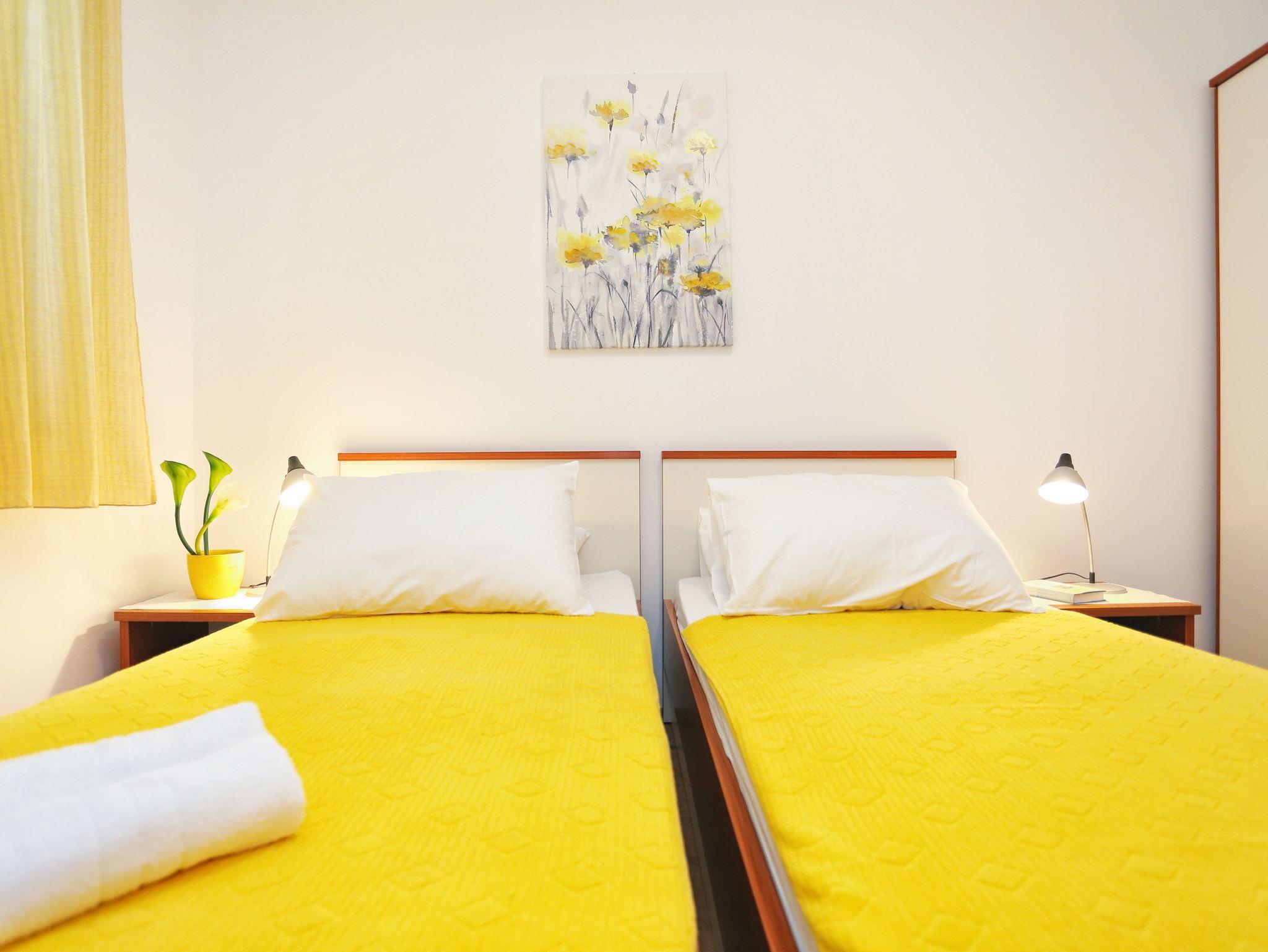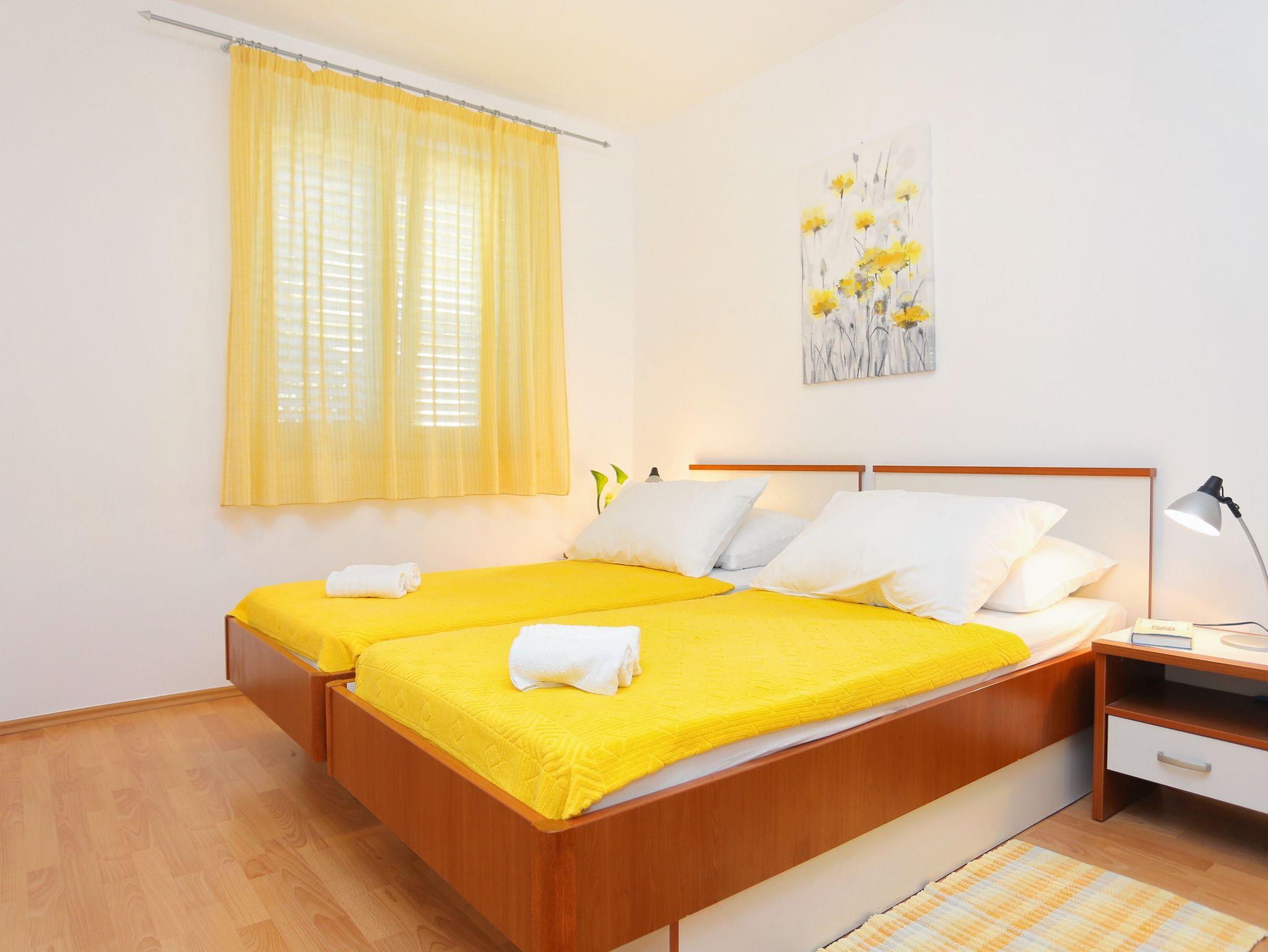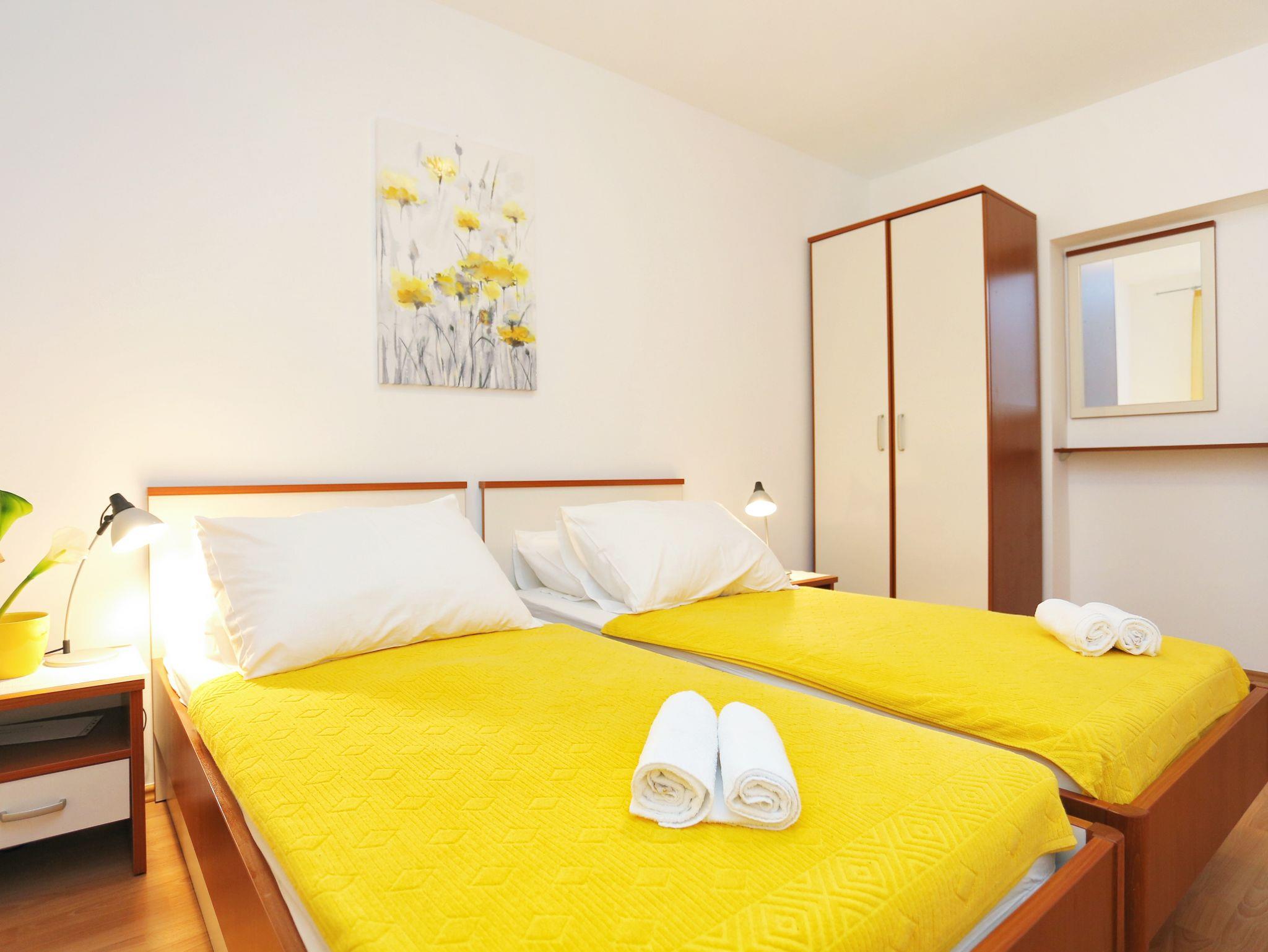 Ferienwohnung bietet Platz für 4 Gäste. Die Betten sind in Schlafzimmern, die es 2 gibt, innerhalb einer Gesamtfläche von 54m2, angeordnet. Die Gäste haben eine eigene Terrasse zur Verfügung, auf der sie in warmen Sommernächten genießen können. Das Apartment bietet Meerblick. Es ist erlaubt, Speisen auf dem Gemeinschafts-Grill vorzubereiten. IM PREIS INBEGRIFFEN: Kurtaxe, Endreinigung, Klimatisierung, Parkplatz, Internet, Bootsanlegeplatz, Bügeleisen, Bügelbrett, Föhn, 2 Kinderbettchen (im Preis enthalten). VERBINDLICHE ZUSÄTZLICHE KOSTEN: Aufzahlung für Kurzaufenthalte (prozentualer Zuschlag pro Nächtigungsanzahl: 30% - 1, 20% - 2, 10% - 3). UNVERBINDLICHE ZUSÄTZLICHE KOSTEN: Wäschewaschen (5,00 € Waschen). Die Verfügbarkeit zusätzlicher Dienstleistungen in Ihrem reservierten Termin und die Preise derselben (falls nicht aufgeführt) müssen im Voraus überprüft werden. Zusätzliche Dienstleistungen die in der Zahlungsaufforderung nicht aufgeführt sind werden direkt beim Vermieter bezahlt, angenommen der Gast nutzt auch diese.
