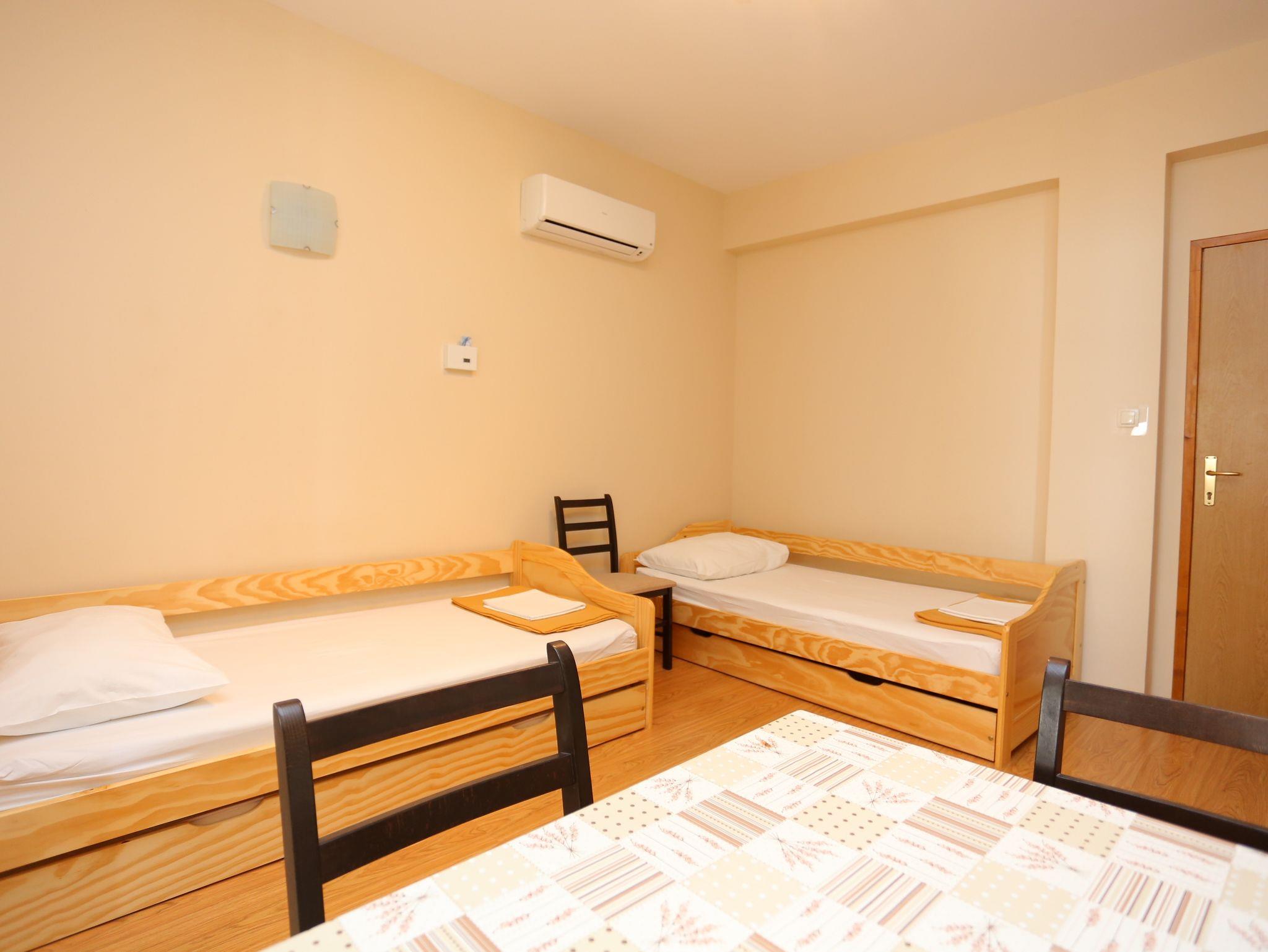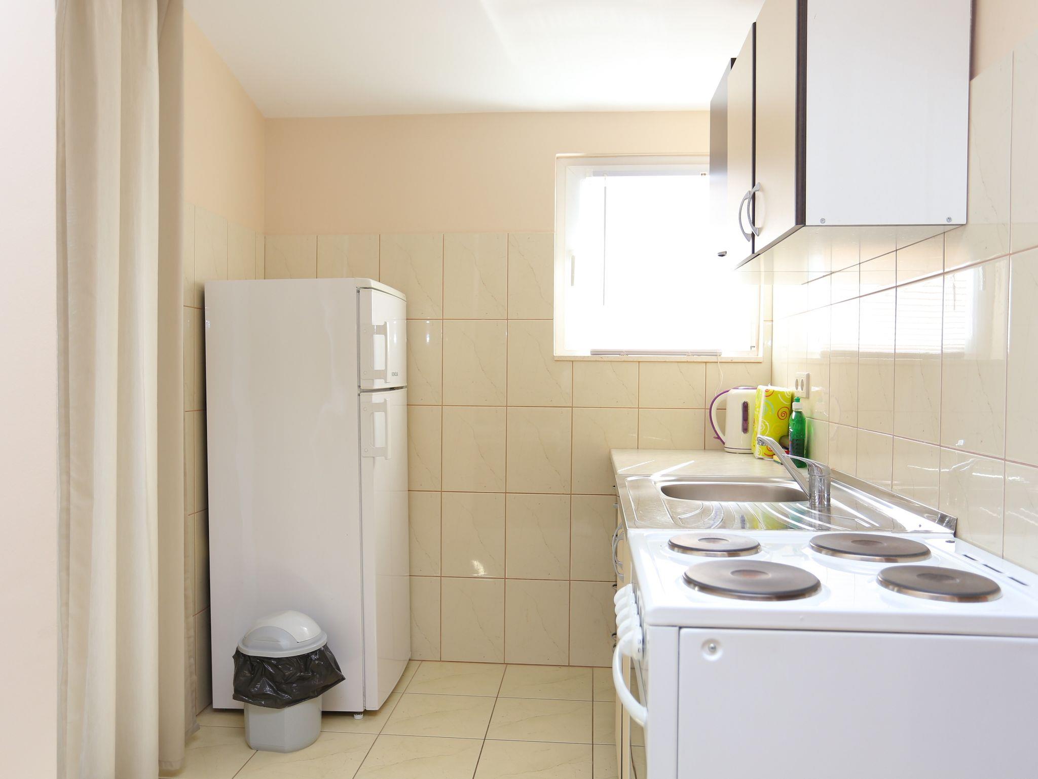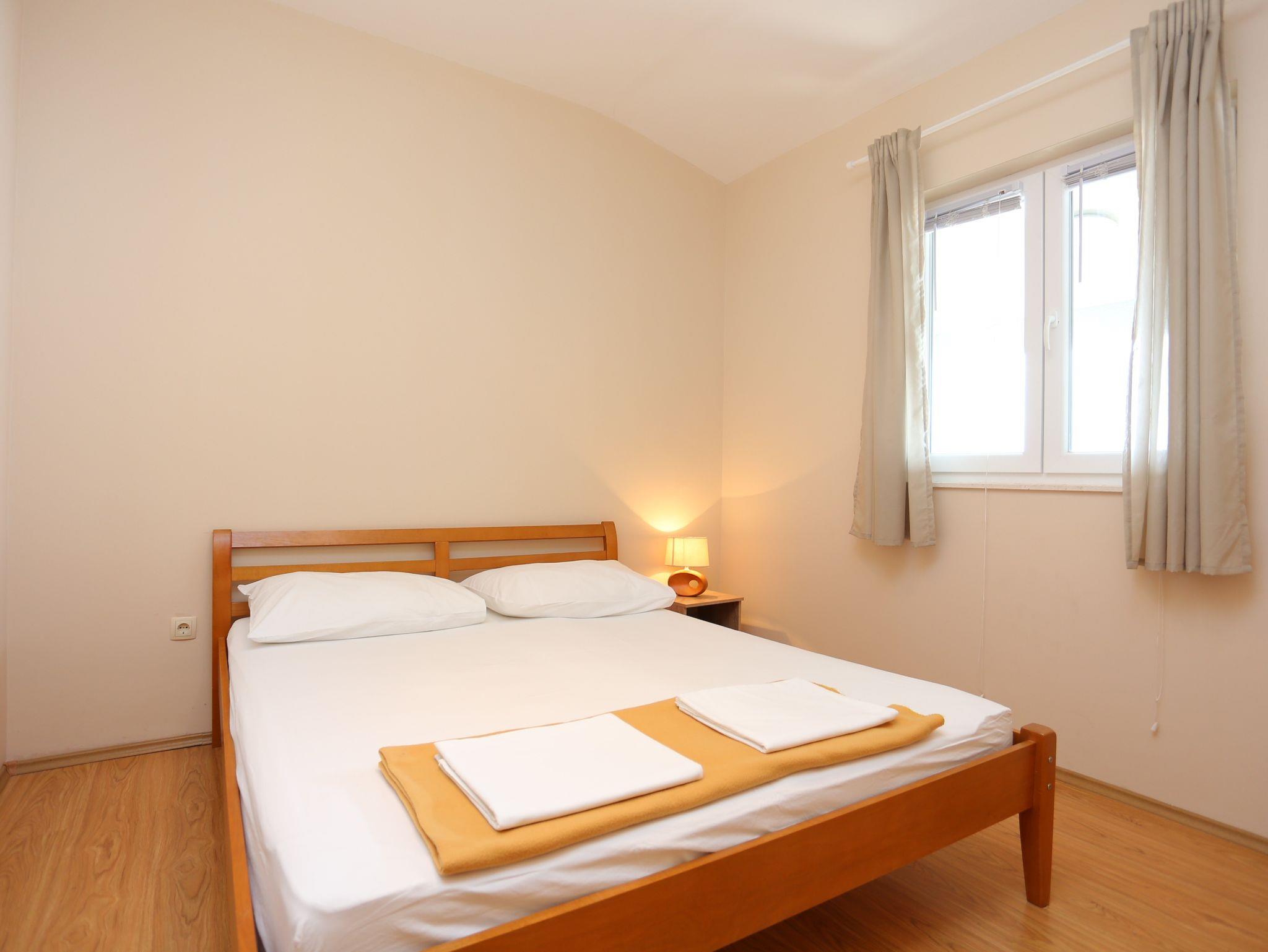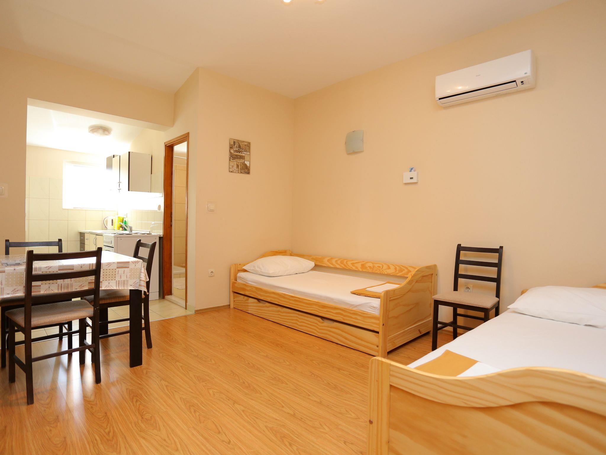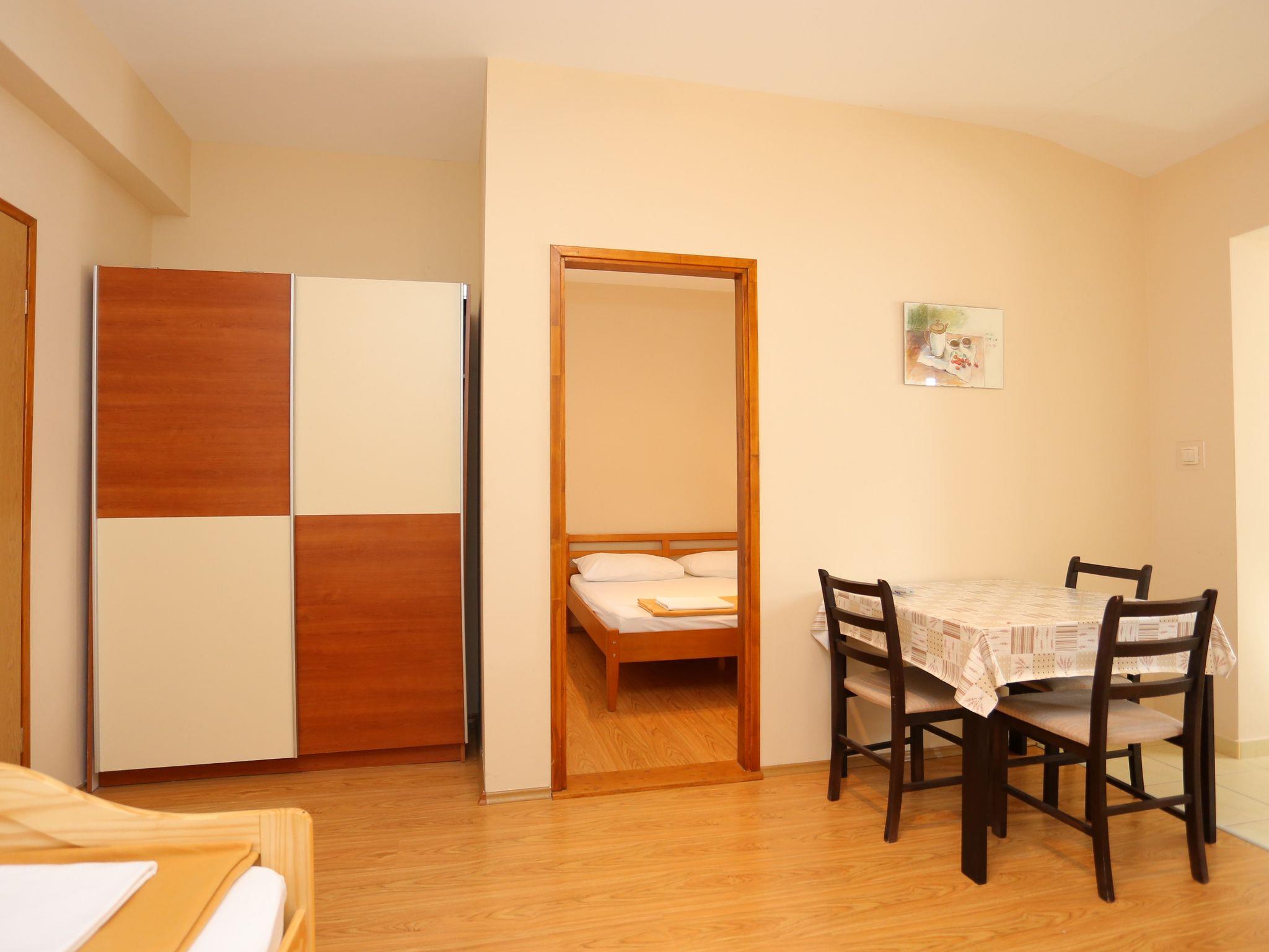 Ferienwohnung bietet Platz für 4 Gäste. Die Betten sind in Schlafzimmern, die es 1 gibt, und in Esszimmer, innerhalb einer Gesamtfläche von 31m2, angeordnet. Die Gäste haben eine eigene Terrasse zur Verfügung, auf der sie in warmen Sommernächten genießen können. Das Apartment bietet Meerblick. Es ist erlaubt, Speisen auf dem Gemeinschafts-Grill vorzubereiten. IM PREIS INBEGRIFFEN: Kurtaxe, Endreinigung, Klimatisierung, Parkplatz, Internet, Zusatzbett, Bügeleisen, Bügelbrett, Föhn. VERBINDLICHE ZUSÄTZLICHE KOSTEN: Aufzahlung für Kurzaufenthalte (prozentualer Zuschlag pro Nächtigungsanzahl: 30% - 1, 20% - 2, 10% - 3). Die Verfügbarkeit zusätzlicher Dienstleistungen in Ihrem reservierten Termin und die Preise derselben (falls nicht aufgeführt) müssen im Voraus überprüft werden. Zusätzliche Dienstleistungen die in der Zahlungsaufforderung nicht aufgeführt sind werden direkt beim Vermieter bezahlt, angenommen der Gast nutzt auch diese. Ermäßigung auf den Grundpreis: Gratistag 14=13 (bei einem Aufenthalt von 14 Tagen oder mehr erhalten Sie einen Gratistag für den Aufenthalt bis 31.12.26).