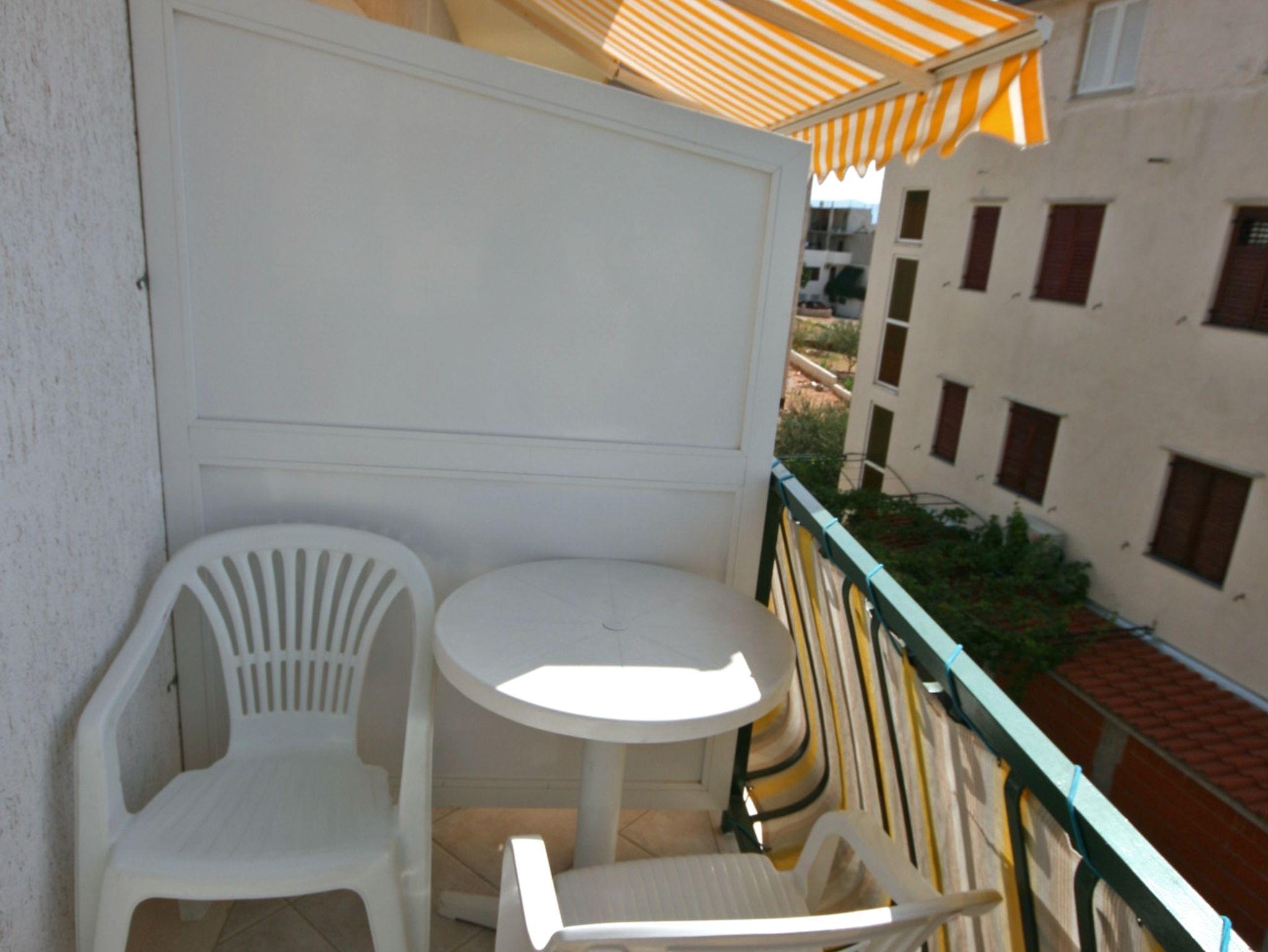 Studio bietet Platz für 3 Gäste. Die Betten sind in Schlafzimmern, die es 1 gibt, innerhalb einer Gesamtfläche von 20m2, angeordnet. Die Gäste haben einen eigenen Balkon zur Verfügung, auf der sie in warmen Sommernächten genießen können. Das Studio-Apartment bietet Meerblick. Es ist erlaubt, Speisen auf dem Gemeinschafts-Grill vorzubereiten. IM PREIS INBEGRIFFEN: Kurtaxe, Endreinigung, Parkplatz, Internet, Bügeleisen, Bügelbrett, Föhn. VERBINDLICHE ZUSÄTZLICHE KOSTEN: Aufzahlung für Kurzaufenthalte (prozentualer Zuschlag pro Nächtigungsanzahl: 30% - 1, 20% - 2, 10% - 3). UNVERBINDLICHE ZUSÄTZLICHE KOSTEN: Klimatisierung (1,00 € kwh), Wäschewaschen (5,00 € Waschen). Die Verfügbarkeit zusätzlicher Dienstleistungen in Ihrem reservierten Termin und die Preise derselben (falls nicht aufgeführt) müssen im Voraus überprüft werden. Zusätzliche Dienstleistungen die in der Zahlungsaufforderung nicht aufgeführt sind werden direkt beim Vermieter bezahlt, angenommen der Gast nutzt auch diese. Ermäßigung auf den Grundpreis: Gratistag 14=13 (bei einem Aufenthalt von 14 Tagen oder mehr erhalten Sie einen Gratistag für den Aufenthalt bis 31.12.26).