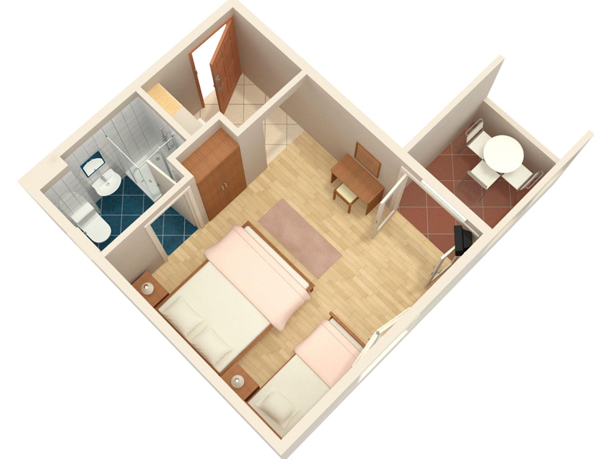 Studio bietet Platz für 3 Gäste. Die Betten sind in Schlafzimmern, die es 1 gibt, innerhalb einer Gesamtfläche von 21m2, angeordnet. Die Gäste haben eine eigene Terrasse zur Verfügung, auf der sie in warmen Sommernächten genießen können. Das Studio-Apartment bietet Meerblick. Es ist erlaubt, Speisen auf dem Gemeinschafts-Grill vorzubereiten. IM PREIS INBEGRIFFEN: Kurtaxe, Endreinigung, Klimatisierung, Parkplatz, Internet, Wäschewaschen, Bügeleisen, Bügelbrett, Föhn. VERBINDLICHE ZUSÄTZLICHE KOSTEN: Aufzahlung für Kurzaufenthalte (prozentualer Zuschlag pro Nächtigungsanzahl: 30% - 1, 20% - 2, 10% - 3). UNVERBINDLICHE ZUSÄTZLICHE KOSTEN: Zusatzbett (5,00 € pro Nacht). Die Verfügbarkeit zusätzlicher Dienstleistungen in Ihrem reservierten Termin und die Preise derselben (falls nicht aufgeführt) müssen im Voraus überprüft werden. Zusätzliche Dienstleistungen die in der Zahlungsaufforderung nicht aufgeführt sind werden direkt beim Vermieter bezahlt, angenommen der Gast nutzt auch diese.