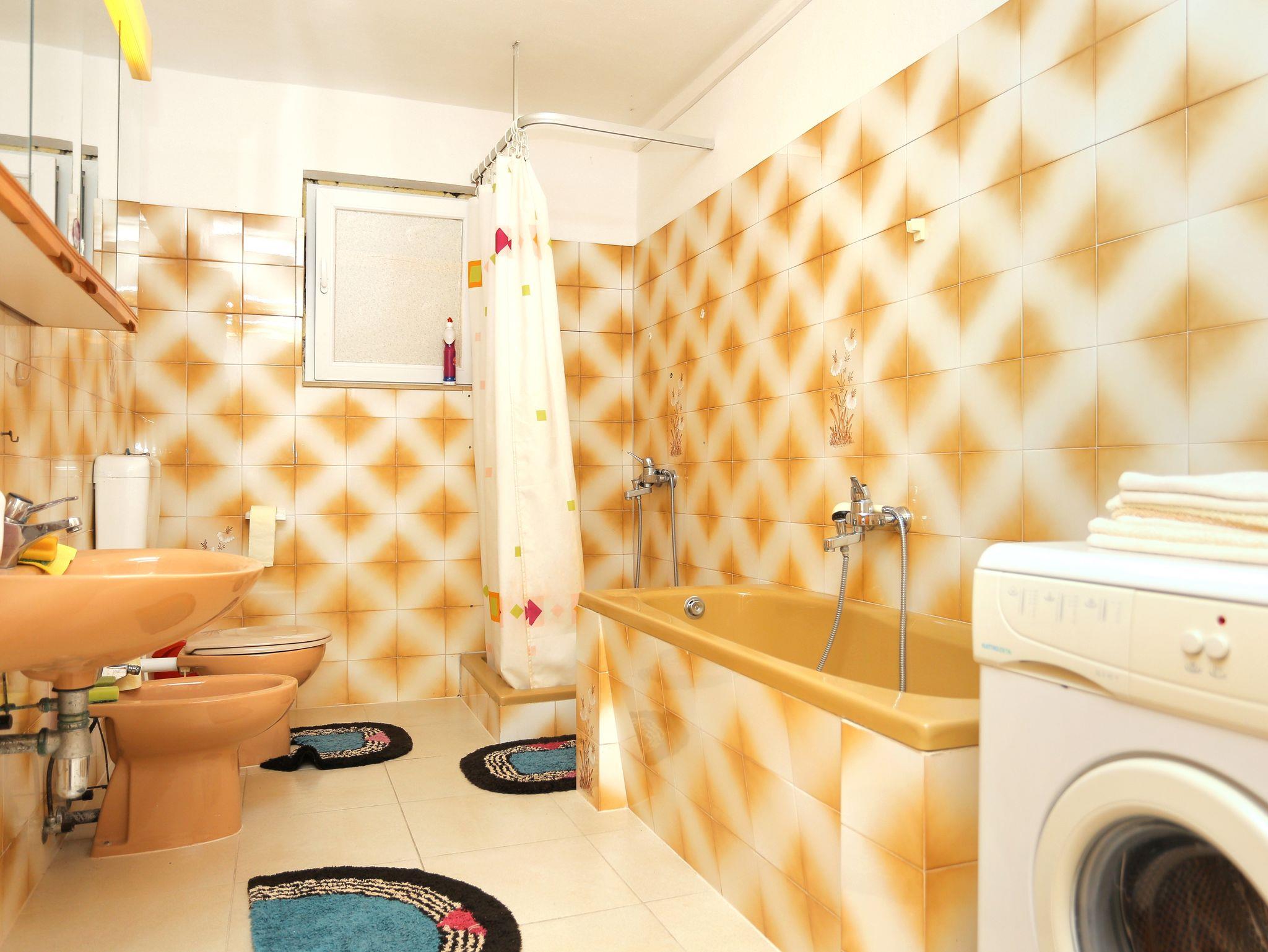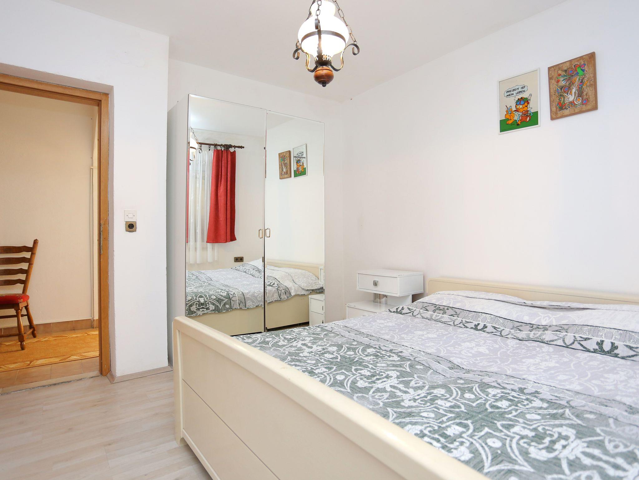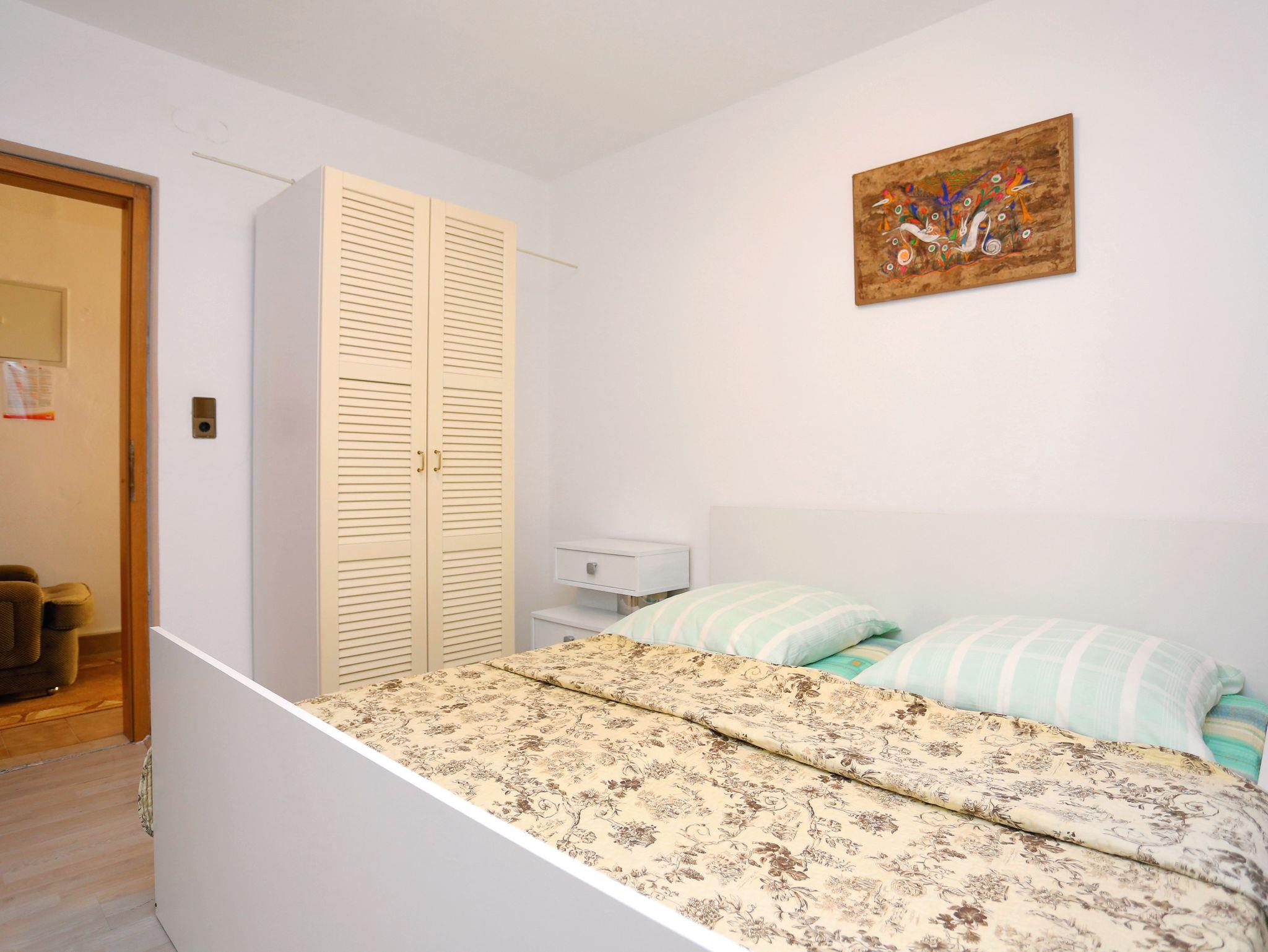 Ferienwohnung bietet Platz für 8 Gäste. Die Betten sind in Schlafzimmern, die es 2 gibt, und in Wohnzimmer, innerhalb einer Gesamtfläche von 69m2, angeordnet. Die Gäste haben eine eigene Terrasse zur Verfügung, auf der sie in warmen Sommernächten genießen können. Es ist erlaubt, Speisen auf dem Gemeinschafts-Grill vorzubereiten. IM PREIS INBEGRIFFEN: Kurtaxe, Endreinigung, Parkplatz, Internet, Kinderbett, Bügeleisen, Bügelbrett, Föhn, tragbarer Grill. VERBINDLICHE ZUSÄTZLICHE KOSTEN: Aufzahlung für Kurzaufenthalte (prozentualer Zuschlag pro Nächtigungsanzahl: 30% - 1, 20% - 2, 10% - 3). UNVERBINDLICHE ZUSÄTZLICHE KOSTEN: Klimatisierung (5,00 € pro Nacht), Wäschewaschen (5,00 € Waschen). Die Verfügbarkeit zusätzlicher Dienstleistungen in Ihrem reservierten Termin und die Preise derselben (falls nicht aufgeführt) müssen im Voraus überprüft werden. Zusätzliche Dienstleistungen die in der Zahlungsaufforderung nicht aufgeführt sind werden direkt beim Vermieter bezahlt, angenommen der Gast nutzt auch diese. Ermäßigung auf den Grundpreis: Gratistag 14=13 (bei einem Aufenthalt von 14 Tagen oder mehr erhalten Sie einen Gratistag für den Aufenthalt bis 31.12.26).