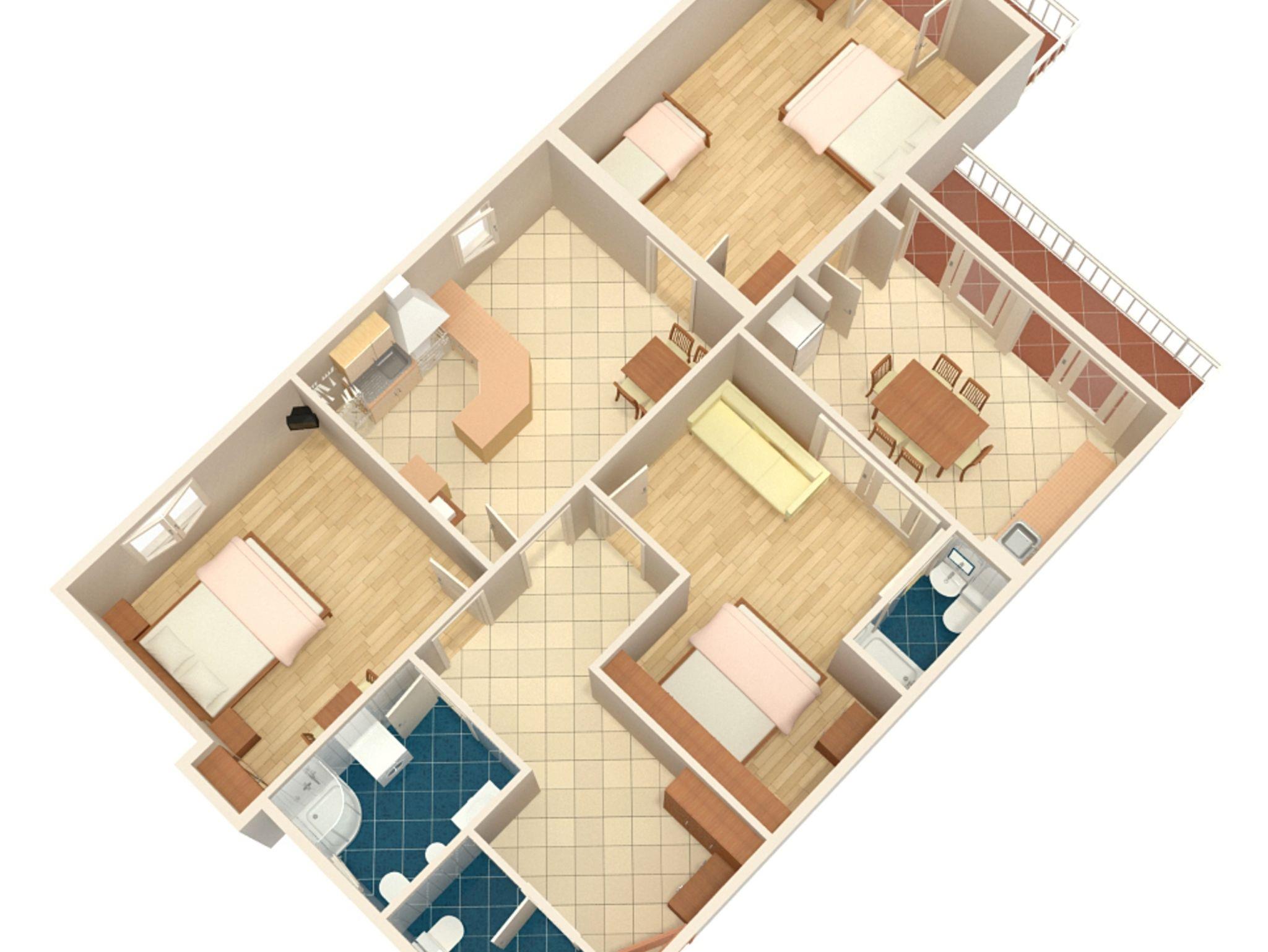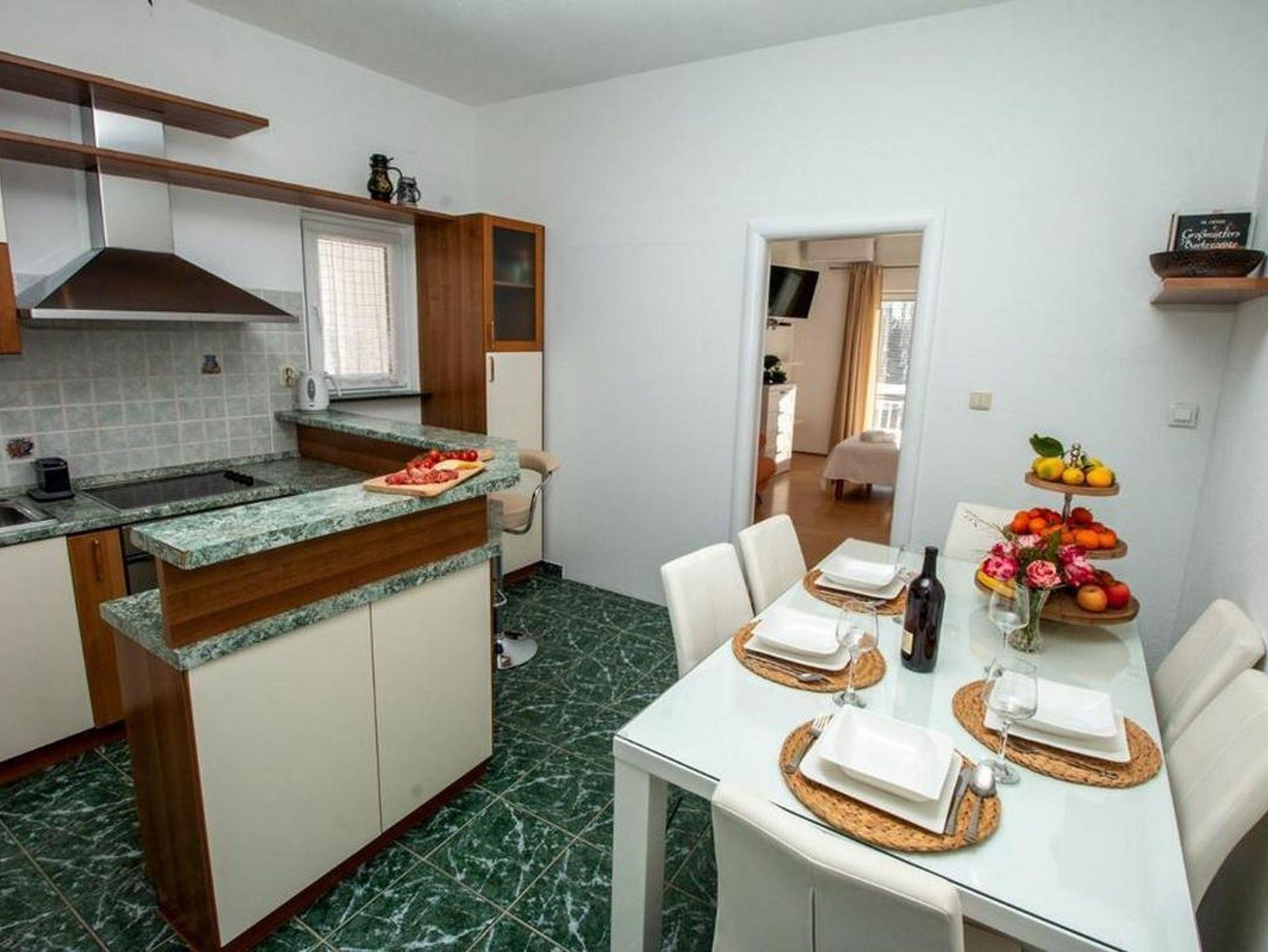 Ferienwohnung bietet Platz für 7 Gäste. Die Betten sind in Schlafzimmern, die es 3 gibt, innerhalb einer Gesamtfläche von 99m2, angeordnet. Die Gäste haben einen eigenen Balkon zur Verfügung, auf der sie in warmen Sommernächten genießen können. Das Apartment bietet Meerblick. Für vollen Genuss und Entspannung gibt es einen privaten Grill für Gäste dieser Unterkunft. In der Unterkunftseinheit besteht die Möglichkeit des Mitbringens von Haustieren gegen Aufpreis. IM PREIS INBEGRIFFEN: Kurtaxe, Endreinigung, Klimatisierung, Parkplatz, Internet, Bügeleisen, Bügelbrett. VERBINDLICHE ZUSÄTZLICHE KOSTEN: Aufzahlung für Kurzaufenthalte (prozentualer Zuschlag pro Nächtigungsanzahl: 30% - 1, 20% - 2, 10% - 3). UNVERBINDLICHE ZUSÄTZLICHE KOSTEN: Haustiere (5,00 € pro Nacht). Die Verfügbarkeit zusätzlicher Dienstleistungen in Ihrem reservierten Termin und die Preise derselben (falls nicht aufgeführt) müssen im Voraus überprüft werden. Zusätzliche Dienstleistungen die in der Zahlungsaufforderung nicht aufgeführt sind werden direkt beim Vermieter bezahlt, angenommen der Gast nutzt auch diese.
