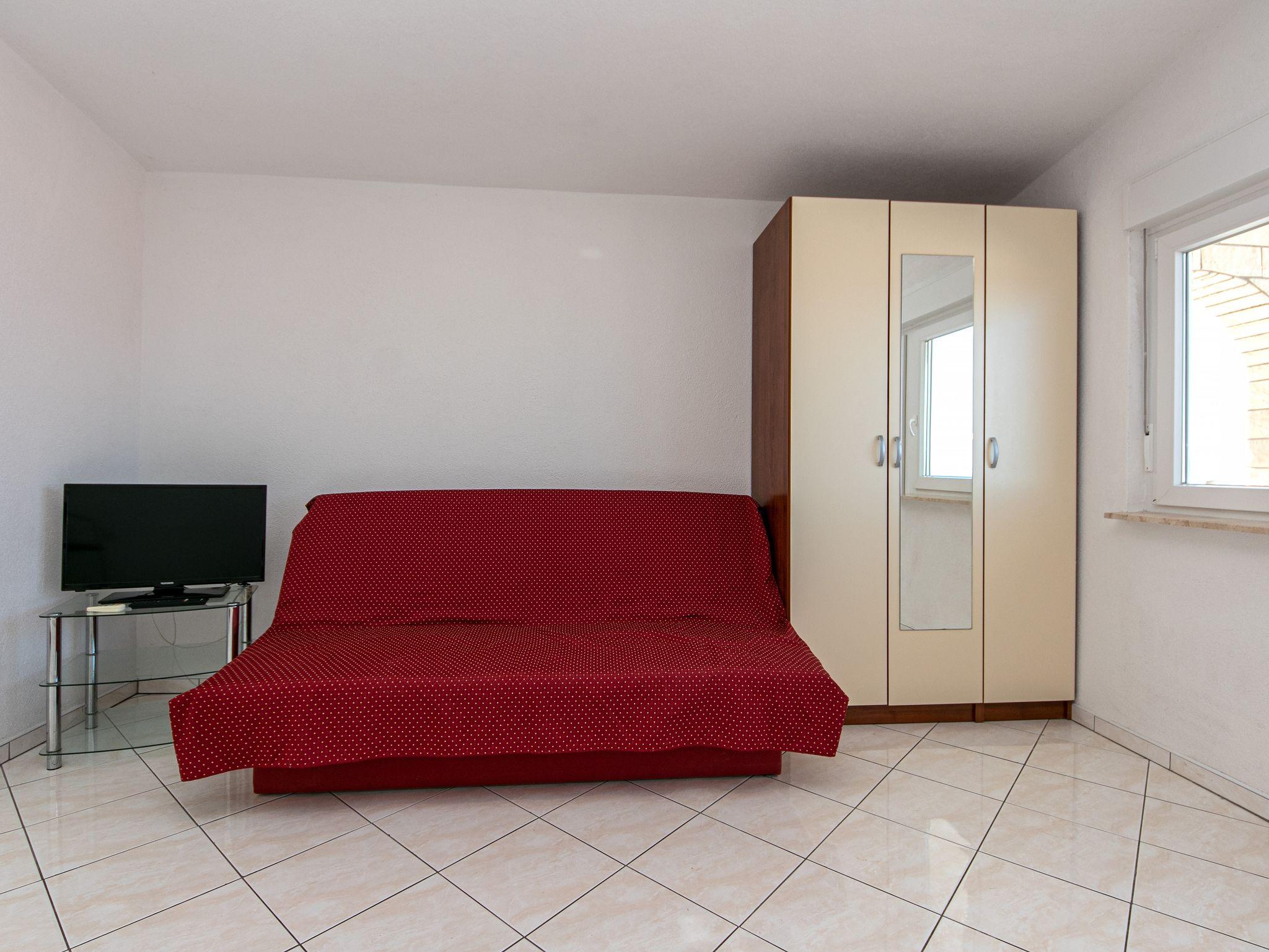 Studio bietet Platz für 2 Gäste. Die Betten sind in Schlafzimmern, die es 1 gibt, innerhalb einer Gesamtfläche von 28m2, angeordnet. Die Gäste haben eine eigene Terrasse zur Verfügung, auf der sie in warmen Sommernächten genießen können. Das Studio-Apartment bietet Meerblick. Es ist erlaubt, Speisen auf dem Gemeinschafts-Grill vorzubereiten. IM PREIS INBEGRIFFEN: Kurtaxe, Endreinigung, Klimatisierung, Garage, Internet, Kinderbett, Zusatzbett, Föhn, 2 Kinderbettchen (im Preis enthalten). VERBINDLICHE ZUSÄTZLICHE KOSTEN: Aufzahlung für Kurzaufenthalte (prozentualer Zuschlag pro Nächtigungsanzahl: 30% - 1, 20% - 2, 10% - 3). UNVERBINDLICHE ZUSÄTZLICHE KOSTEN: Wäschewaschen (5,00 € Waschen). Die Verfügbarkeit zusätzlicher Dienstleistungen in Ihrem reservierten Termin und die Preise derselben (falls nicht aufgeführt) müssen im Voraus überprüft werden. Zusätzliche Dienstleistungen die in der Zahlungsaufforderung nicht aufgeführt sind werden direkt beim Vermieter bezahlt, angenommen der Gast nutzt auch diese.