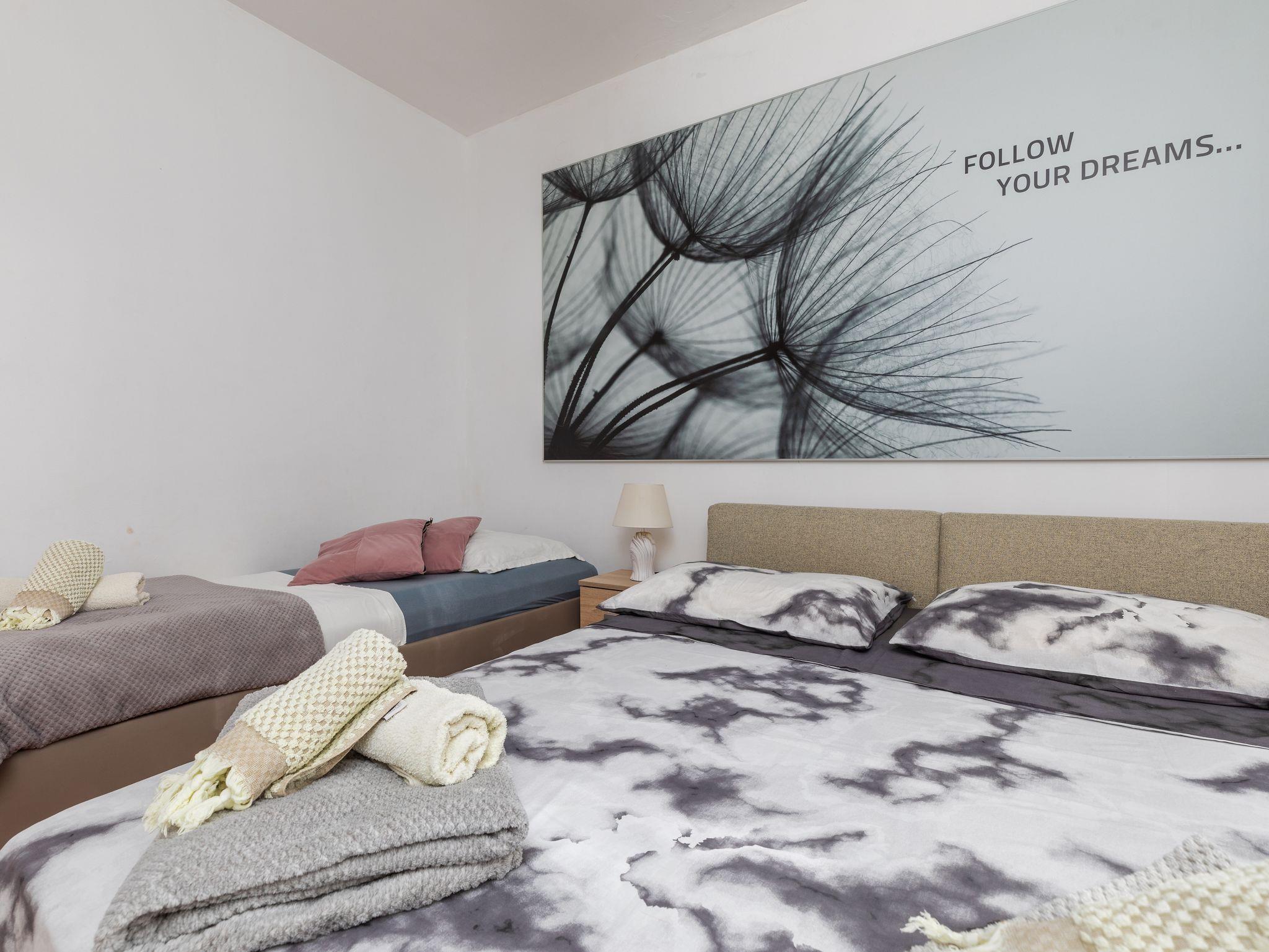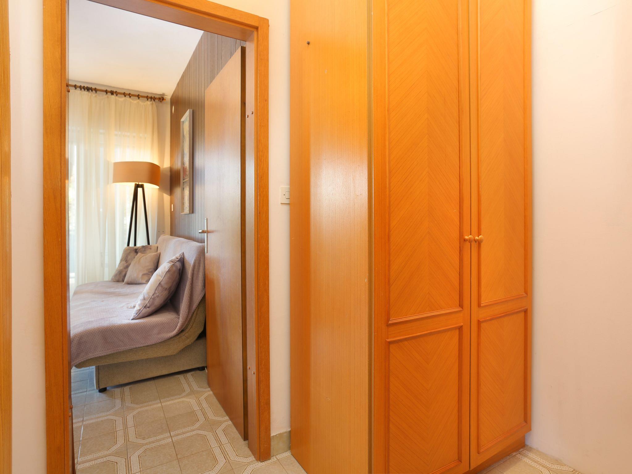 Ferienwohnung bietet Platz für 4 Gäste. Die Betten sind in Schlafzimmern, die es 1 gibt, und in Wohnzimmer, innerhalb einer Gesamtfläche von 36m2, angeordnet. Die Gäste haben eine eigene Terrasse zur Verfügung, auf der sie in warmen Sommernächten genießen können. Das Apartment bietet Meerblick. In der Unterkunftseinheit besteht die Möglichkeit des Mitbringens von Haustieren gegen Aufpreis. IM PREIS INBEGRIFFEN: Kurtaxe, Endreinigung, Klimatisierung, Parkplatz, Internet, Föhn. VERBINDLICHE ZUSÄTZLICHE KOSTEN: Aufzahlung für Kurzaufenthalte (prozentualer Zuschlag pro Nächtigungsanzahl: 30% - 1, 20% - 2, 10% - 3). UNVERBINDLICHE ZUSÄTZLICHE KOSTEN: Haustiere (15,00 € pro Nacht). Die Verfügbarkeit zusätzlicher Dienstleistungen in Ihrem reservierten Termin und die Preise derselben (falls nicht aufgeführt) müssen im Voraus überprüft werden. Zusätzliche Dienstleistungen die in der Zahlungsaufforderung nicht aufgeführt sind werden direkt beim Vermieter bezahlt, angenommen der Gast nutzt auch diese.