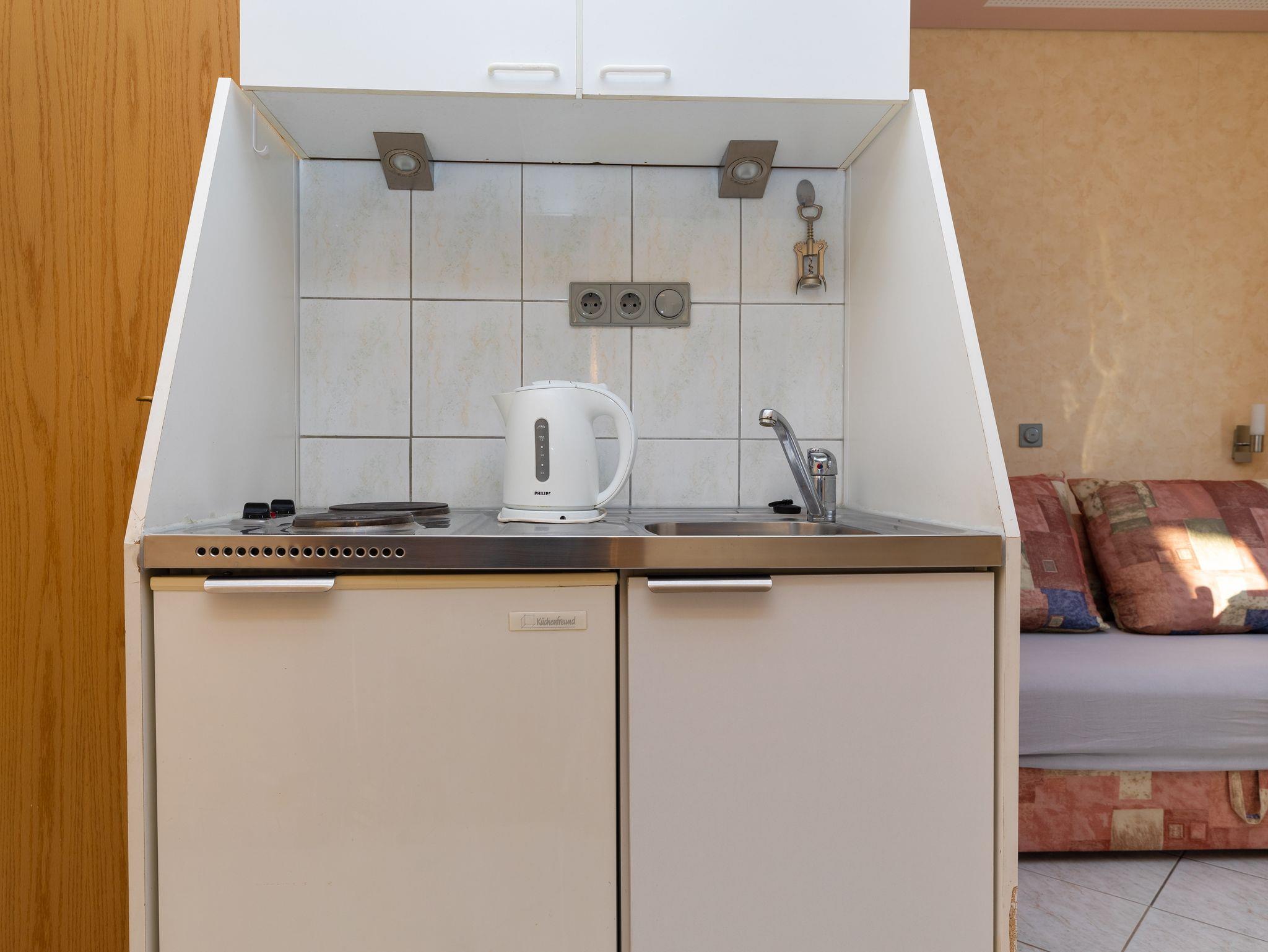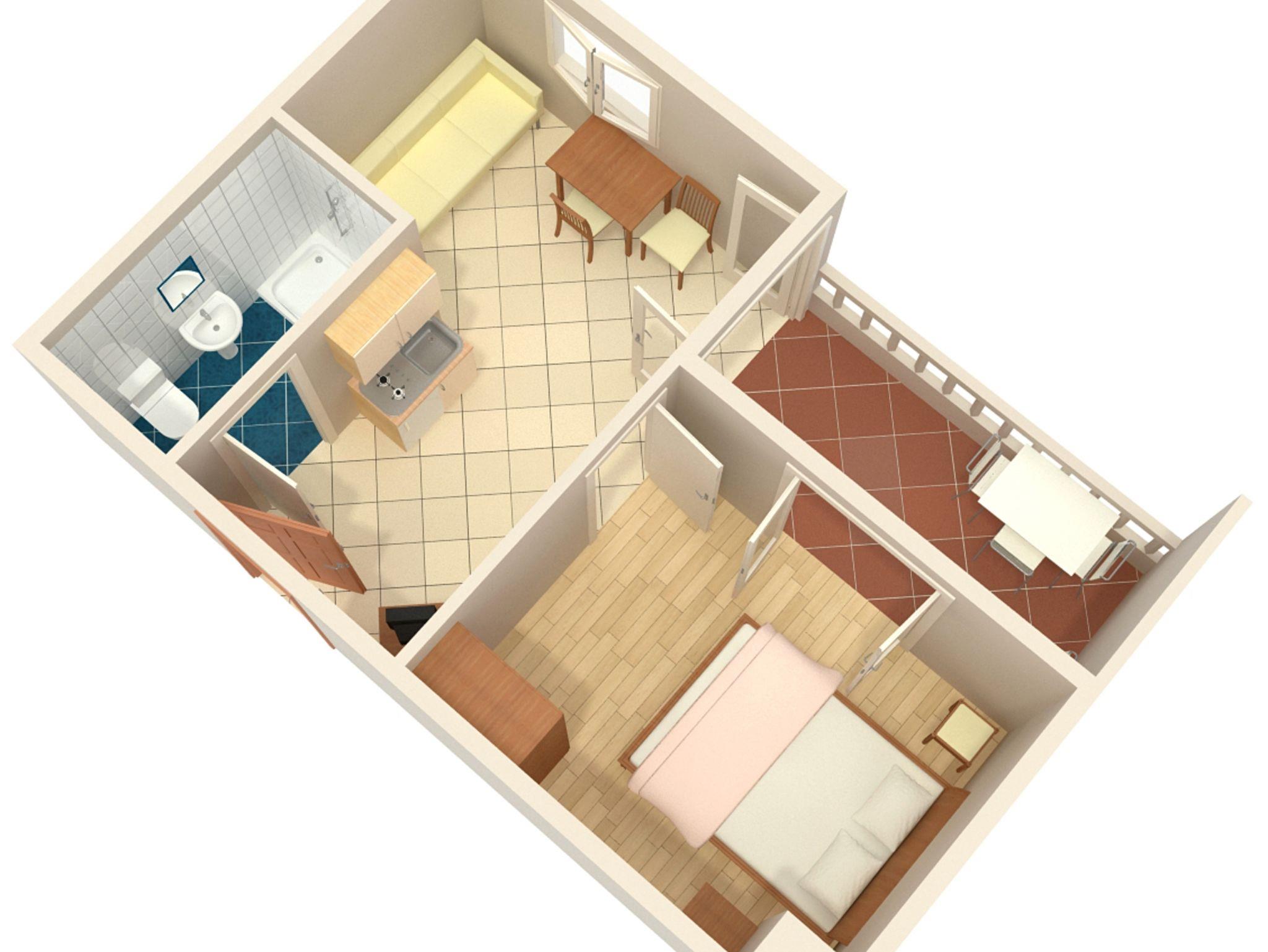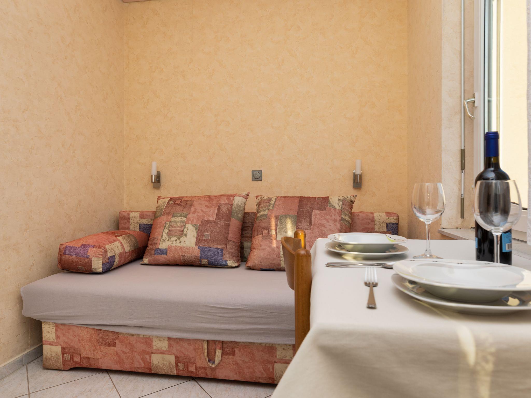 Ferienwohnung bietet Platz für 3 Gäste. Die Betten sind in Schlafzimmern, die es 1 gibt, und in Wohnzimmer, innerhalb einer Gesamtfläche von 20m2, angeordnet. Die Gäste haben einen eigenen Balkon zur Verfügung, auf der sie in warmen Sommernächten genießen können. Es ist erlaubt, Speisen auf dem Gemeinschafts-Grill vorzubereiten. IM PREIS INBEGRIFFEN: Kurtaxe, Endreinigung, Klimatisierung, Parkplatz, Internet, Bügeleisen, Bügelbrett. VERBINDLICHE ZUSÄTZLICHE KOSTEN: Aufzahlung für Kurzaufenthalte (prozentualer Zuschlag pro Nächtigungsanzahl: 30% - 1, 20% - 2, 10% - 3). UNVERBINDLICHE ZUSÄTZLICHE KOSTEN: Zentralheizung (5,00 € pro Nacht), Wäschewaschen (7,00 € Waschen). Die Verfügbarkeit zusätzlicher Dienstleistungen in Ihrem reservierten Termin und die Preise derselben (falls nicht aufgeführt) müssen im Voraus überprüft werden. Zusätzliche Dienstleistungen die in der Zahlungsaufforderung nicht aufgeführt sind werden direkt beim Vermieter bezahlt, angenommen der Gast nutzt auch diese. Ermäßigung auf den Grundpreis: Gratistag 14=13 (bei einem Aufenthalt von 14 Tagen oder mehr erhalten Sie einen Gratistag für den Aufenthalt bis 31.12.26).
