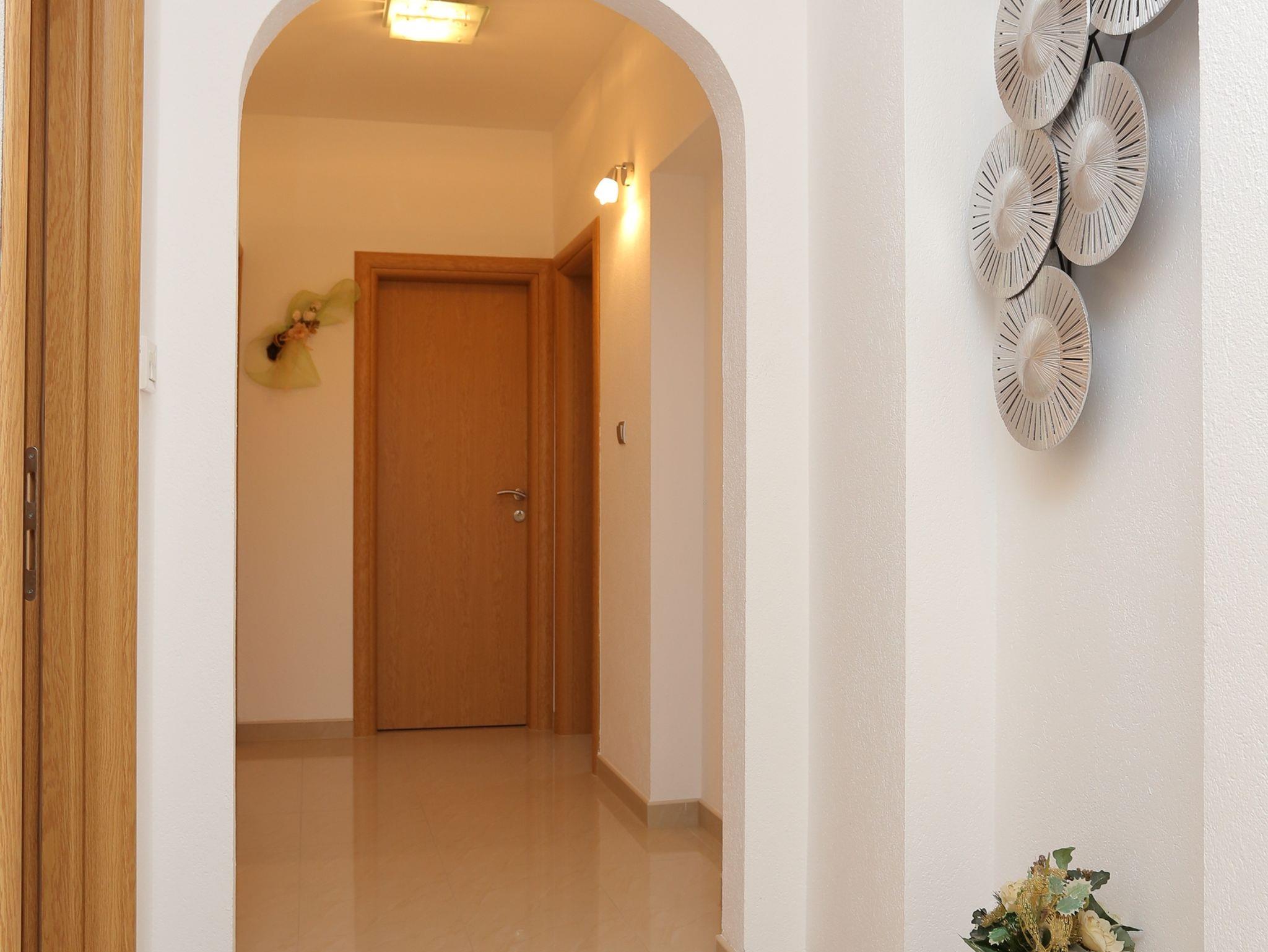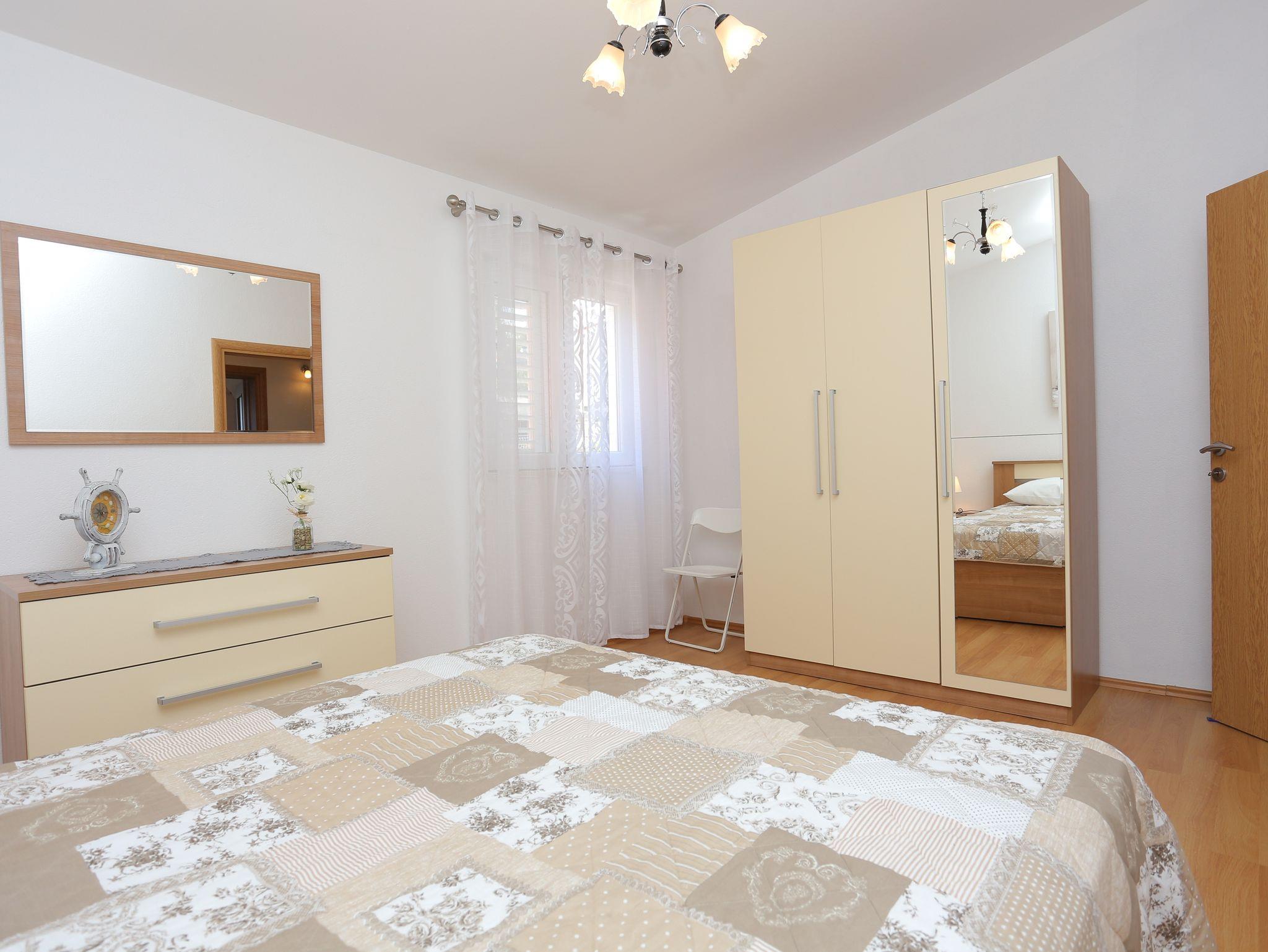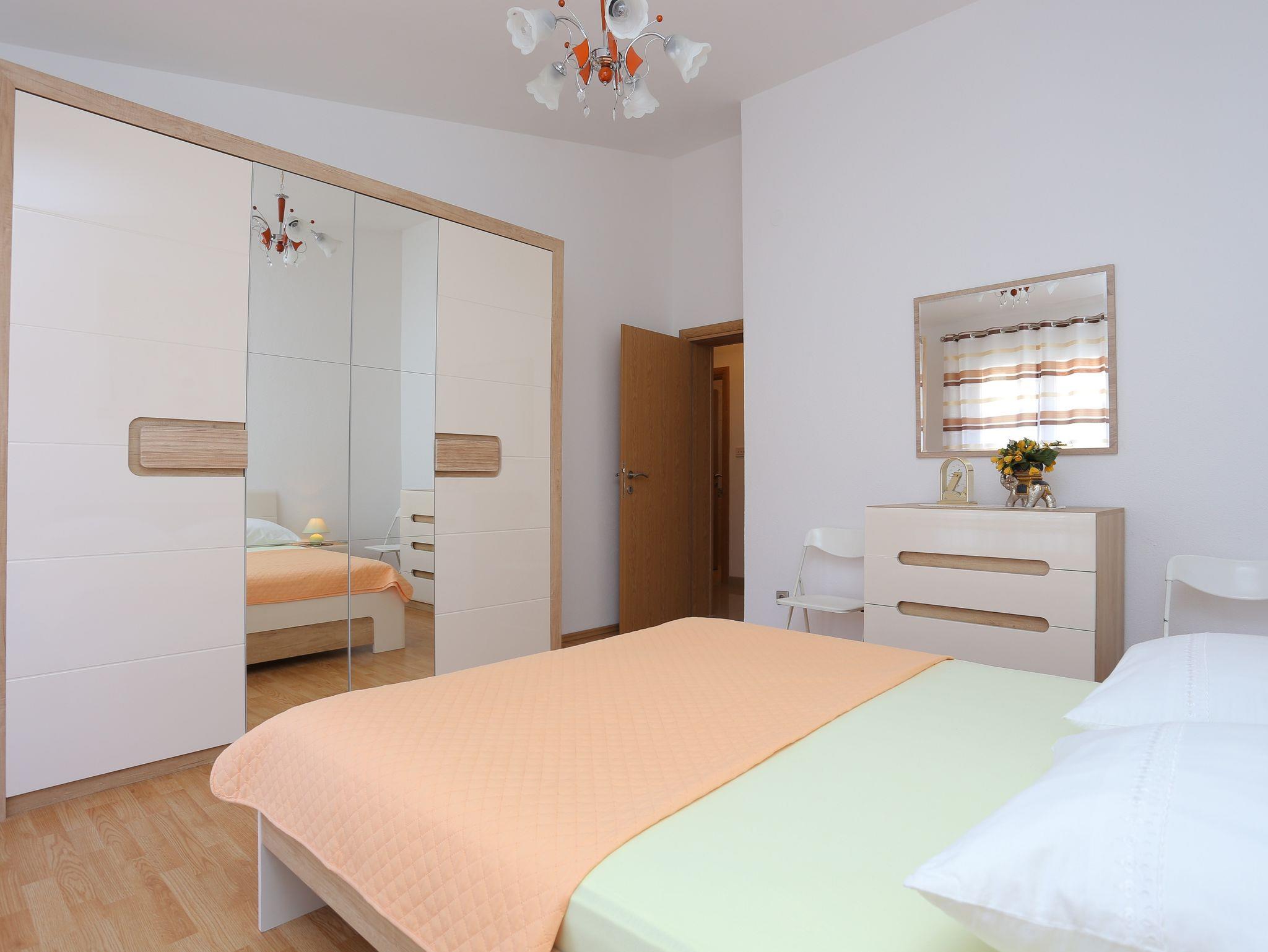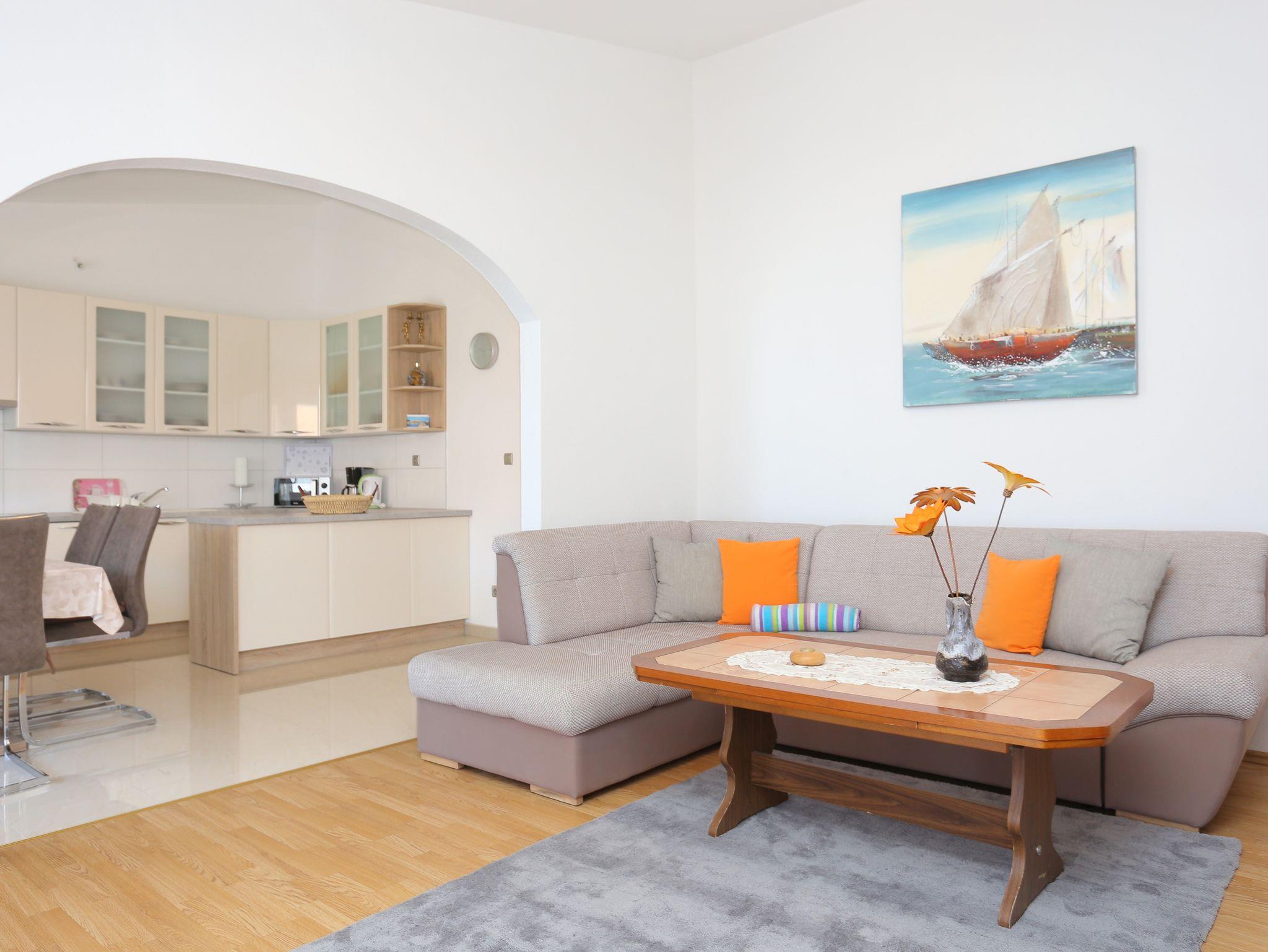 Ferienwohnung bietet Platz für 8 Gäste. Die Betten sind in Schlafzimmern, die es 3 gibt, und in Wohnzimmer, innerhalb einer Gesamtfläche von 104m2, angeordnet. Die Gäste haben einen eigenen Balkon zur Verfügung, auf der sie in warmen Sommernächten genießen können. Das Apartment bietet Meerblick. Es ist erlaubt, Speisen auf dem Gemeinschafts-Grill vorzubereiten. IM PREIS INBEGRIFFEN: Kurtaxe, Endreinigung, Parkplatz, Internet, Bügeleisen, Bügelbrett, Föhn. VERBINDLICHE ZUSÄTZLICHE KOSTEN: Aufzahlung für Kurzaufenthalte (prozentualer Zuschlag pro Nächtigungsanzahl: 30% - 1, 20% - 2, 10% - 3). UNVERBINDLICHE ZUSÄTZLICHE KOSTEN: Klimatisierung (1,00 € kwh), Wäschewaschen (5,00 € Waschen). Die Verfügbarkeit zusätzlicher Dienstleistungen in Ihrem reservierten Termin und die Preise derselben (falls nicht aufgeführt) müssen im Voraus überprüft werden. Zusätzliche Dienstleistungen die in der Zahlungsaufforderung nicht aufgeführt sind werden direkt beim Vermieter bezahlt, angenommen der Gast nutzt auch diese. Ermäßigung auf den Grundpreis: Gratistag 14=13 (bei einem Aufenthalt von 14 Tagen oder mehr erhalten Sie einen Gratistag für den Aufenthalt bis 31.12.26).