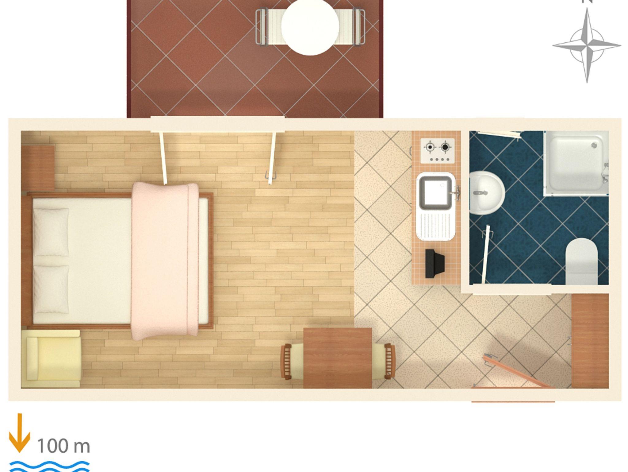 Studio bietet Platz für 2 Gäste. Die Betten sind in Schlafzimmern, die es 1 gibt, innerhalb einer Gesamtfläche von 19m2, angeordnet. Die Gäste haben einen eigenen Balkon zur Verfügung, auf der sie in warmen Sommernächten genießen können. Es ist erlaubt, Speisen auf dem Gemeinschafts-Grill vorzubereiten. IM PREIS INBEGRIFFEN: Kurtaxe, Endreinigung, Klimatisierung, Parkplatz, Internet. VERBINDLICHE ZUSÄTZLICHE KOSTEN: Aufzahlung für Kurzaufenthalte (prozentualer Zuschlag pro Nächtigungsanzahl: 30% - 1, 20% - 2, 10% - 3). Die Verfügbarkeit zusätzlicher Dienstleistungen in Ihrem reservierten Termin und die Preise derselben (falls nicht aufgeführt) müssen im Voraus überprüft werden. Zusätzliche Dienstleistungen die in der Zahlungsaufforderung nicht aufgeführt sind werden direkt beim Vermieter bezahlt, angenommen der Gast nutzt auch diese.