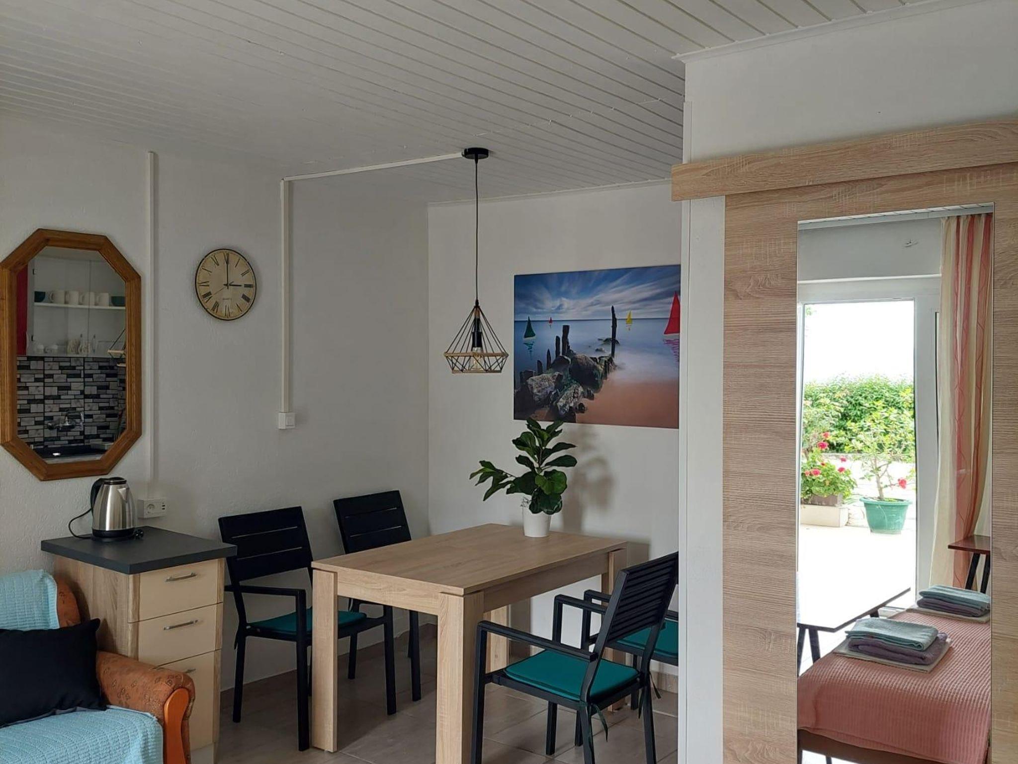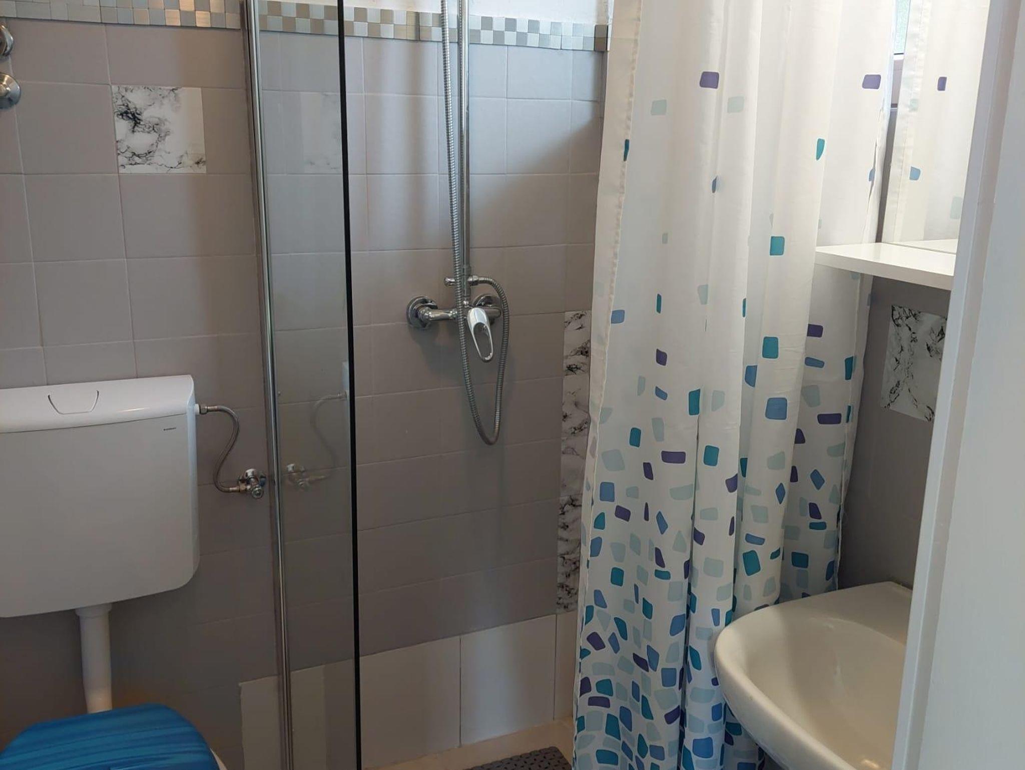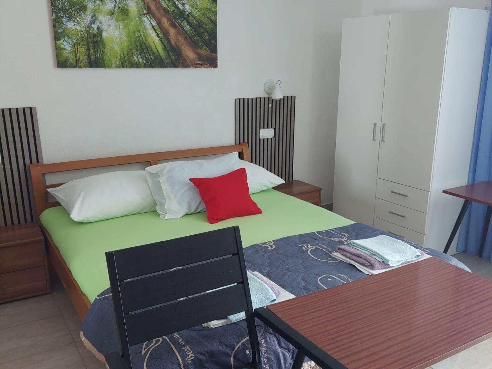 Studio bietet Platz für 3 Gäste. Die Betten sind in Schlafzimmern, die es 1 gibt, innerhalb einer Gesamtfläche von 21m2, angeordnet. Die Gäste haben eine eigene Terrasse zur Verfügung, auf der sie in warmen Sommernächten genießen können. Das Studio-Apartment bietet Meerblick. Es ist erlaubt, Speisen auf dem Gemeinschafts-Grill vorzubereiten. IM PREIS INBEGRIFFEN: Kurtaxe, Endreinigung, Klimatisierung, Parkplatz, Internet, Bügelbrett, Föhn. VERBINDLICHE ZUSÄTZLICHE KOSTEN: Aufzahlung für Kurzaufenthalte (prozentualer Zuschlag pro Nächtigungsanzahl: 30% - 1, 20% - 2, 10% - 3). Die Verfügbarkeit zusätzlicher Dienstleistungen in Ihrem reservierten Termin und die Preise derselben (falls nicht aufgeführt) müssen im Voraus überprüft werden. Zusätzliche Dienstleistungen die in der Zahlungsaufforderung nicht aufgeführt sind werden direkt beim Vermieter bezahlt, angenommen der Gast nutzt auch diese. Ermäßigung auf den Grundpreis: Gratistag 14=13 (bei einem Aufenthalt von 14 Tagen oder mehr erhalten Sie einen Gratistag für den Aufenthalt bis 31.12.26).