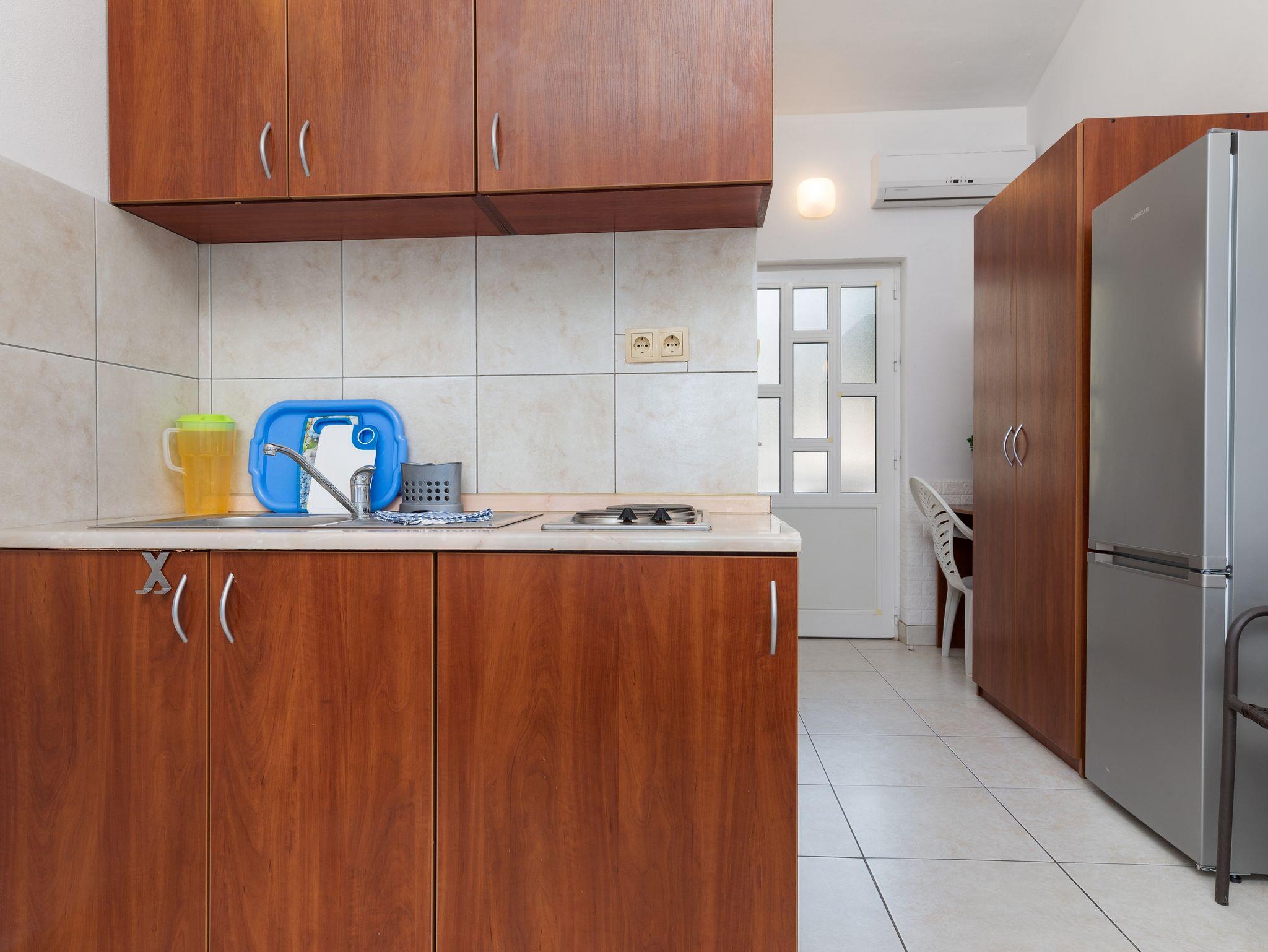 Studio bietet Platz für 3 Gäste. Die Betten sind in Schlafzimmern, die es 1 gibt, innerhalb einer Gesamtfläche von 23m2, angeordnet. Die Gäste haben einen eigenen Balkon zur Verfügung, auf der sie in warmen Sommernächten genießen können. Das Studio-Apartment bietet Meerblick. Es ist erlaubt, Speisen auf dem Gemeinschafts-Grill vorzubereiten. IM PREIS INBEGRIFFEN: Kurtaxe, Endreinigung, Klimatisierung, Parkplatz, Internet, Bügelbrett, Föhn. VERBINDLICHE ZUSÄTZLICHE KOSTEN: Aufzahlung für Kurzaufenthalte (prozentualer Zuschlag pro Nächtigungsanzahl: 30% - 1, 20% - 2, 10% - 3). UNVERBINDLICHE ZUSÄTZLICHE KOSTEN: Zusatzbett (10,00 € pro Nacht). Die Verfügbarkeit zusätzlicher Dienstleistungen in Ihrem reservierten Termin und die Preise derselben (falls nicht aufgeführt) müssen im Voraus überprüft werden. Zusätzliche Dienstleistungen die in der Zahlungsaufforderung nicht aufgeführt sind werden direkt beim Vermieter bezahlt, angenommen der Gast nutzt auch diese. Ermäßigung auf den Grundpreis: Gratistag 14=13 (bei einem Aufenthalt von 14 Tagen oder mehr erhalten Sie einen Gratistag für den Aufenthalt bis 31.12.26).