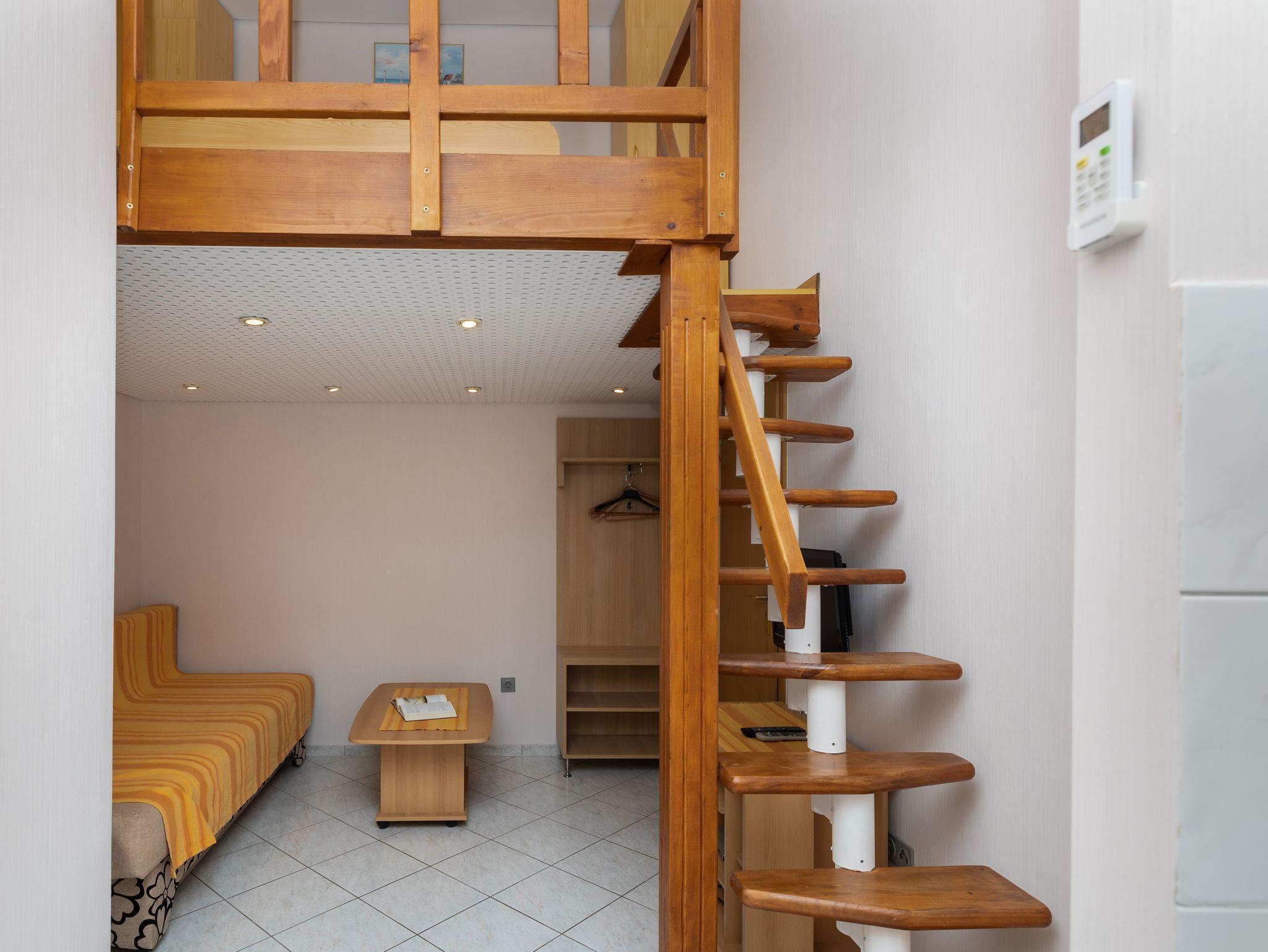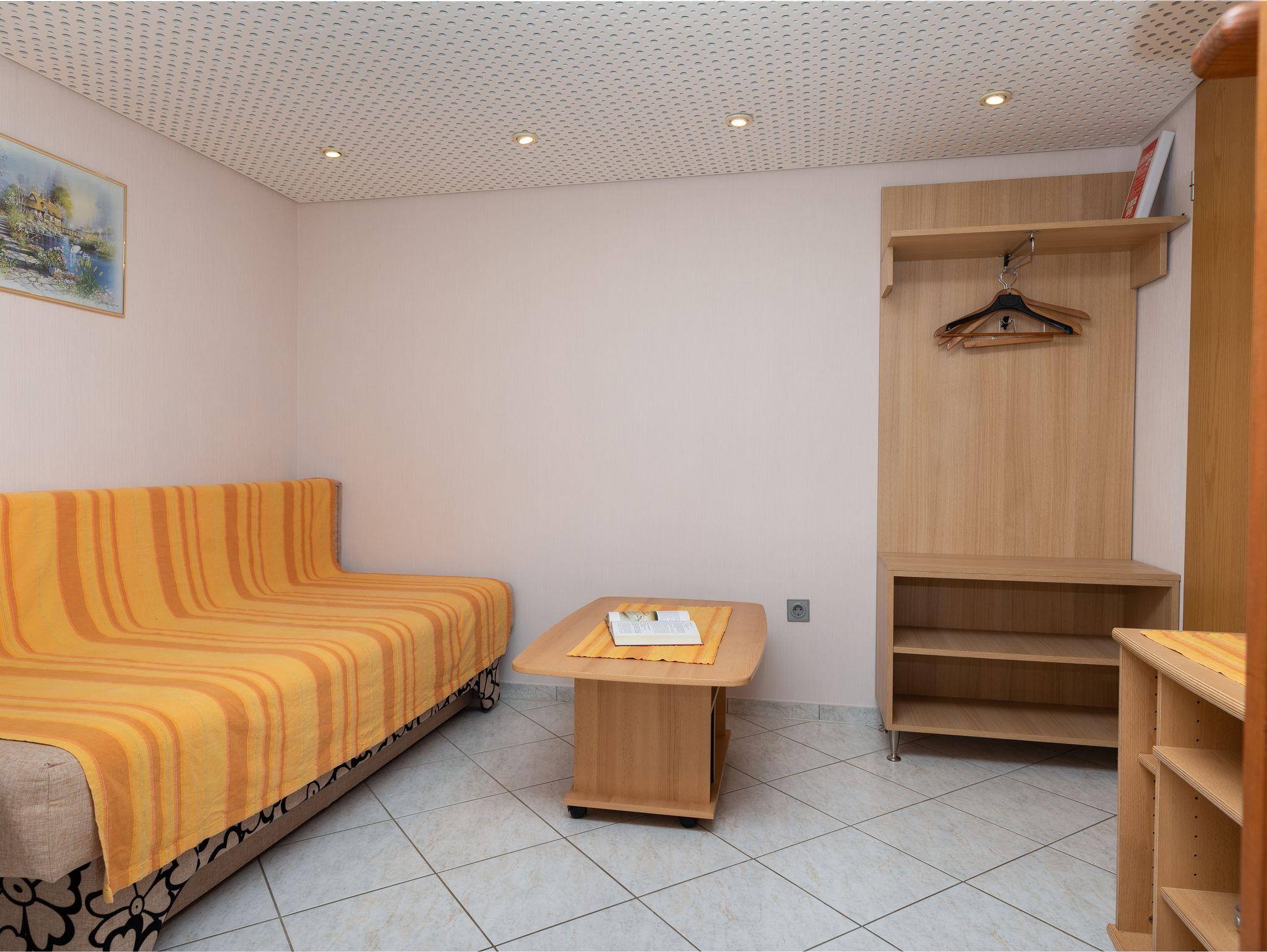 Studio bietet Platz für 2 Gäste. Die Betten sind in Schlafzimmern, die es 1 gibt, innerhalb einer Gesamtfläche von 21m2, angeordnet. Die Gäste haben einen eigenen Balkon zur Verfügung, auf der sie in warmen Sommernächten genießen können. Es ist erlaubt, Speisen auf dem Gemeinschafts-Grill vorzubereiten. IM PREIS INBEGRIFFEN: Kurtaxe, Endreinigung, Klimatisierung, Parkplatz, Internet, Bügeleisen, Bügelbrett. VERBINDLICHE ZUSÄTZLICHE KOSTEN: Aufzahlung für Kurzaufenthalte (prozentualer Zuschlag pro Nächtigungsanzahl: 30% - 1, 20% - 2, 10% - 3). UNVERBINDLICHE ZUSÄTZLICHE KOSTEN: Zentralheizung (5,00 € pro Nacht), Wäschewaschen (7,00 € Waschen). Die Verfügbarkeit zusätzlicher Dienstleistungen in Ihrem reservierten Termin und die Preise derselben (falls nicht aufgeführt) müssen im Voraus überprüft werden. Zusätzliche Dienstleistungen die in der Zahlungsaufforderung nicht aufgeführt sind werden direkt beim Vermieter bezahlt, angenommen der Gast nutzt auch diese. Ermäßigung auf den Grundpreis: Gratistag 14=13 (bei einem Aufenthalt von 14 Tagen oder mehr erhalten Sie einen Gratistag für den Aufenthalt bis 31.12.26).