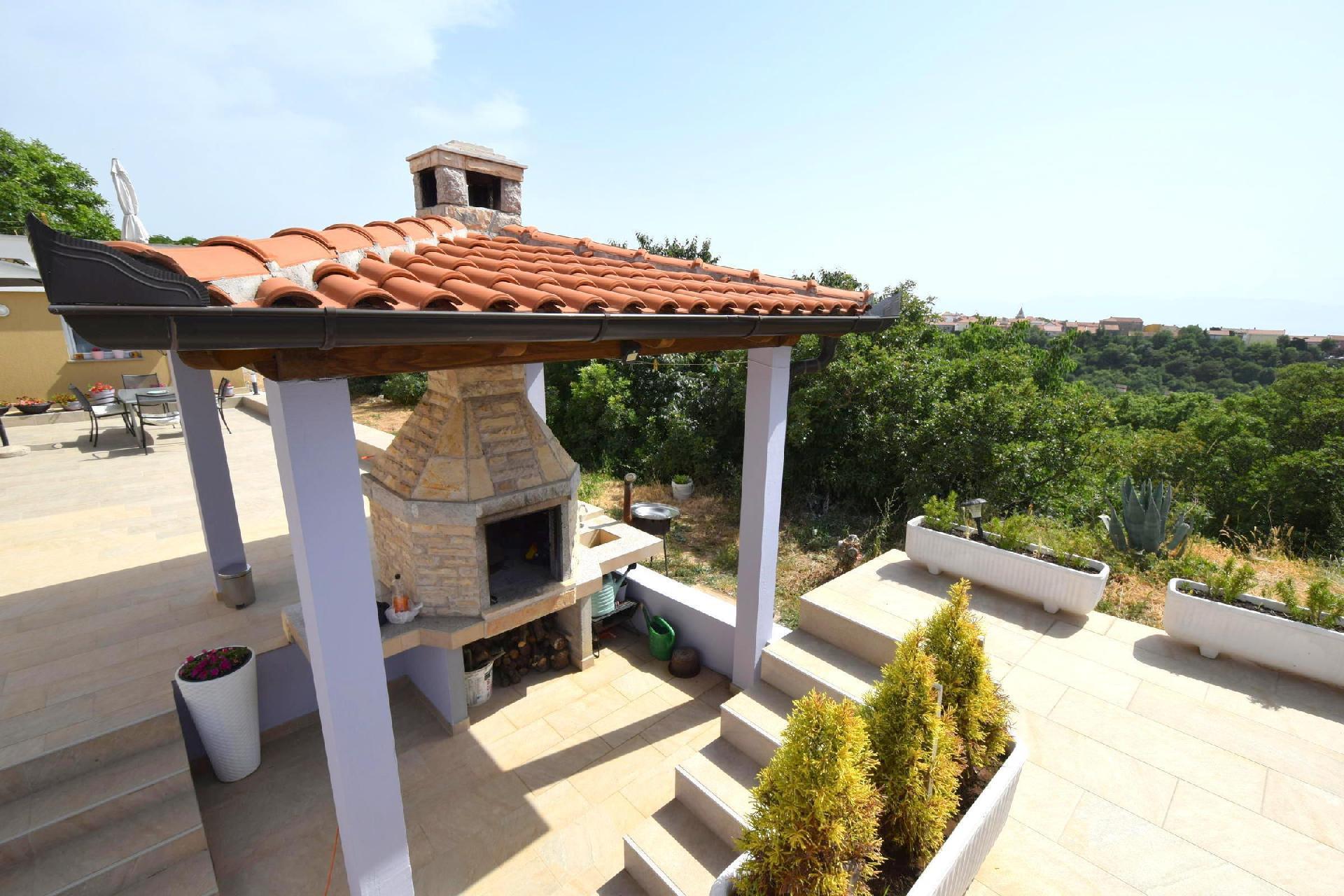 Apartment house with swimming pool is located in Omišalj, only 500 m away from restaurants and shops, and 1400 m away from the beach. There are 3 apartments in the house. The larger apartment on the ground floor has two bedrooms, a kitchen with a dining room and a living room, a bathroom, a beautiful terrace with lounge furniture and garden furniture. In the high attic there is an apartment with three bedrooms, a spacious living room with a kitchen and dining room, and a bathroom. One bedroom and the living room open onto a balcony with a beautiful panoramic view of the sea and the center of the town. The smaller apartment on the ground floor is 40 m2 in size and consists of one bedroom, living room with kitchen and bathroom and can host up to 3 people. The apartments are air-conditioned, have free Wi-Fi and guests can use the pool and fireplace. Parking is in the yard. Pets are allowed for an extra charge.