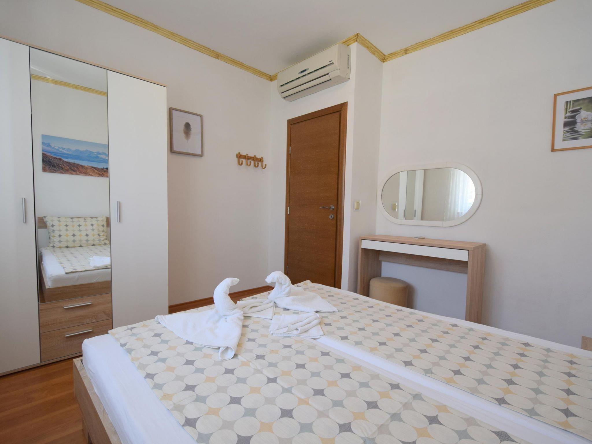 Ferienwohnung bietet Platz für 6 Gäste. Die Betten sind in Schlafzimmern, die es 3 gibt, innerhalb einer Gesamtfläche von 98m2, angeordnet. Die Gäste haben eine eigene Terrasse zur Verfügung, auf der sie in warmen Sommernächten genießen können. Das Apartment bietet Meerblick. Es ist erlaubt, Speisen auf dem Gemeinschafts-Grill vorzubereiten. In der Unterkunftseinheit besteht die Möglichkeit des Mitbringens von Haustieren gegen Aufpreis. IM PREIS INBEGRIFFEN: Kurtaxe, Endreinigung, Klimatisierung, Parkplatz, Internet. VERBINDLICHE ZUSÄTZLICHE KOSTEN: Aufzahlung für Kurzaufenthalte (prozentualer Zuschlag pro Nächtigungsanzahl: 30% - 1, 20% - 2, 10% - 3). UNVERBINDLICHE ZUSÄTZLICHE KOSTEN: Haustiere (10,00 € pro Nacht). Die Verfügbarkeit zusätzlicher Dienstleistungen in Ihrem reservierten Termin und die Preise derselben (falls nicht aufgeführt) müssen im Voraus überprüft werden. Zusätzliche Dienstleistungen die in der Zahlungsaufforderung nicht aufgeführt sind werden direkt beim Vermieter bezahlt, angenommen der Gast nutzt auch diese.