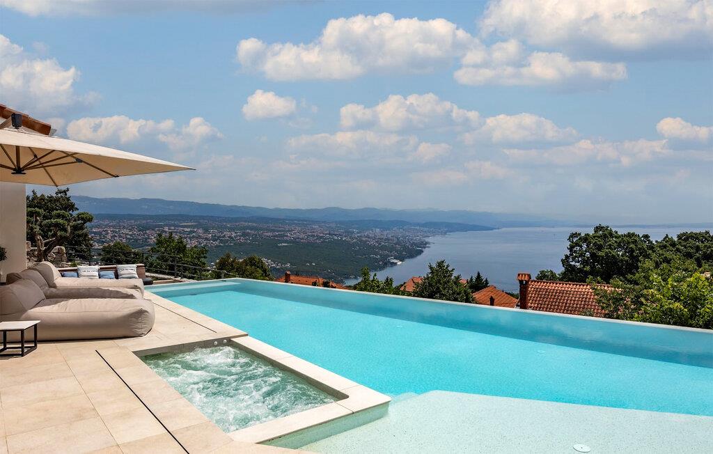 Tag familien under armen og lad ferien udfolde sig under den kroatiske sol i denne drøm af en villa. Huset er fordelt over to etager, hvorfra I kan nyde det helt vidunderlige panorama-vue over havet. Indretningen emmer af komfort og elegance over hele linjen, og møblerne og faciliteterne er af højeste kvalitet. Fra det veludstyrede wellness-område kan I trække udenfor og nyde godt af husets spektakulære udeareal. Bad i solen hele dagen, kun afbrudt af friske dyp i infinity-poolen, eller få masseret musklerne med hydromassage i spabadet, inden I lufttørrer på en liggestol. For børnene er der en stor have og privat legeplads at boltre sig på dagen lang. Når tusmørket falder på, kan I beskue det forunderlige farvespil på himlen, mens I tænder op i grillen og runder en lækker feriedag af med saftige bøffer fra grillen og god vin fra lokalområdet.