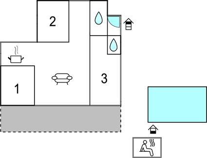Badeværelse 5m2 (nr. 1) - WC. Varmt og koldt vand. Bruser