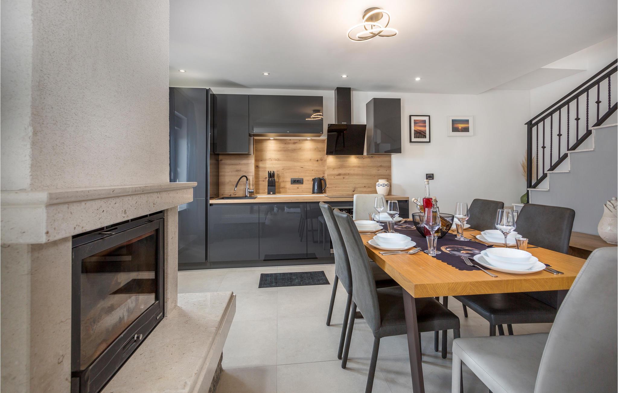 På det skrånende landskab ovenover Icici finder I denne feriebolig, der egner sig godt par eller familier. Det komfortable feriehus strækker sig over tre etager og tilbyder jer en moderne og smuk base under jeres ferie. I husets kælder kan I nyde godt af et fitnessrum samt en taverna til selskabelige aftener.