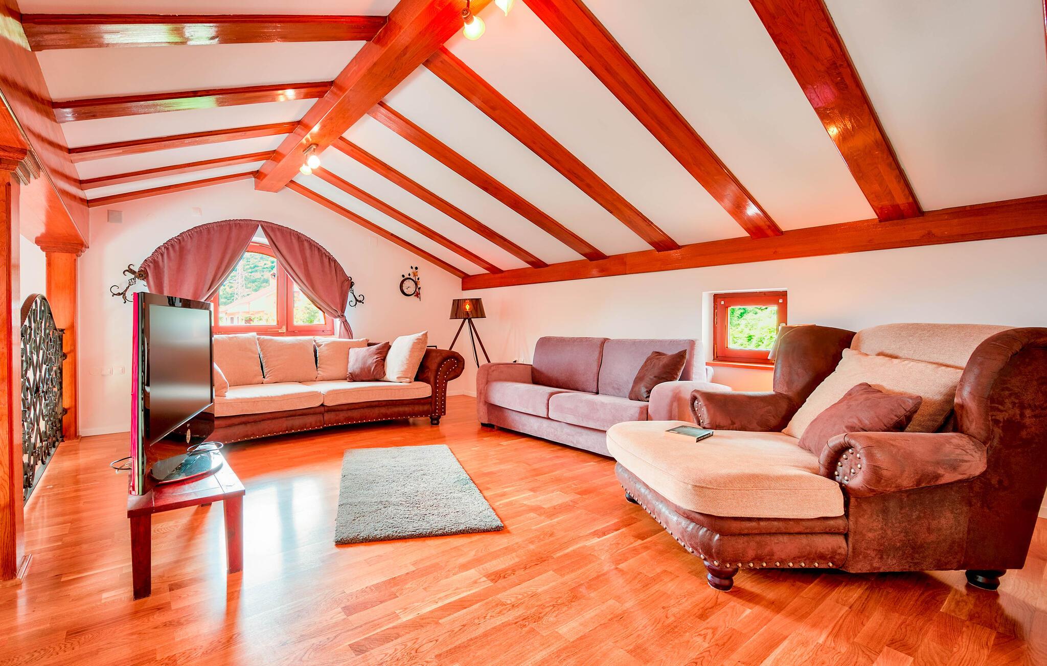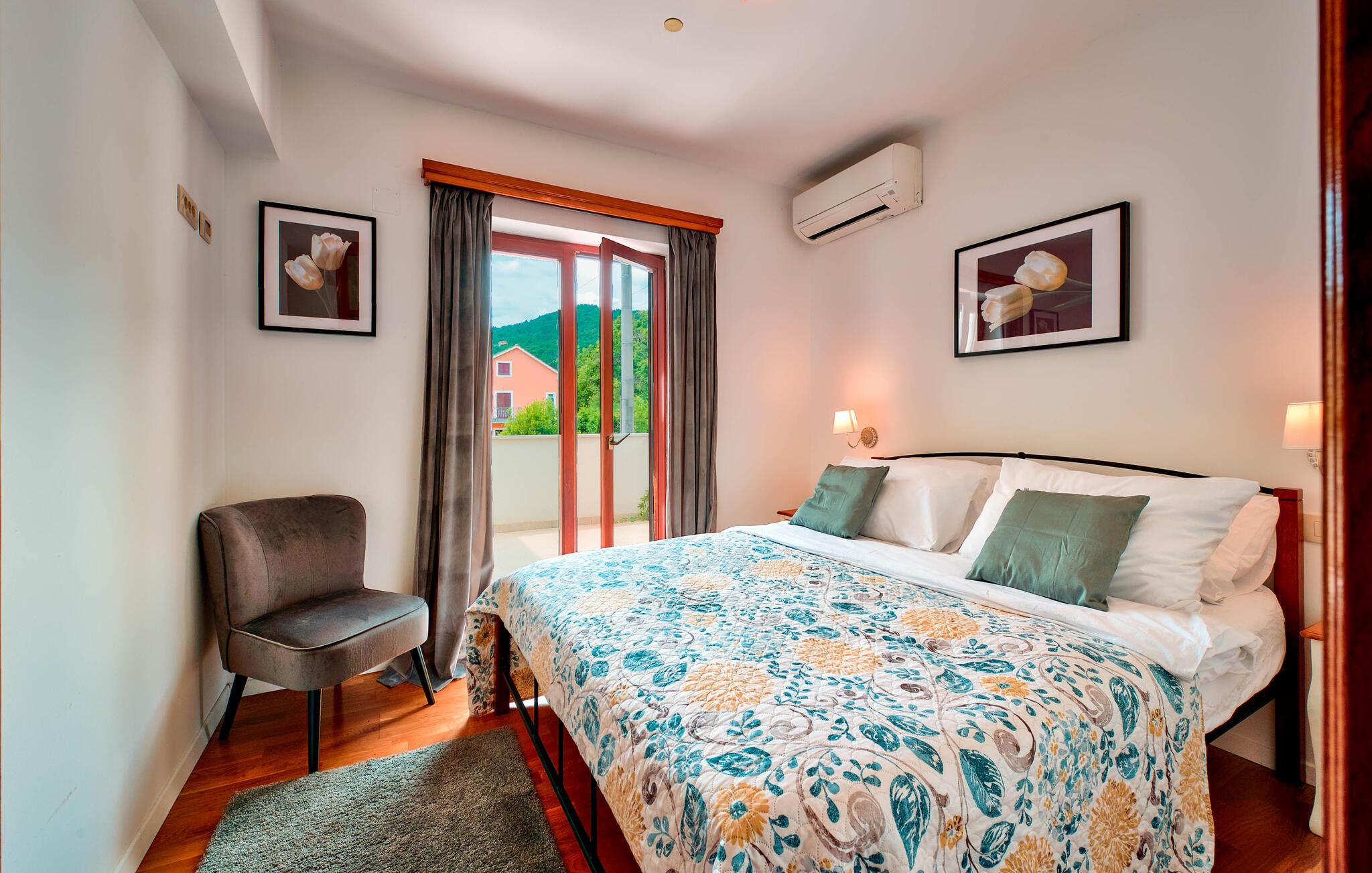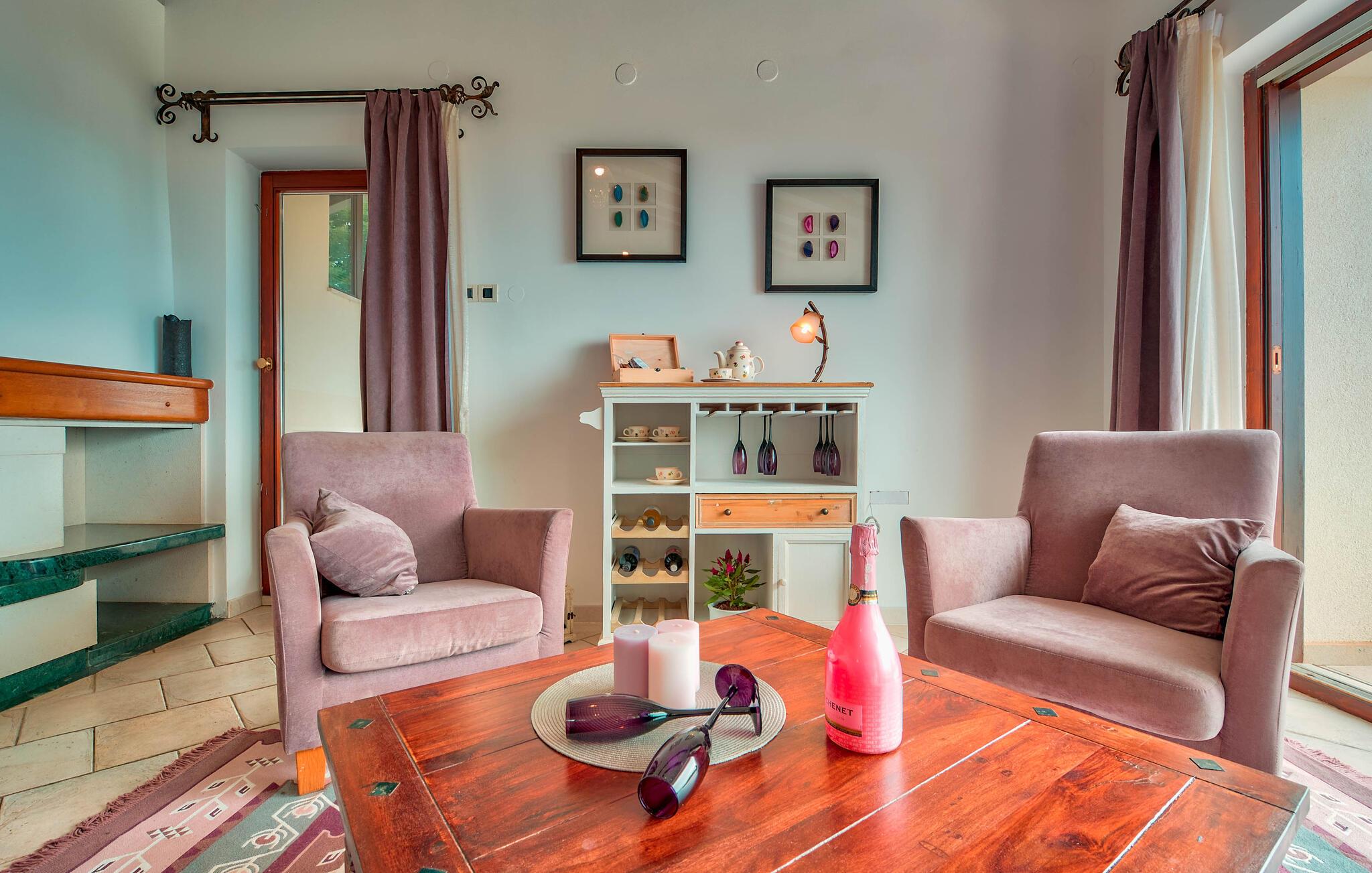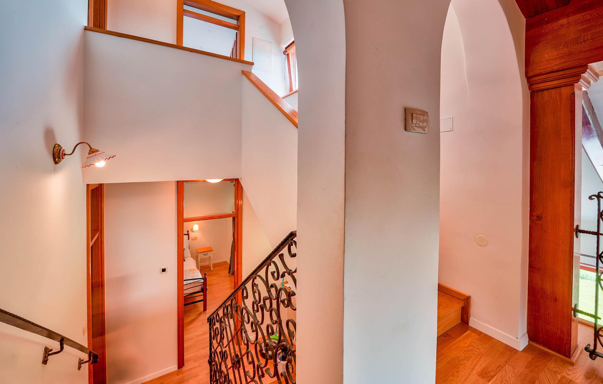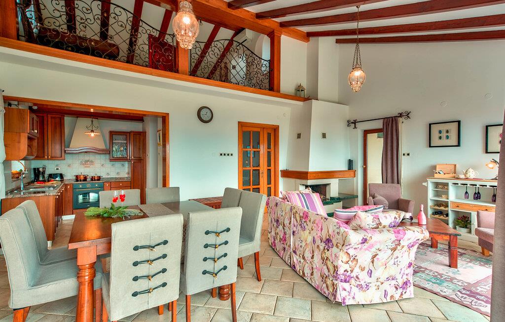Er I på udkig efter en bolig, der indbyder til fred, ro og klassisk ferieidyl med familien? Så er dette skønne hus lige det, I søger! Huset ligger i flotte, grønne omgivelser på en stor grund og fremtræder aldeles charmerende. Indretningen præges af højt til loftet, tydelige træpaneler og en flot udsmykning. Her står den på ren afslapning og hygge; Solbad i haven, dyp jer i poolen og steg nogle saftige bøffer på grillen på terrassen. Her kan I nyde jeres måltider med en betagende udsigt over bugten og landskabet.