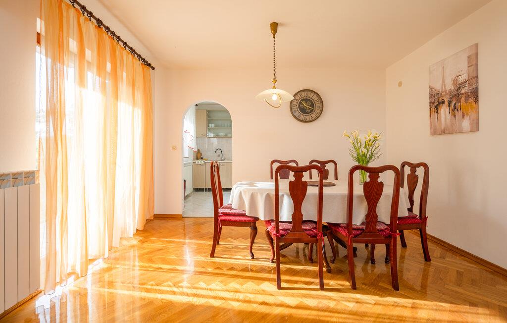 Velkommen til denne attraktive bolig, der ligger i en lejlighedsbygning med en fantastisk beliggenhed ved Opatija Riviera. Indvendigt emmer det af hygge med blide farveskalaer, velholdte trægulve og et rustikt møblement, der gør det nemt at slappe af og hvile benene efter en aktiv feriedag.