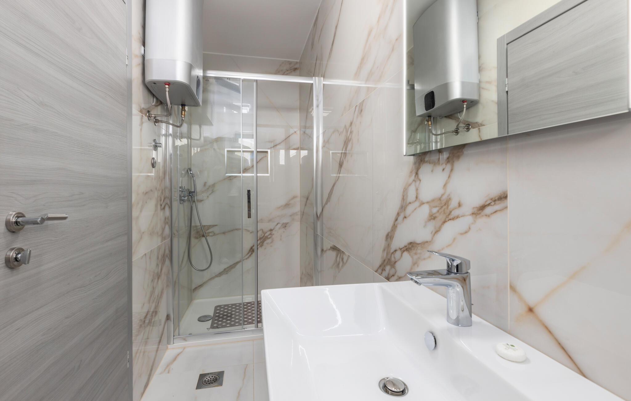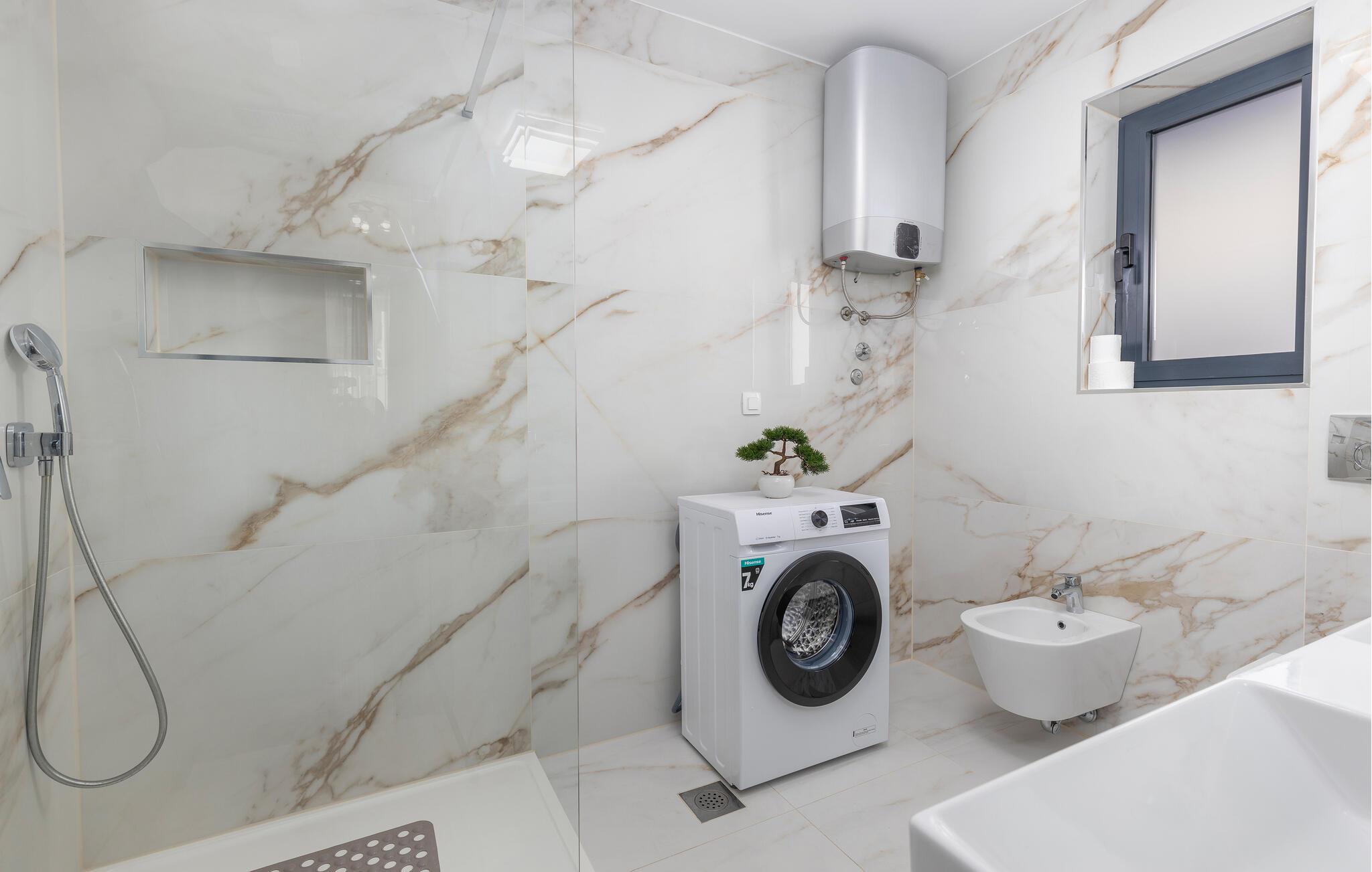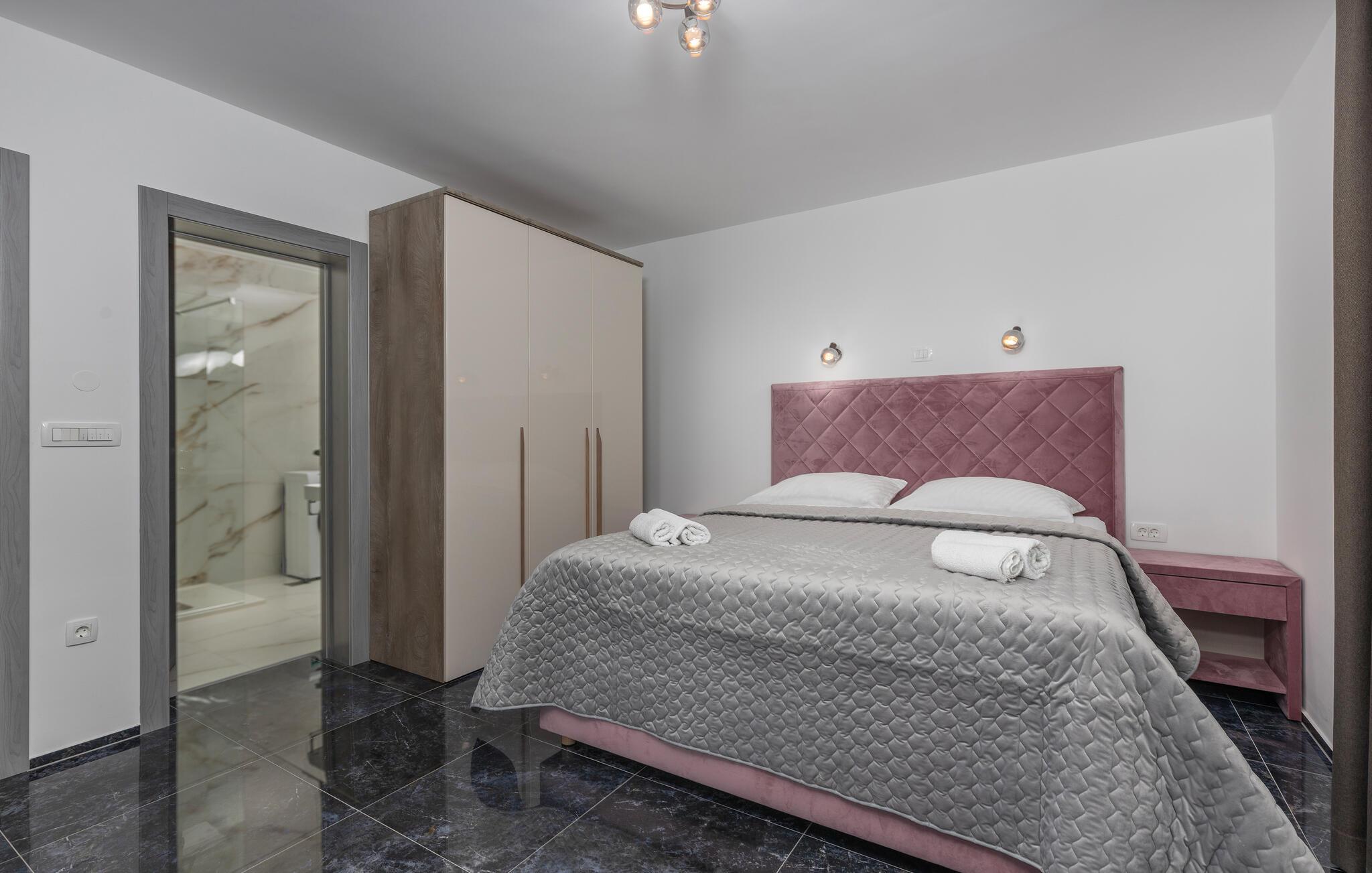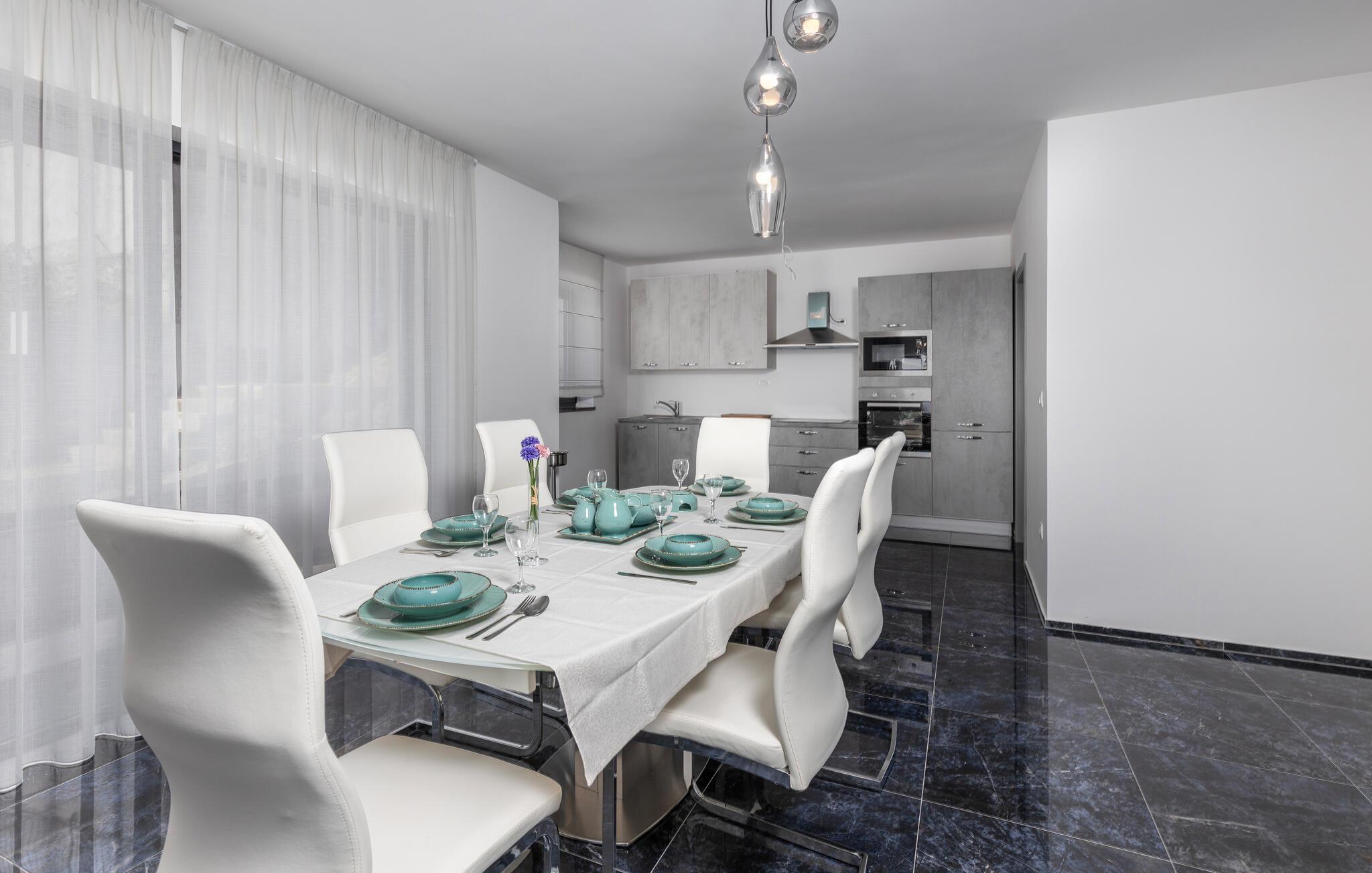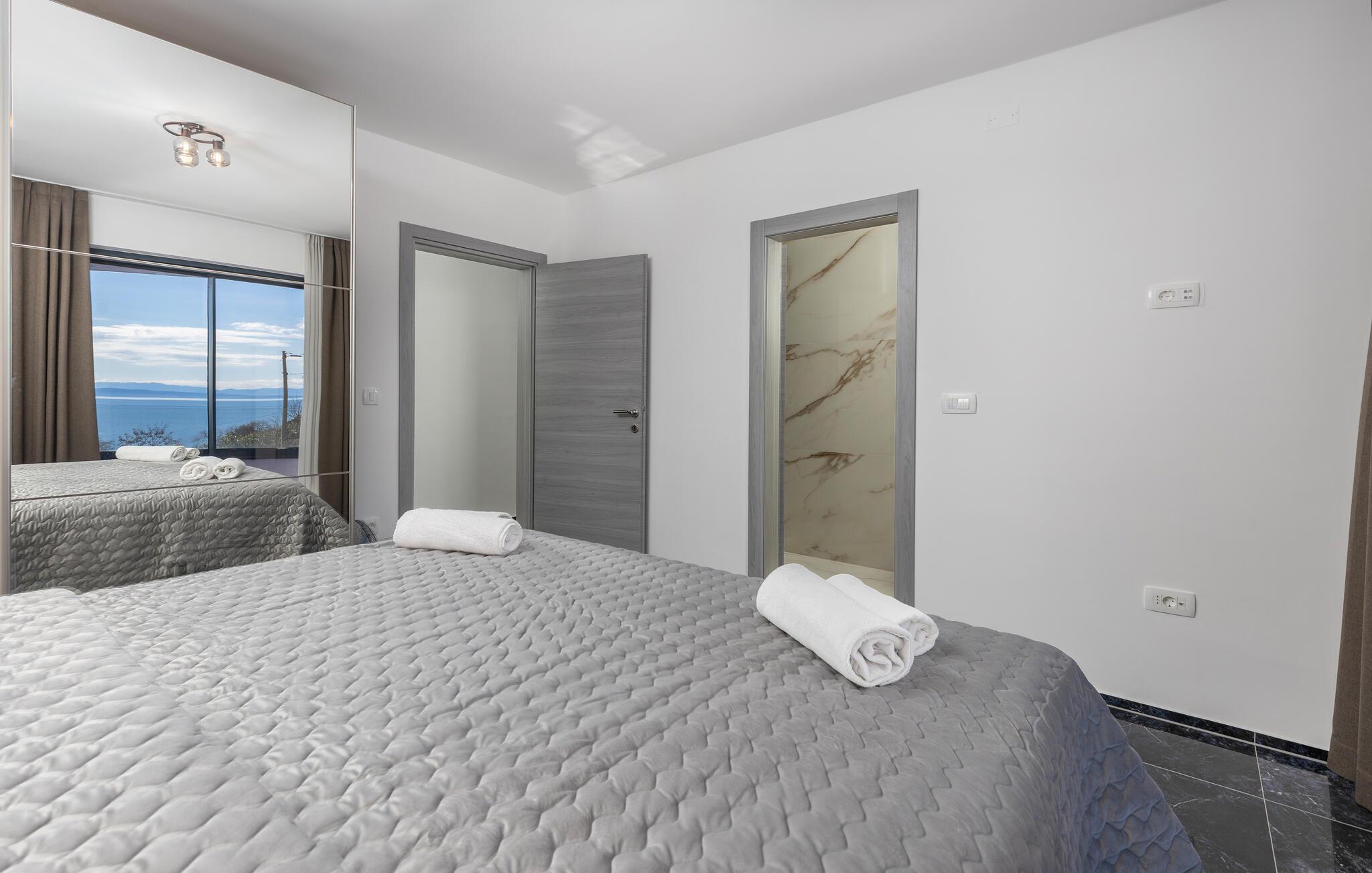 Med sin fremragende beliggenhed kun få skridt fra Kvarnerbugten får I her en vidunderlig base til en ferie med fred, ro og dejlige ture ved stranden. Lejligheden byder på mange kvadratmeter og en indretning, hvor der er tænkt over detaljerne, og som fremtræder stilrent og elegant. Rund en aktiv feriedag af i sofaen med et godt glas vin og brætspil, mens I lægger planer for de kommende dage. Skal I gøre det ekstra lækkert for jer selv, kan I sætte jer godt til rette i spabadet og nyde det varme vand og roen, inden I går til køjs.