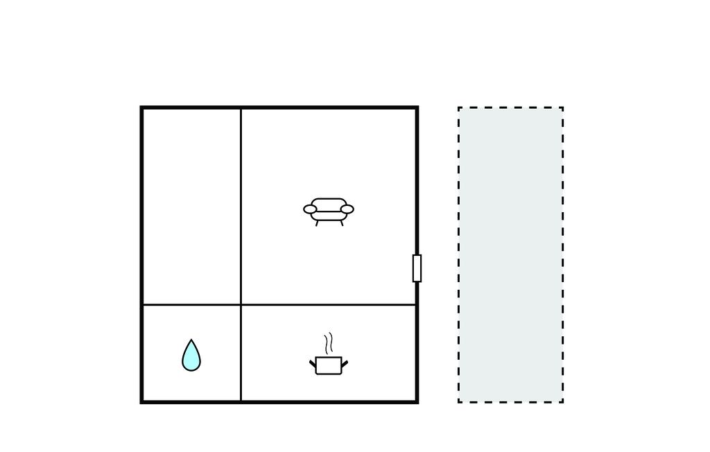 Opholdsstue/køkken 16m2 - 2 Sovepladser. (Dobbeltseng(e)).