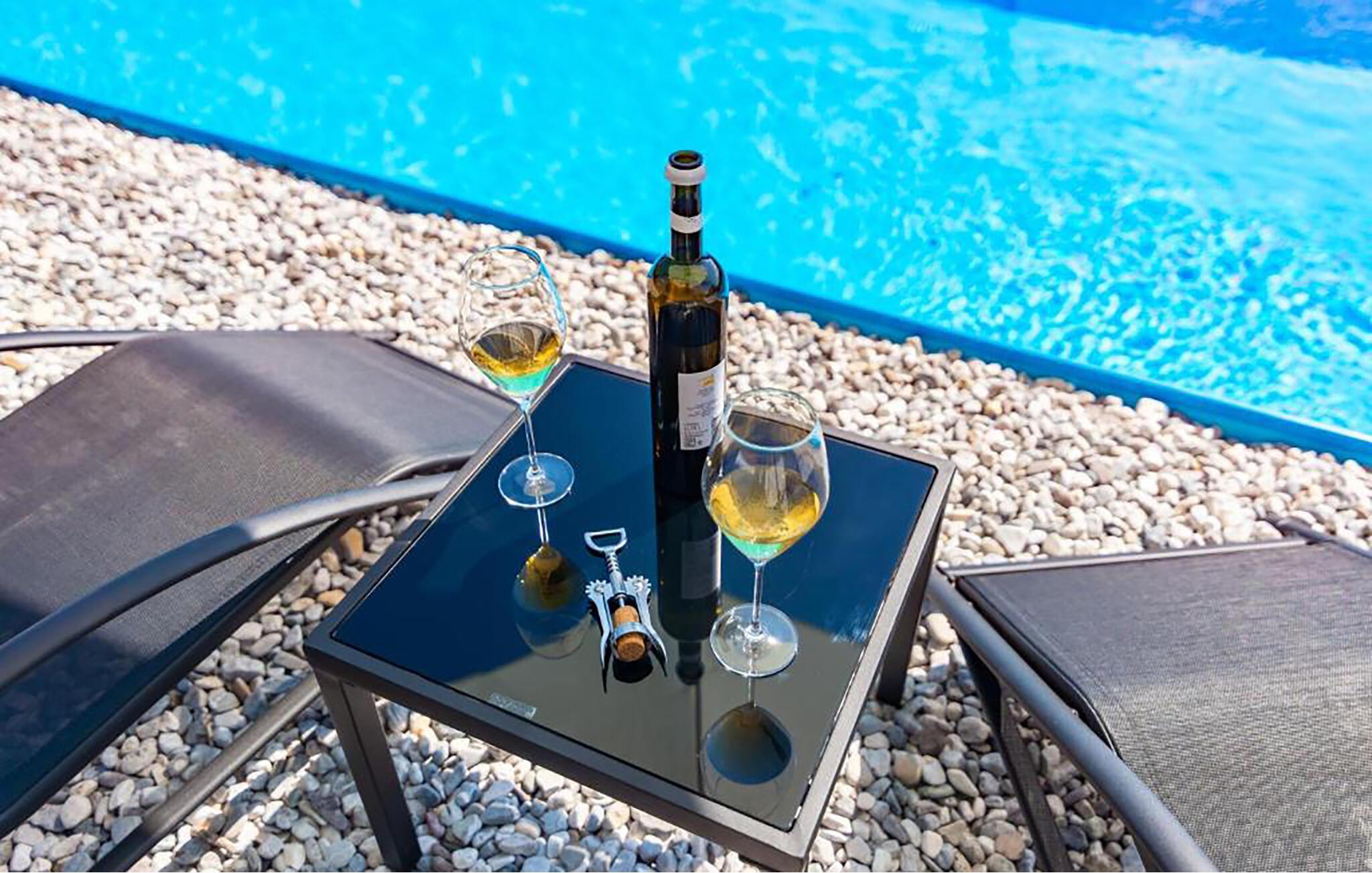 Denne overdækkede terrasse er det perfekte sted for en lang morgenmad i den milde morgensol og skønne måltider udenfor. snup en frisk dukkert i jeres pool, som I vil, og genoplad jeres batterier på liggestolen. Brug murstensgrillen til at ledsage stemningsfulde sommeraftener med lækre retter, og fejr de varme nætter med vin og levende lys.