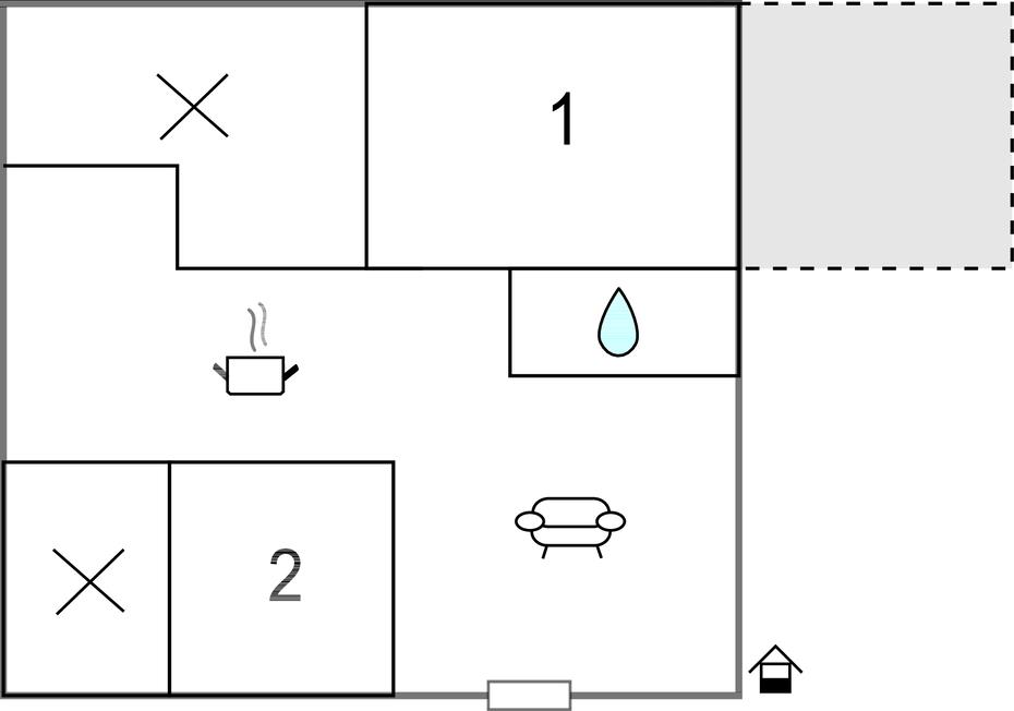 Soveværelse 12m2 (nr. 2) - 2 Sovepladser. (Dobbeltseng(e)).