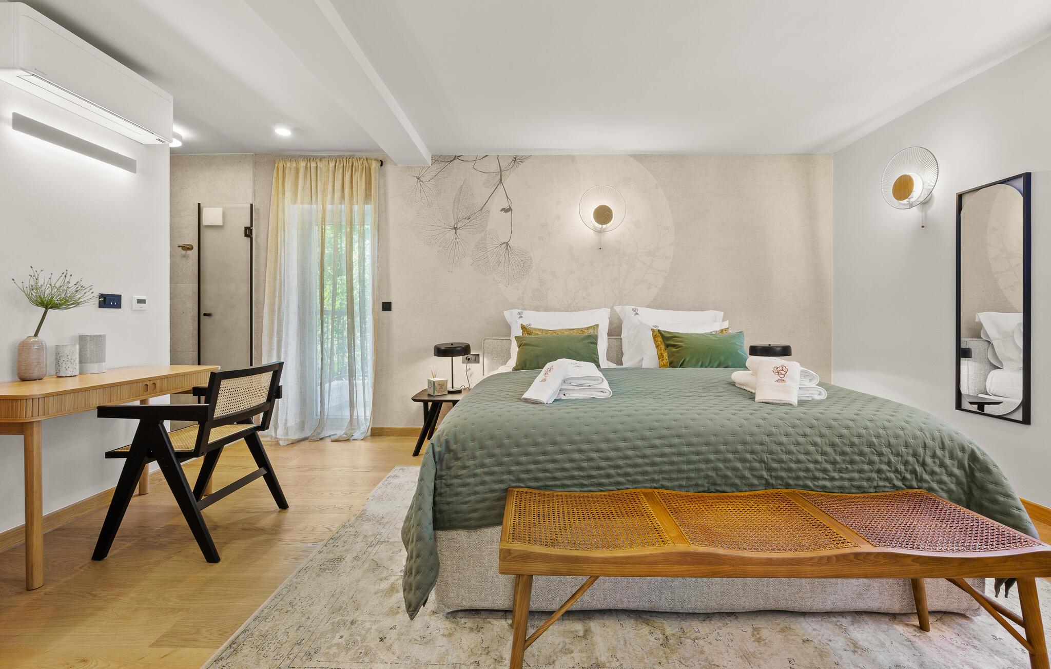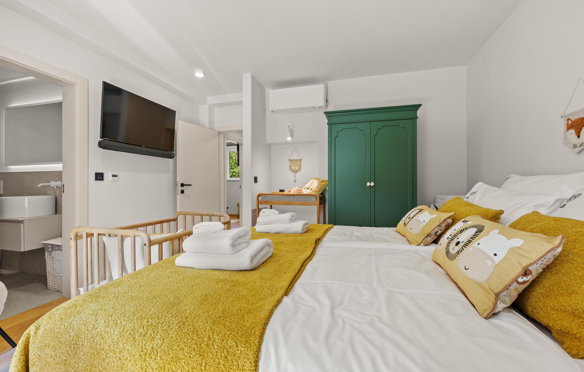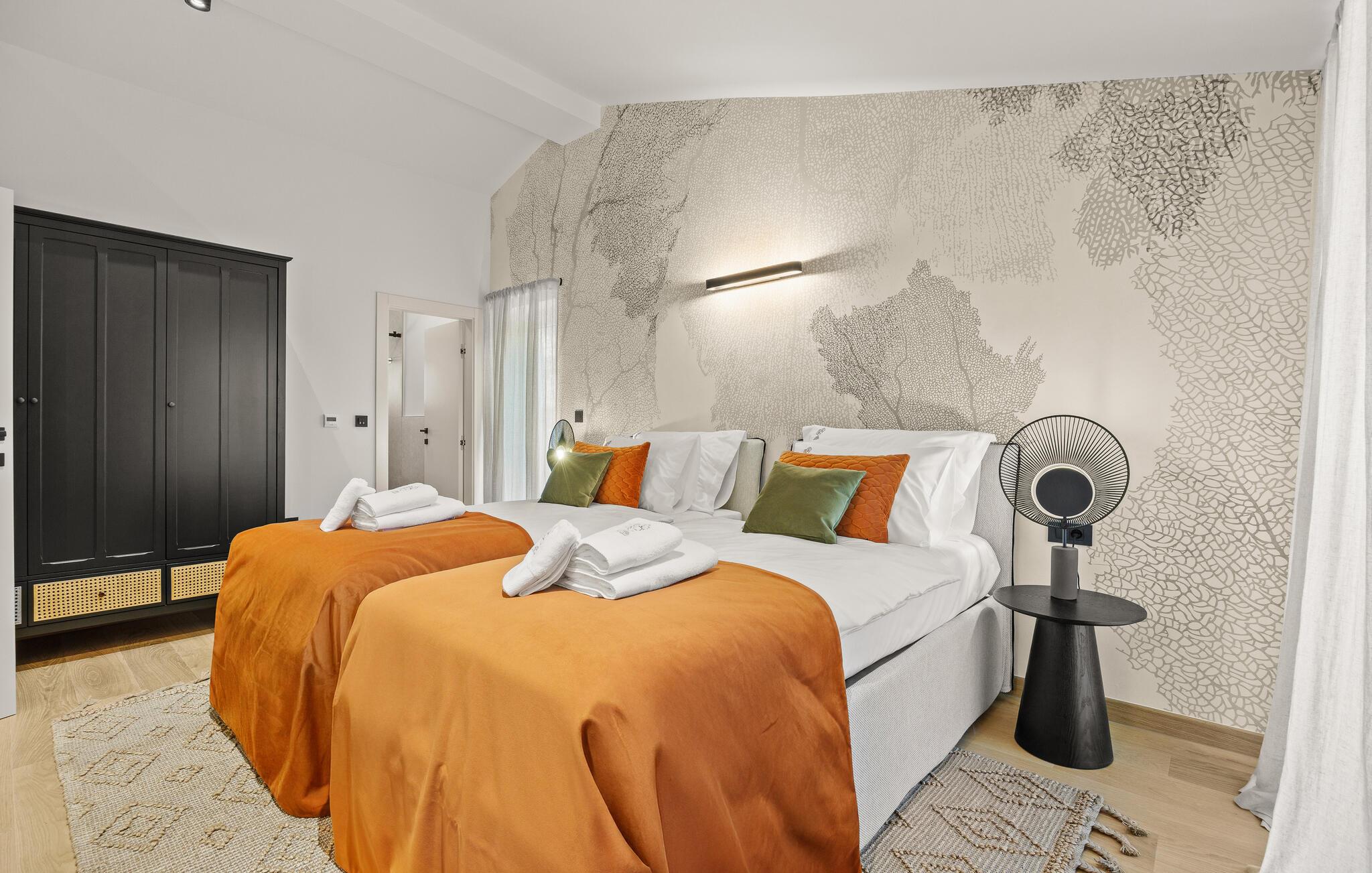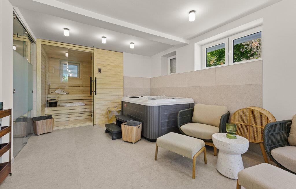 Nyd en afslappende wellness-ferie i dette feriehus med pool, sauna og spabad. Kun få skridt fra stranden tilbyder dette moderne feriehus, udstyret med charmerende ekstraudstyr, de perfekte rammer for en forfriskende pause med venner eller familie. Indenfor skaber smagfulde møbler en behagelig atmosfære, ideel til at nyde harmoniske måltider, stimulerende samtaler og hyggelige spilleaftener. Udfordr hinanden ved poolbordet, stream jeres yndlingsserie, eller forkæl jer selv med øjeblikke med skøn afslapning i saunaen og spabadet. Det frodige udendørsområde lokker med en pragtfuld pool, hvor I kan forfriske jer fra morgen til aften. Slap af på en liggestol, snak over et glas vin i loungen, og nyd lune sommeraftener med lækre grillmad. Udforsk Opatijas historiske centrum med dets elegante villaer og botaniske haver, tag en bådtur til øerne Krk eller Rab, og snorkel i rolige bugter med krystalklart vand. Besøg charmerende kystbyer som Lovran og Icici, og prøv lokale specialiteter i traditionelle konobas (taverner).