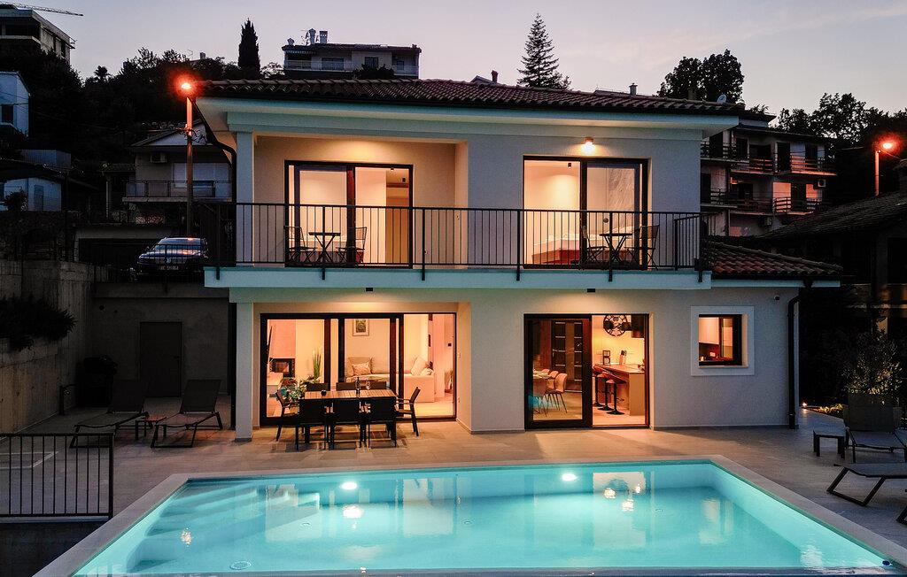 Oplev en drømmeferie i dette moderne feriehus med pool og sensationel havudsigt. Dette rummelige og elegant møblerede feriehus kan prale af en unik beliggenhed og lover uforglemmelige dage sammen med familien eller venner. Skab kulinariske lækkerier, nyd den hyggelige atmosfære med harmoniske måltider, og saml jer om aftenen i den behagelige sofa for at streame en spændende serie. Fra jeres skyggefulde terrasse kan I se ud over den storslåede pool direkte ud til det azurblå hav. Lad den behagelige brise kærtegne jeres ansigt ved morgenmaden, glæd jer til forfriskende timer i poolen og nyd kvalitetstid sammen ved stemningsfulde grillaftener under åben himmel. Gå en tur langs den berømte Lungomare-promenade, tag en bådtur til den nærliggende ø Krk, og udforsk Ucka-bjergene på en let vandretur. Besøg de historiske byer Lovran og Volosko, gå gennem farverige markeder, og prøv frisk fisk og skaldyr i traditionelle konobas (taverner). Om aftenen inviterer strandbarer og små koncerter jer til at slappe af og nyde solnedgangen.