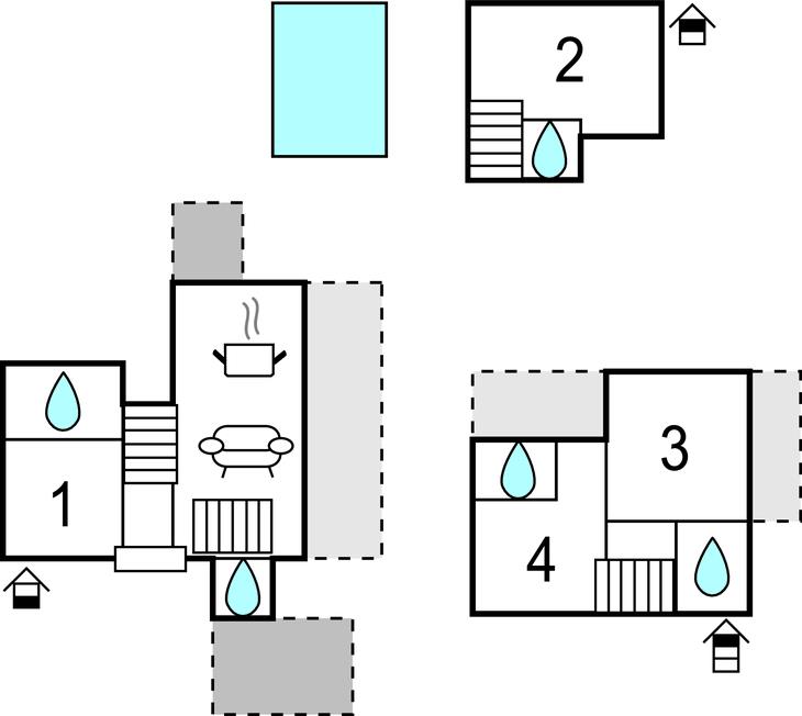 Badeværelse 4m2 (nr. 3) - WC. Varmt og koldt vand. Bruser