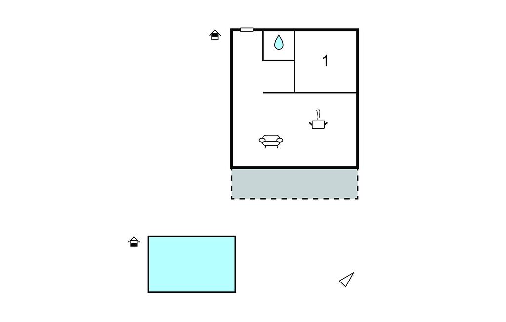 Badeværelse 4m2 (nr. 1) - WC. Varmt og koldt vand. Bruser