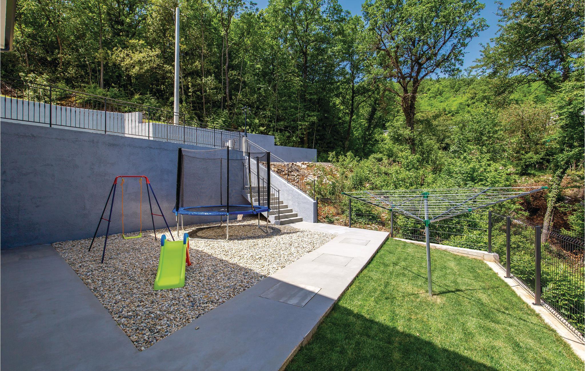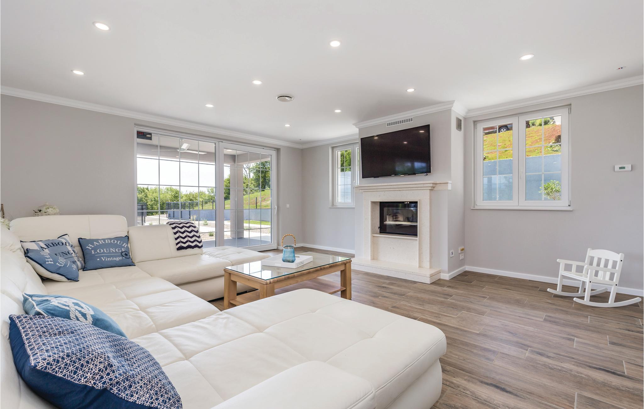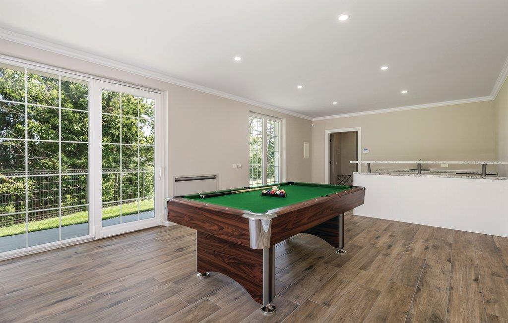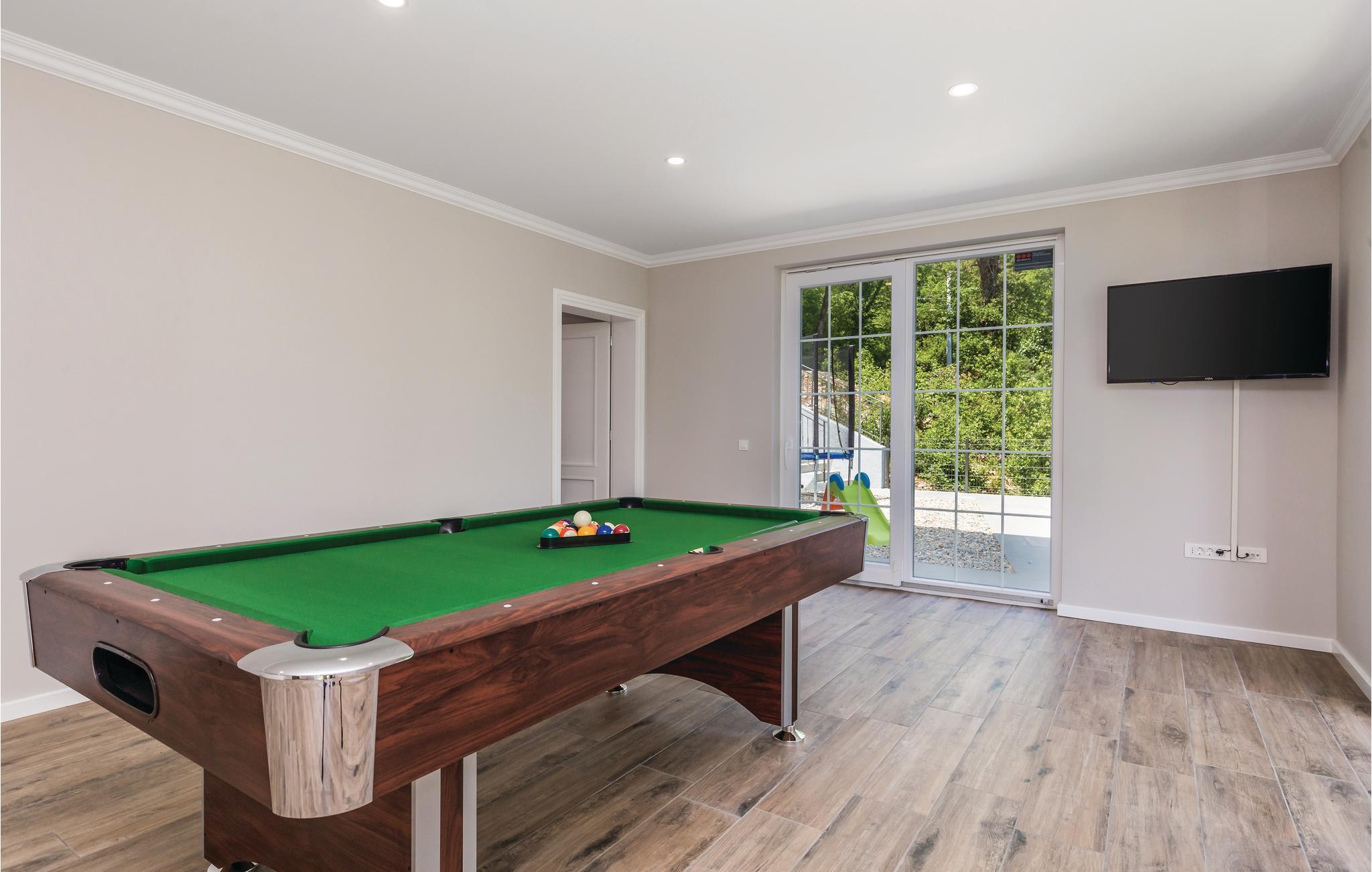 Dette fantastiske feriehus ligger ved foden af bjerget Ucka og over den smukke kystby Opatija. Det ligger i udkanten af en skov, langt væk fra byens støj, i Matulji, hvor I kan slappe af og genvinde kræfterne. Det stilfulde feriehus ligger på en 3000 m² stor og indhegnet grund. Husets store vinduer, der lukker lyset ind og giver en fornemmelse af at være tæt på naturen. Udendørs er der privat pool, liggestole og grill til nem og lækker madlavning. Huset er fordelt på to etager. I stueetagen er der stue med billard, soveværelse, badeværelse og stue, mens spisekøkken, fire soveværelser, to badeværelser og et separat bryggers med vaskemaskine mv. ligger ovenpå. Aktive feriegæster kan udforske området på cykel- og vandrestier. Det tager kun få minutters kørsel at komme til Opatija, med mange restauranter, barer og strande. Den ca. 12 km lange promenade inviterer til gåture. Parkering i garagen.