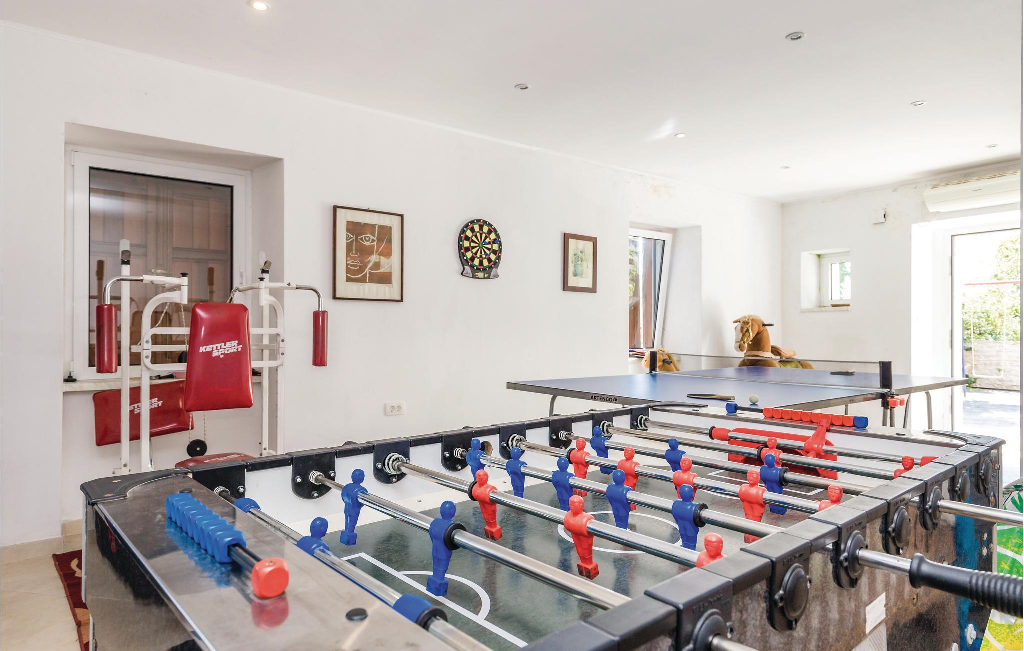 Oplev en perfekt ferie oven for Kvarn-Bugten, i nærheden af naturparken Ucka, hvor den lille bebyggelse Bregi ligger. Feriehuset er smagfuldt og komfortabelt indrettet. Stueetagen og første sal er forbundet med en udvendig trappe. Den minimale loftshøjde i en del af huset udgør 90 cm, hvad der imidlertid ikke påvirker komforten på nogen måde, da huset er meget rummeligt. Slap af i saunaen, tag en dukkert i poolen, og nyd fra terrassen udsigten til havets blå og de idylliske skoves grønne. Tilbring hyggelige timer i havepavillonen med grill eller i den rustikke taverne med en kamin, et fuldstændigt udstyret køkken og et billardbord. Oplev duften af lavendel og det grønne farvespil i olivenlundene. Grunden er dejligt anlagt og indhegnet, hvad der giver jeres børn mulighed for at lege uforstyrret. Med bilen når I hurtigt strandpromenaderne og badestrandene, hvor I kan blive afkølet i det krystalklare hav. Kør til kulturarrangementer, koncerter og fremragende restauranter i Opatija. Gå romantiske ture i de eventyragtige skove i nationalparken Ucka, eller tag på andre udflugter til de omkringliggende øer, nationalparkerne Risnjak og Plitvice-Søerne og landsbyerne i Istrien.