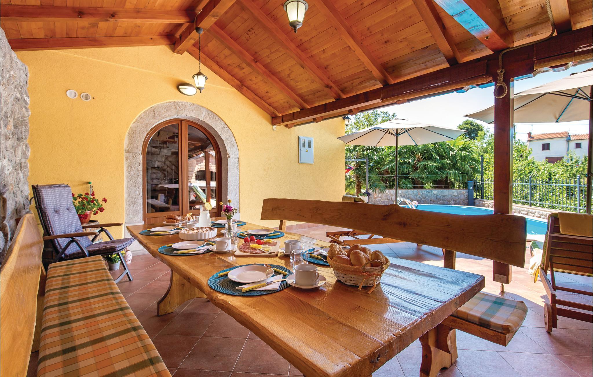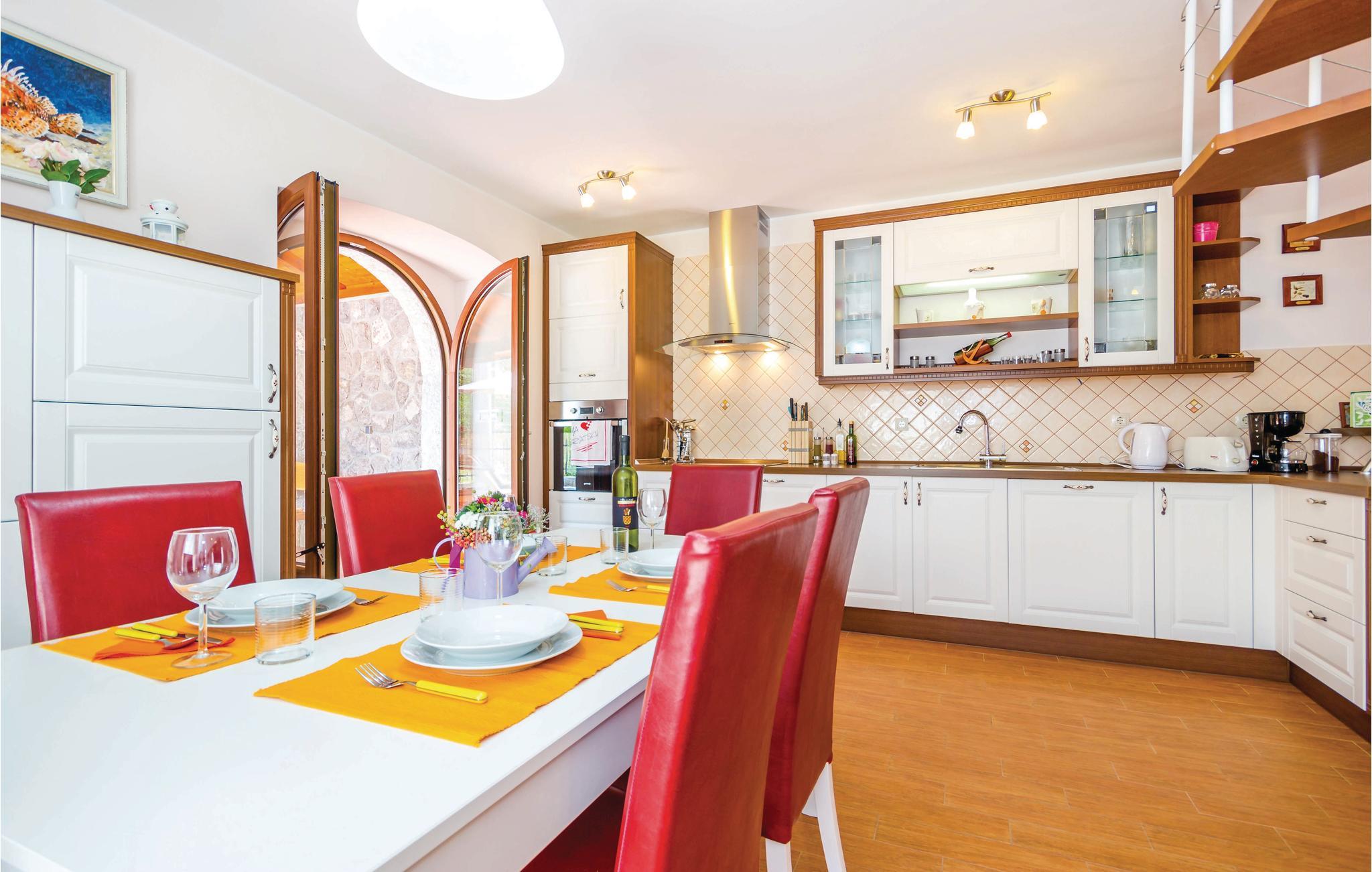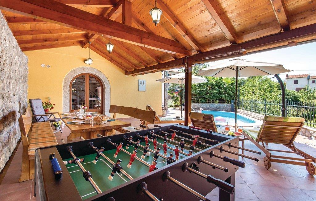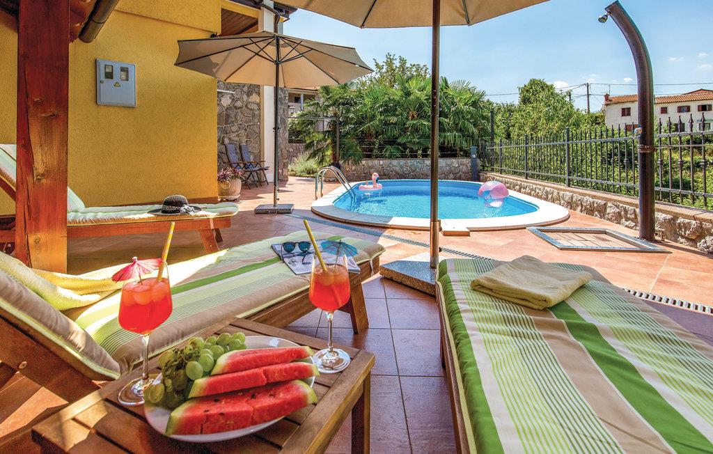De første feriegæster i Optatija-området kom frem allerede i 1844. Den lille fiskerlandsby kunne aldrig have drømt om den fremtidige popularitet, som den kan se tilbage på nu med stolthed. Også andre byer har udviklet sig i samme retning, deriblandt den lille by Bregi, der ligger over Ucka-bjergene. Her, I Bregi, venter dette skønne og komfortabelt indrettede feriehus på jer. Ved indretningen var ejeren opmærksom på at give sine gæster en atmosfære af ”home away from home”. Her kan I afslappet nyde jeres ferie omgivet af indretningens behagelige farver eller ved poolen. På de varme sommerdage har I mulighed for at se på det vidunderlige landskab fra terrassen. Den øverste etage når I ad en stejl indvendig trappe med gelænder. Hvis I vil være sportsligt aktive i ferien, kan I være det på det kondiudstyr, der er i det lille hus på grunden. Fra huset kommer I nemt til de berømte seværdigheder og attraktioner langs kysten af Opatija, hvor der venter rige gastronomiske muligheder og en lang række kultur- og underholdningsarrangementer året rundt, der lægger op til en herlig ferie. Selvom Kvarnerbugten godt nok er mest levende og besøgt om sommeren, er der også mange gode udflugtsmål resten af året. Hvis I foretrækker det lidt afsides fra masserne, så kan I besøge mange andre arrangementer og tage på forskellige vandreture. I begyndelsen af året bliver der startet på de berømte fastelavnsoptog i byen Rijeka. Til marts venter de åbne wellness-dage, eller dagene, hvor I selv kan plukke asparges eller frugt i naturen. I området venter der også tidssvarende kunst, museer, gallerier, kirkekunst, mindesmærker og meget andet. Kort sagt, så er Kvarnerbugten et oplagt rejsemål til alle gæster.