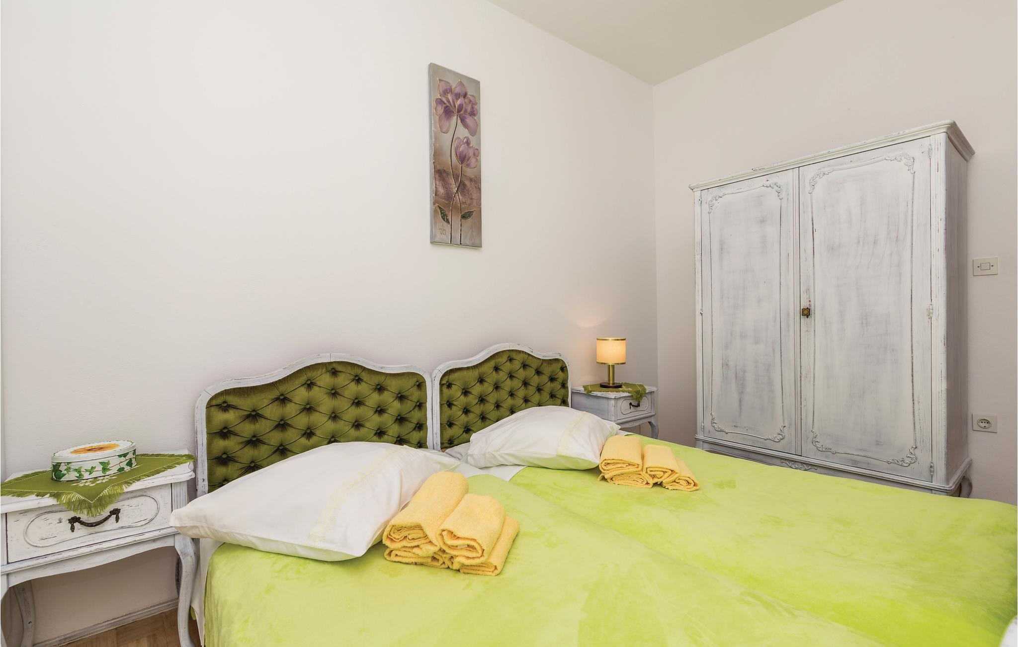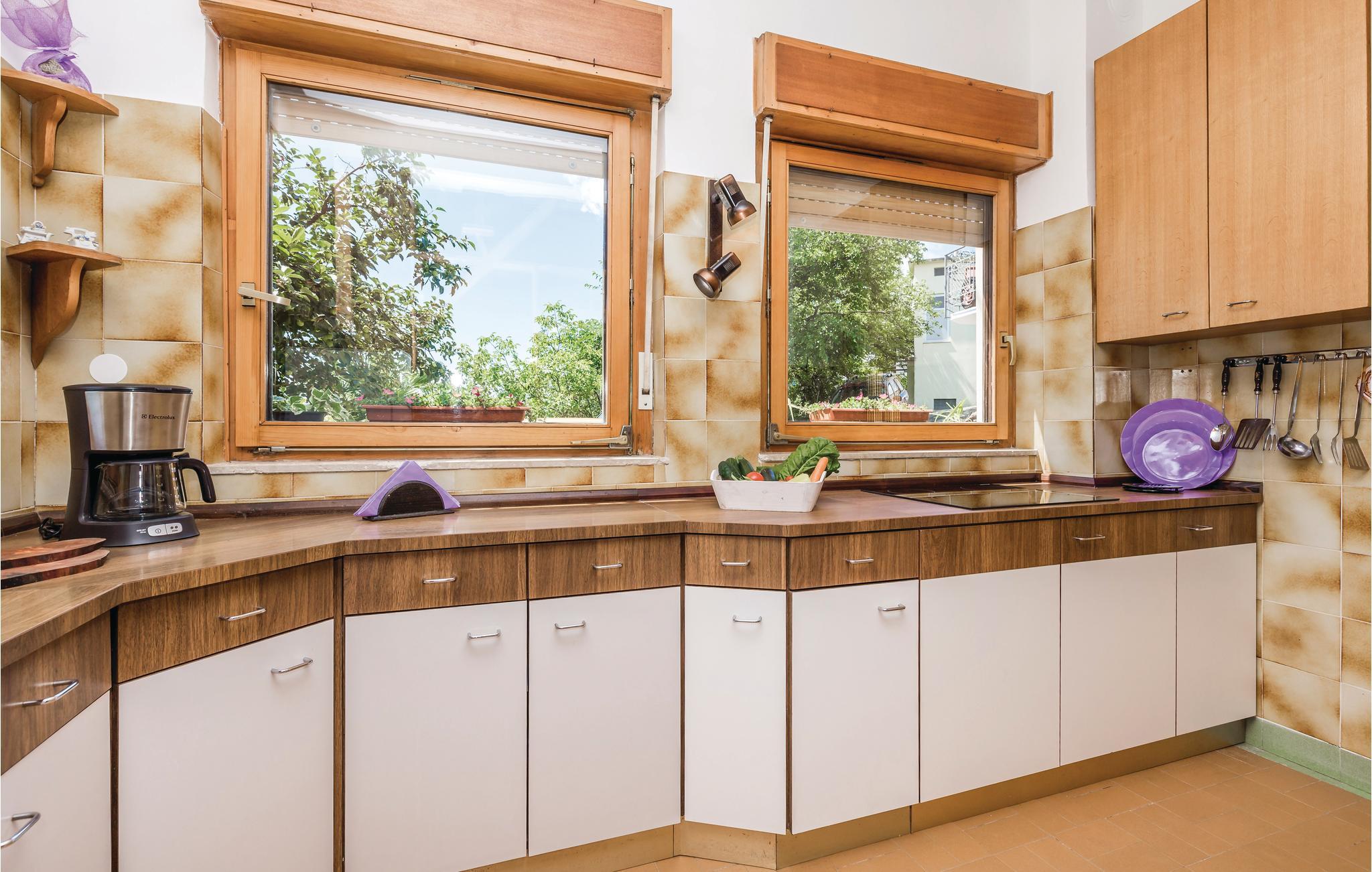 Denne stueplans ferielejlighed er indrettet med træ, har en praktisk rumopdeling og lyse vægge. En traditionel rustik charme, med trælofter. Huset ligger i et grønt boligområde med villaer og to restauranter lige i nærheden. Mod vest møder byen Bregi et skovområde, hvis sydlige del bliver til naturparken Ucka. Bregi ligger bag Opatija og er adskilt fra landevejen E751 (250 m luftlinje fra huset) med et grønt bælte. Her bor i langt fra byens støj og trafiklarm og kan holde en rolig og afslappet ferie. Her er sågar to skønne terrasser: en foran lejligheden i skyggefulde omgivelser og den anden bag huset med grill, som er til fælles brug. Får I lyst til byens liv og leben, så tag en tur til Opatija, med talrige restauranter og cafeer.