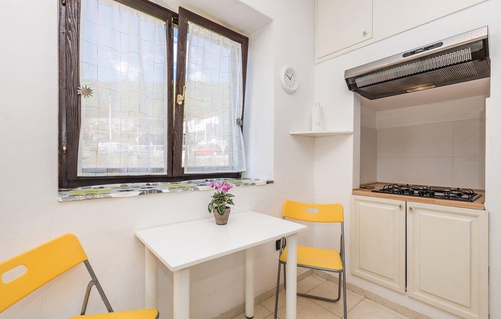 I en lille by ved en skråning af Ucka bjergkæden ligger denne venlige ferielejlighed, som strækker sig over stueetagen og første sal. Boligen er indrettet med meget kærlighed og befinder sig i rolige omgivelser. Lejligheden ligger over Brsec og byder på en fantastisk udsigt. For at komme til stueetagen skal I gå på en del trapper. Her finder I den overdækkede terrasse. Boligen ligger det perfekte sted for at opdage Istrien og kvarnerbugten, såvel som strandene neden for Brsec, som er nogle af de flotteste strande ved Adriaen.