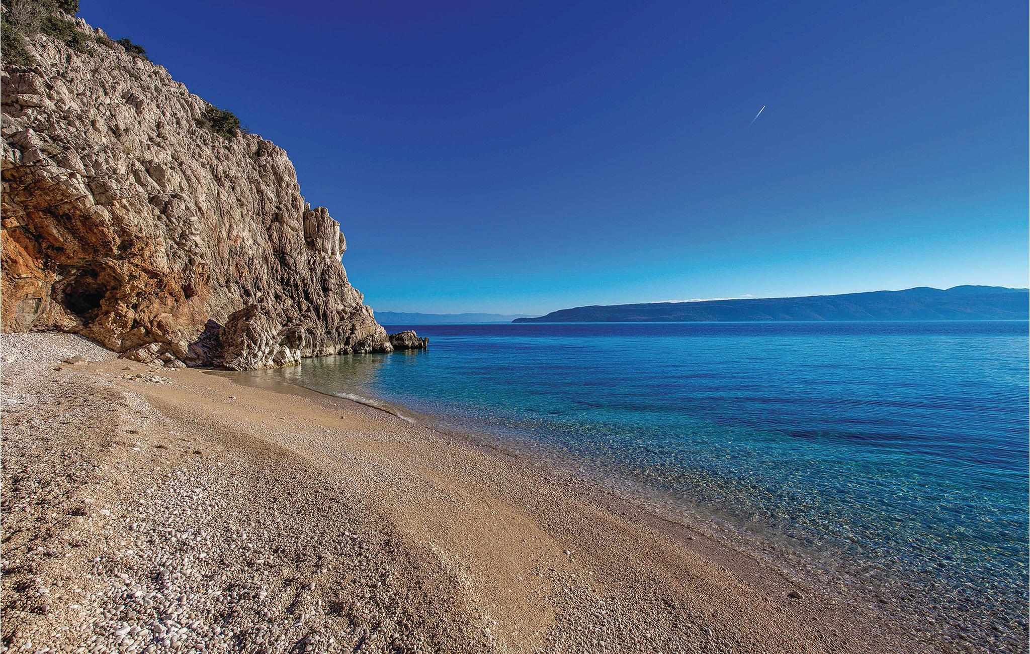 Et ideelt feriemål for alle der holder af natur. Nyd den skønne udsigt over havet, den store grund, samt de fredelige omgivelser. Dette skønne feriehus, hvis historie går tilbage til 1880, ligger i en lille by på en bjergside i Ucka-bjergene, ikke langt fra Brsec. I kan vælge mellem flere terrasser og sidde i den egnstypiske konoba om aftenen, der ligger på husets anden side. her er et multifunktionsbord med både bordtennis, bordfodbold, billard eller roulettet - alt efter jeres foretrukne valg. De sidste ca. 30 m op til huset er en grusvej. Et ideelt feriemål, hvis I vil lære Kvarnerbugten og Istrien rigtig godt at kende. Slap af på den skønne strande ved Brsec.