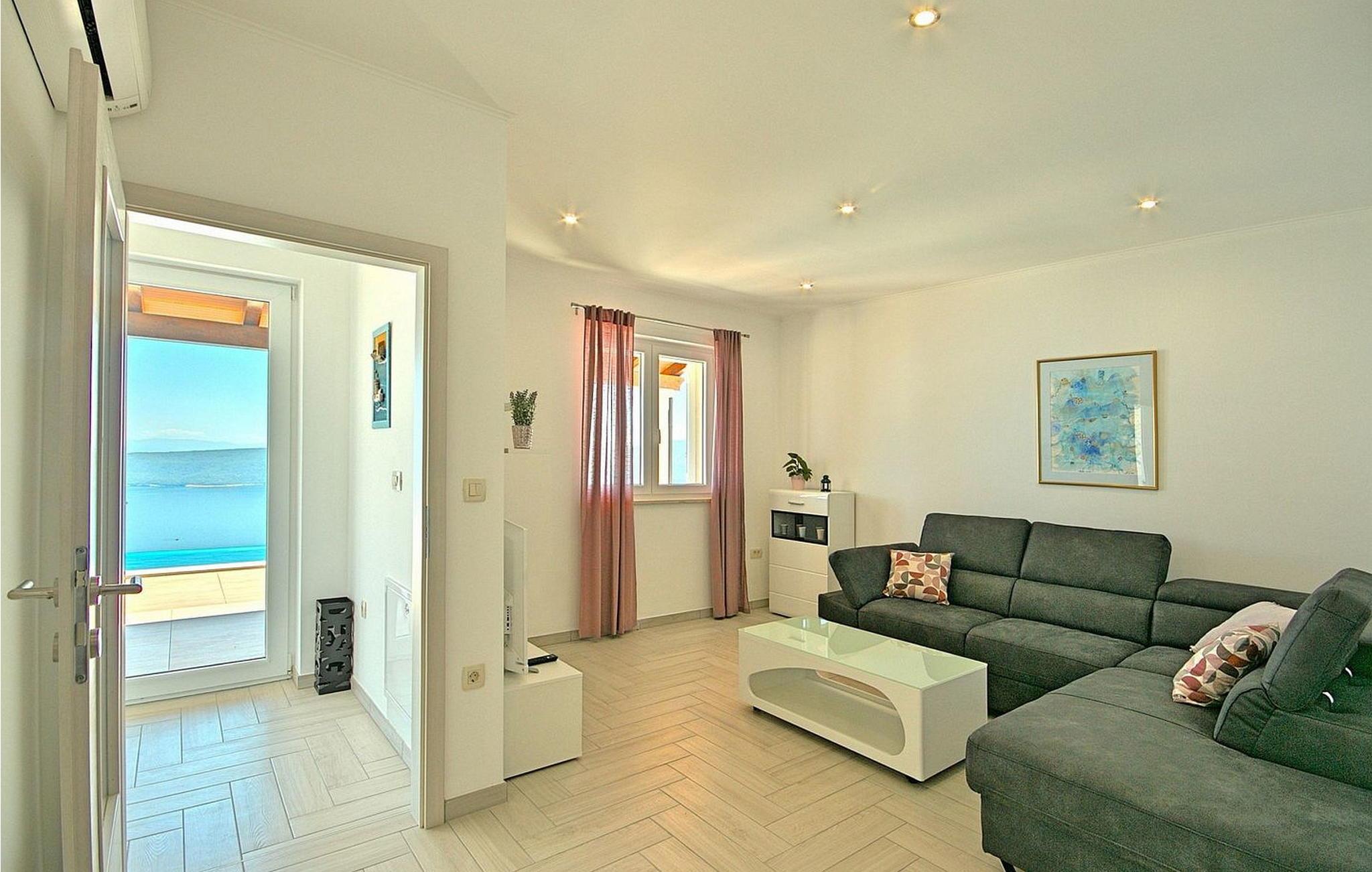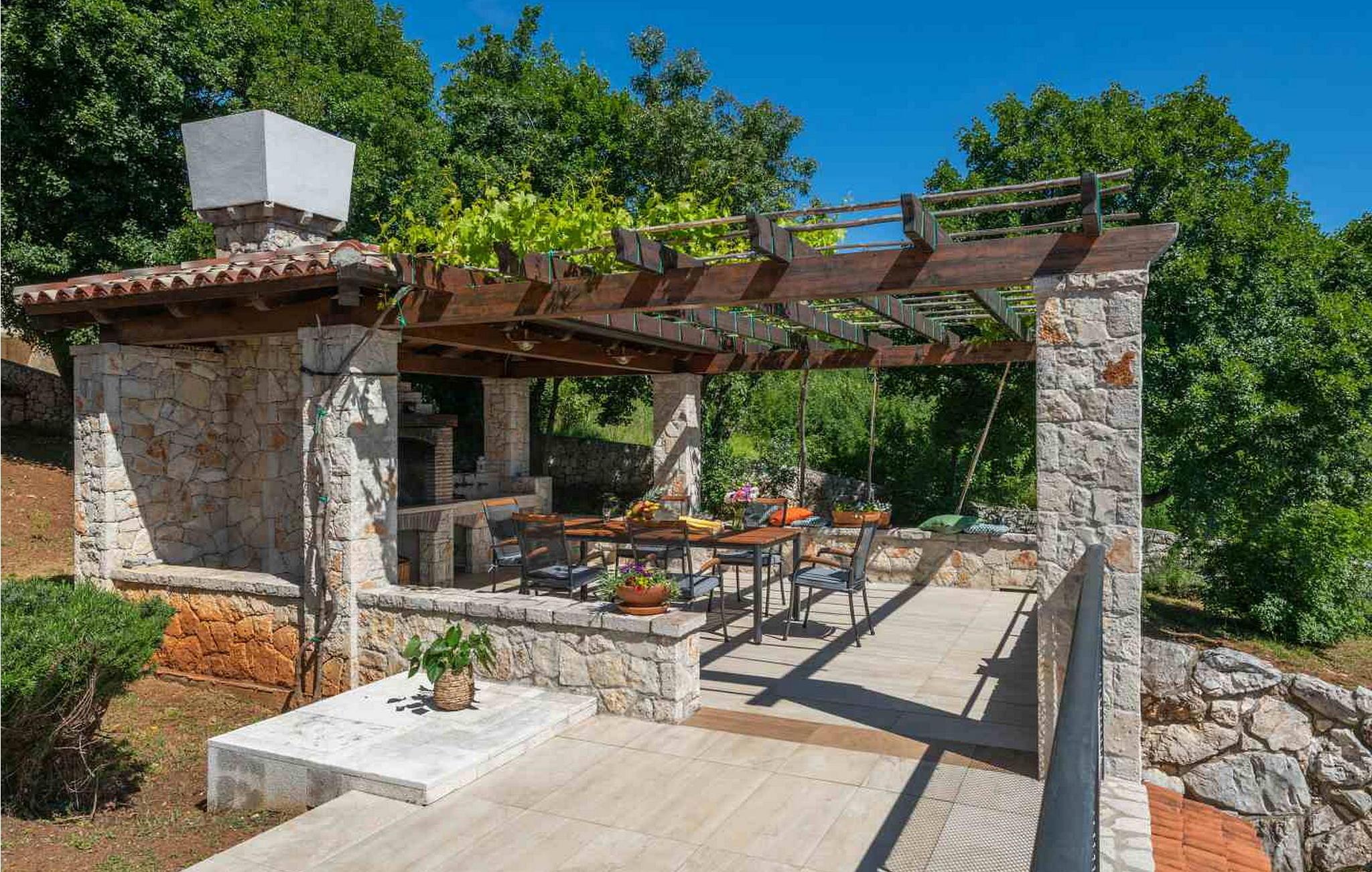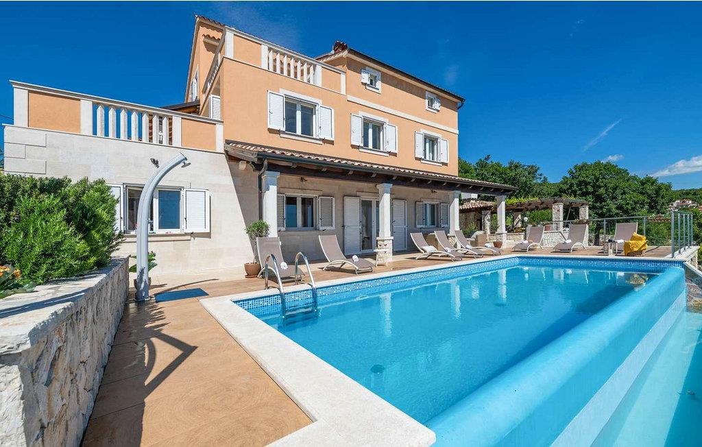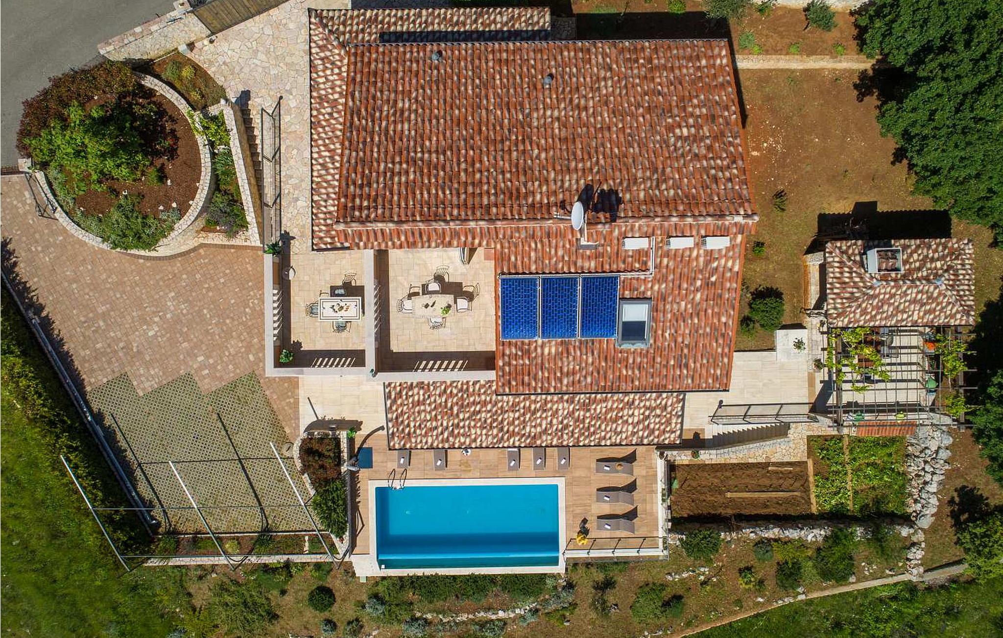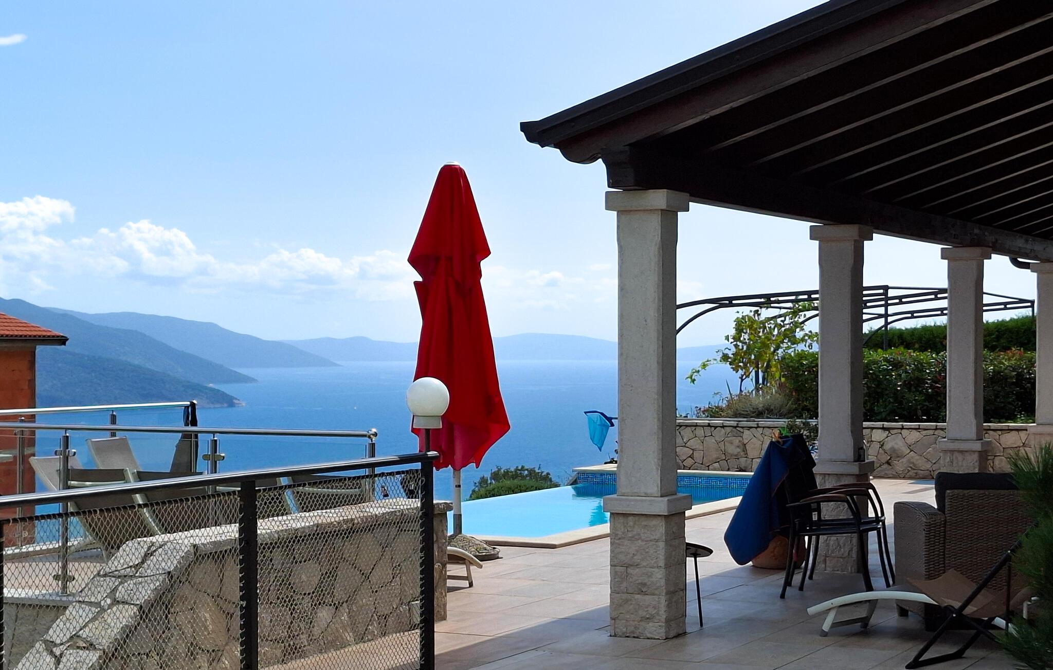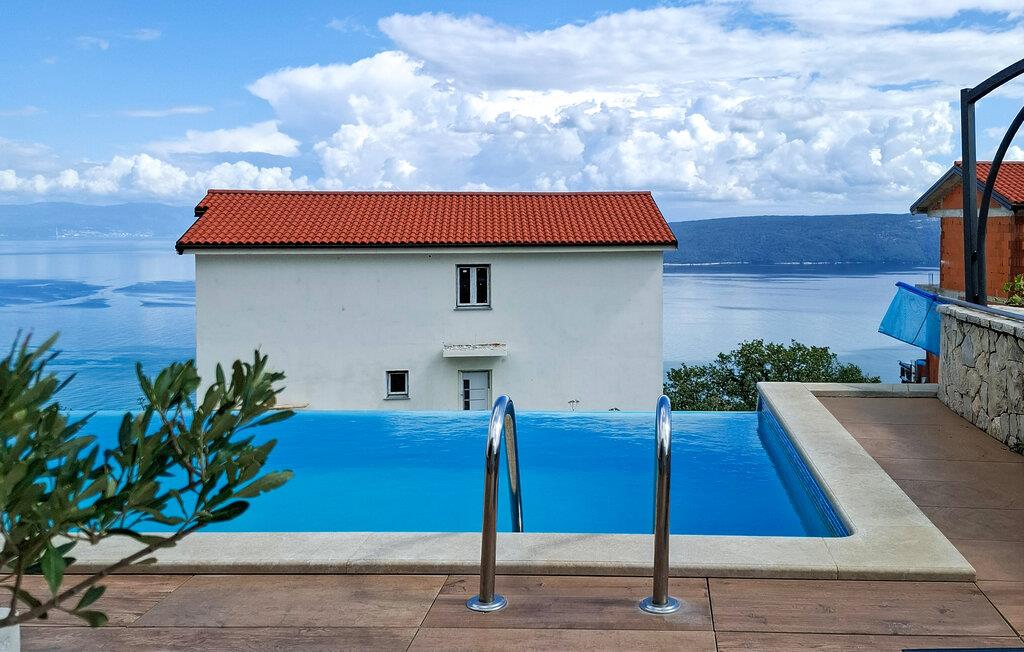 Gæsterne i dette smukke, moderne feriehus kan nyde den enestående udsigt over havet og de omkringliggende øer fra de øverste etager. I nærheden af huset ligger færgehavnen, ideel for dem, der ønsker at besøge øerne Cres og Losinj. Den nærmeste butik og restaurant samt stranden ligger i landsbyen Brsec, kun 2,5 km væk. På en lukket grund på 1500 kvm er der udendørs swimmingpool på 24 kvm, overdækket terrasse med grill og spisebord, liggestole, tre parkeringspladser og en parkeringsplads i garagen.