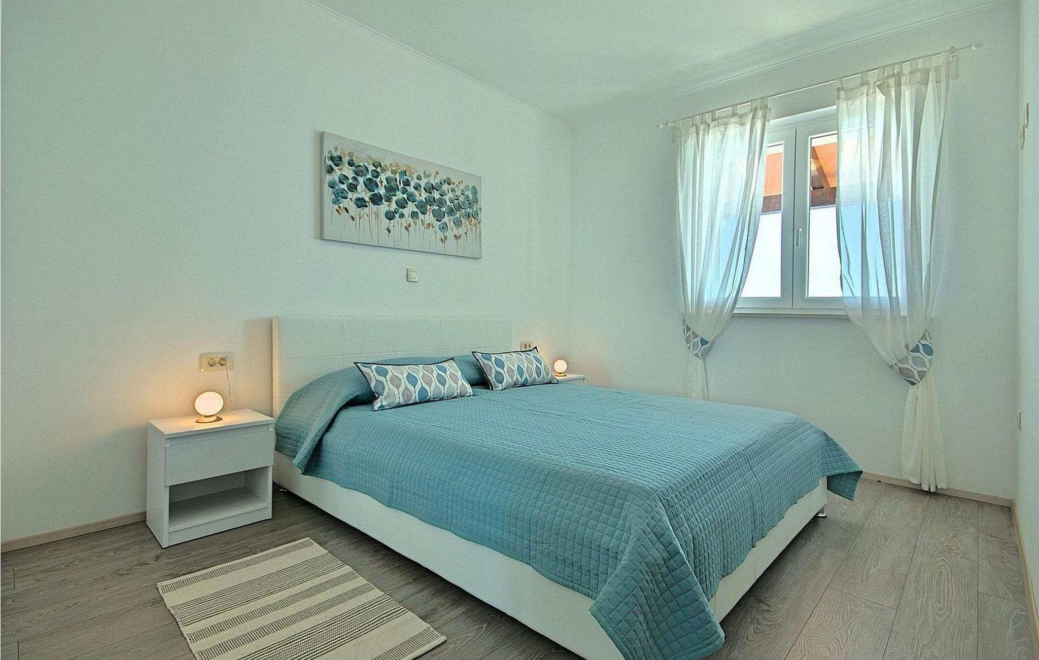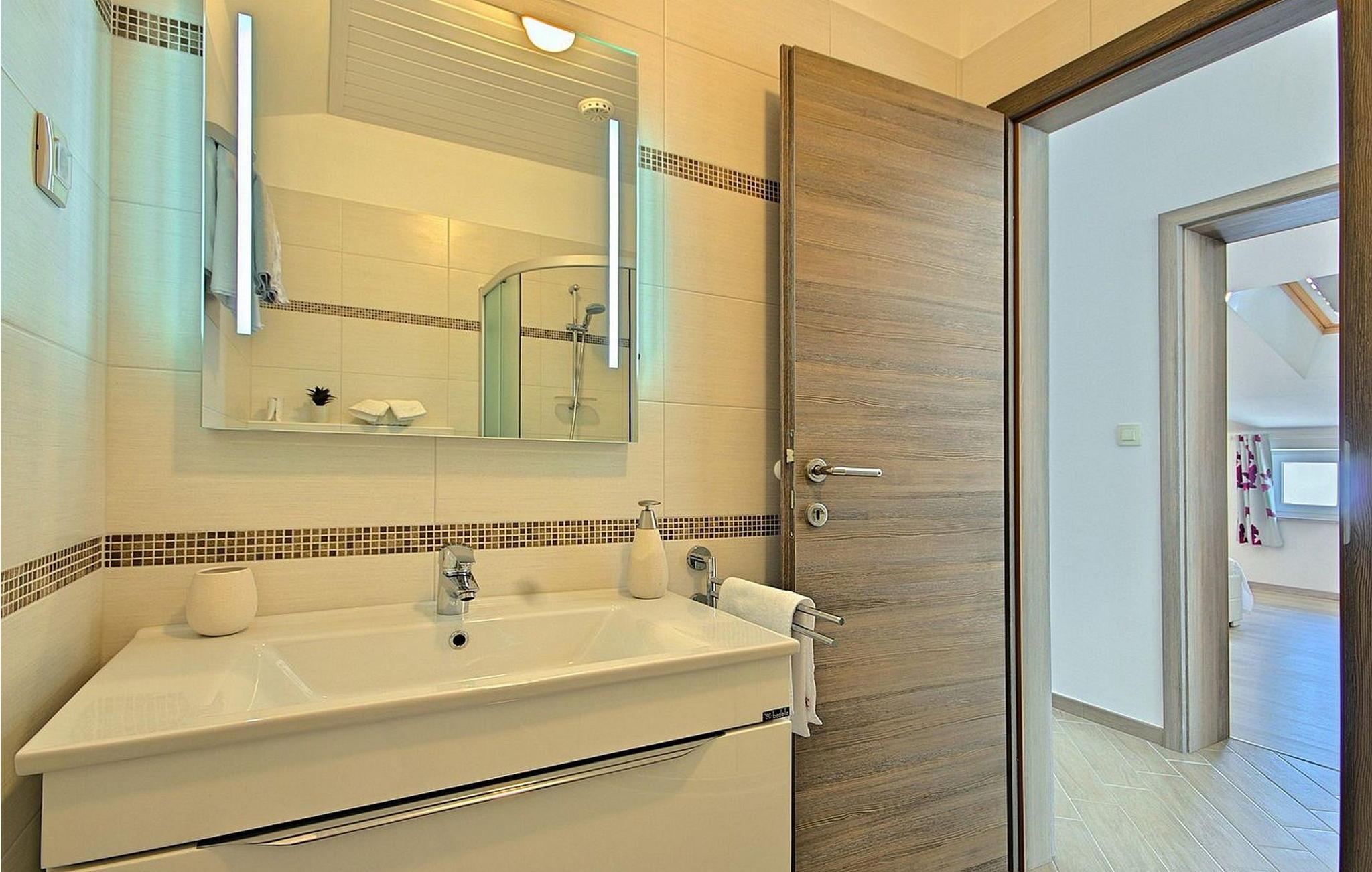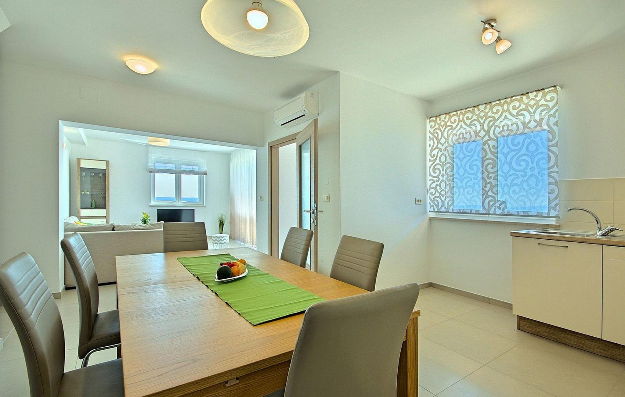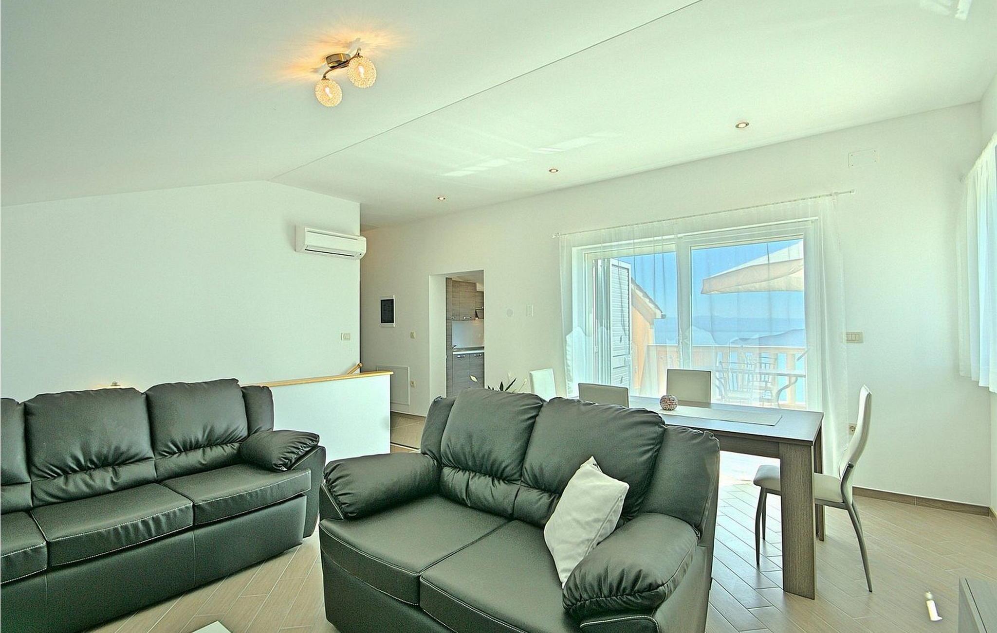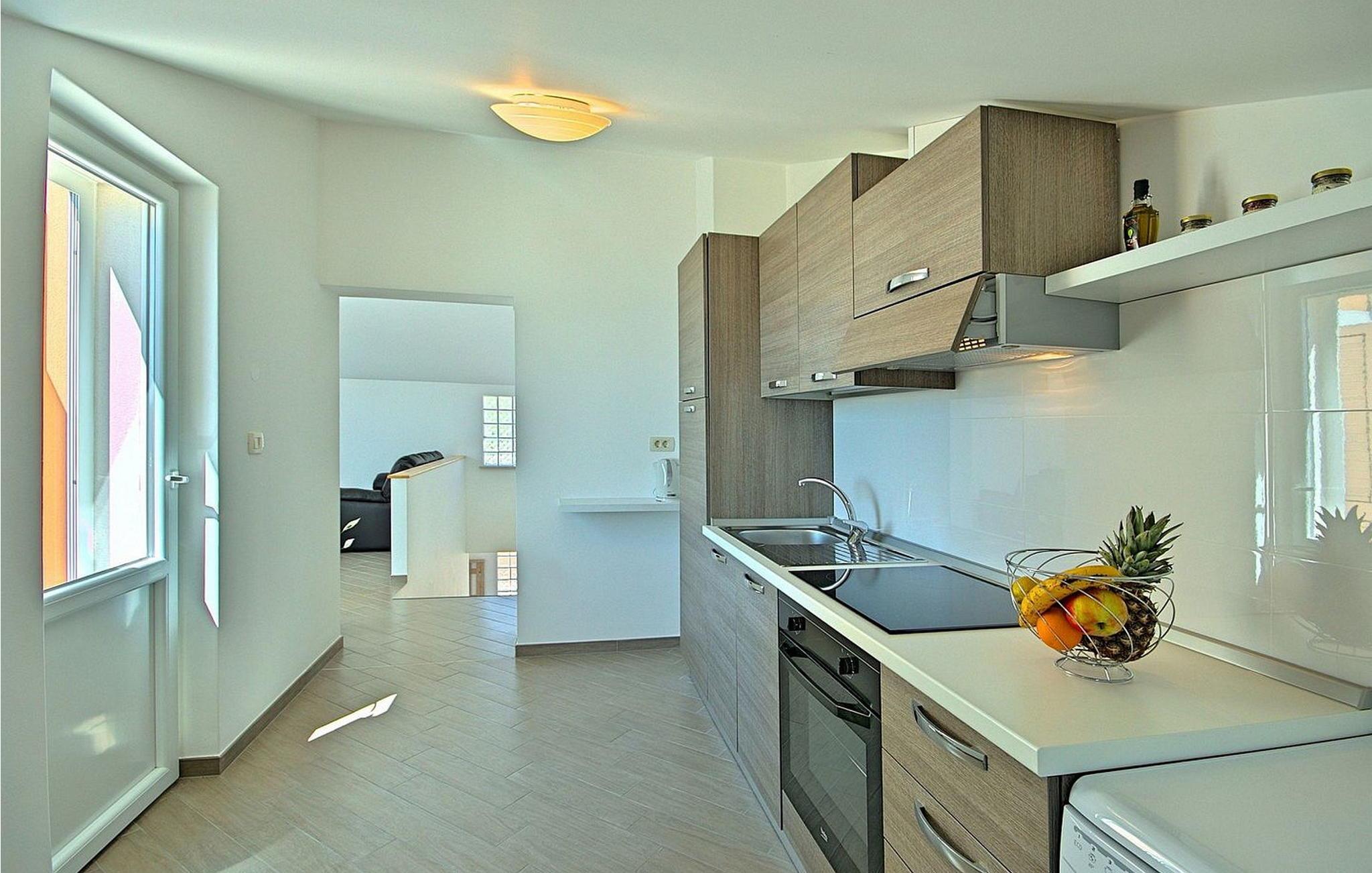 Gæsterne i dette smukke, moderne feriehus kan nyde den enestående udsigt over havet og de omkringliggende øer fra de øverste etager. I nærheden af huset ligger færgehavnen, ideel for dem, der ønsker at besøge øerne Cres og Losinj. Den nærmeste butik og restaurant samt stranden ligger i landsbyen Brsec, kun 2,5 km væk. På en lukket grund på 1500 kvm er der udendørs swimmingpool på 24 kvm, overdækket terrasse med grill og spisebord, liggestole, tre parkeringspladser og en parkeringsplads i garagen.