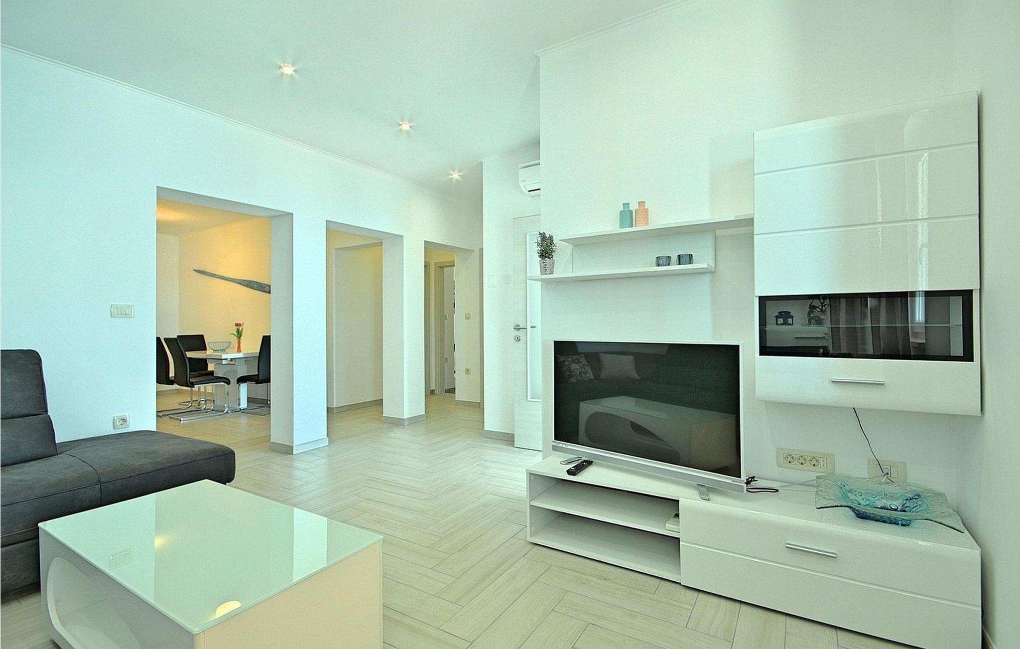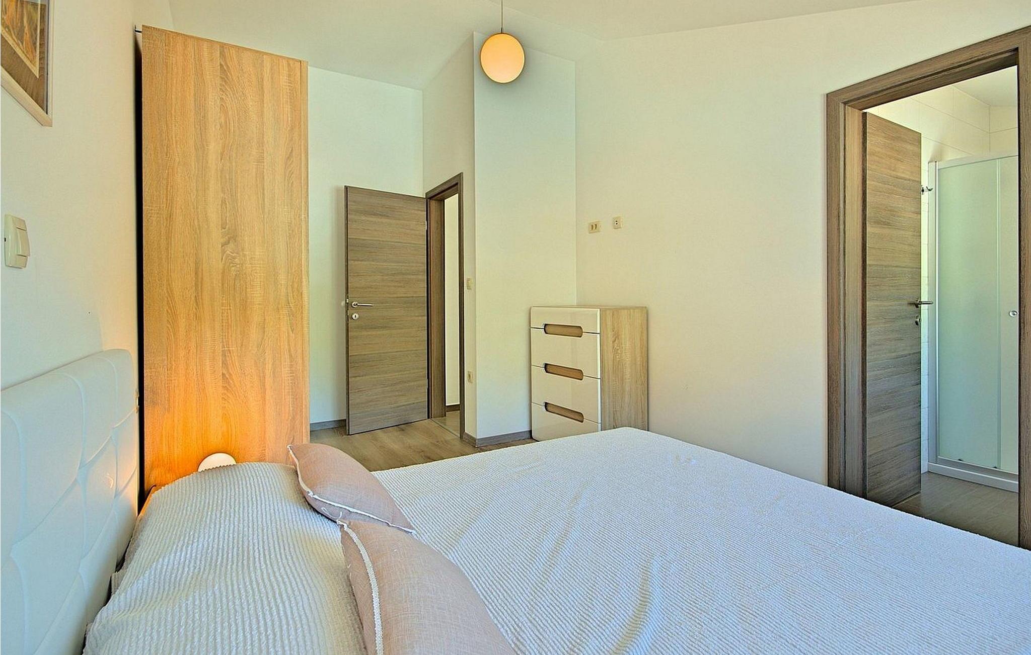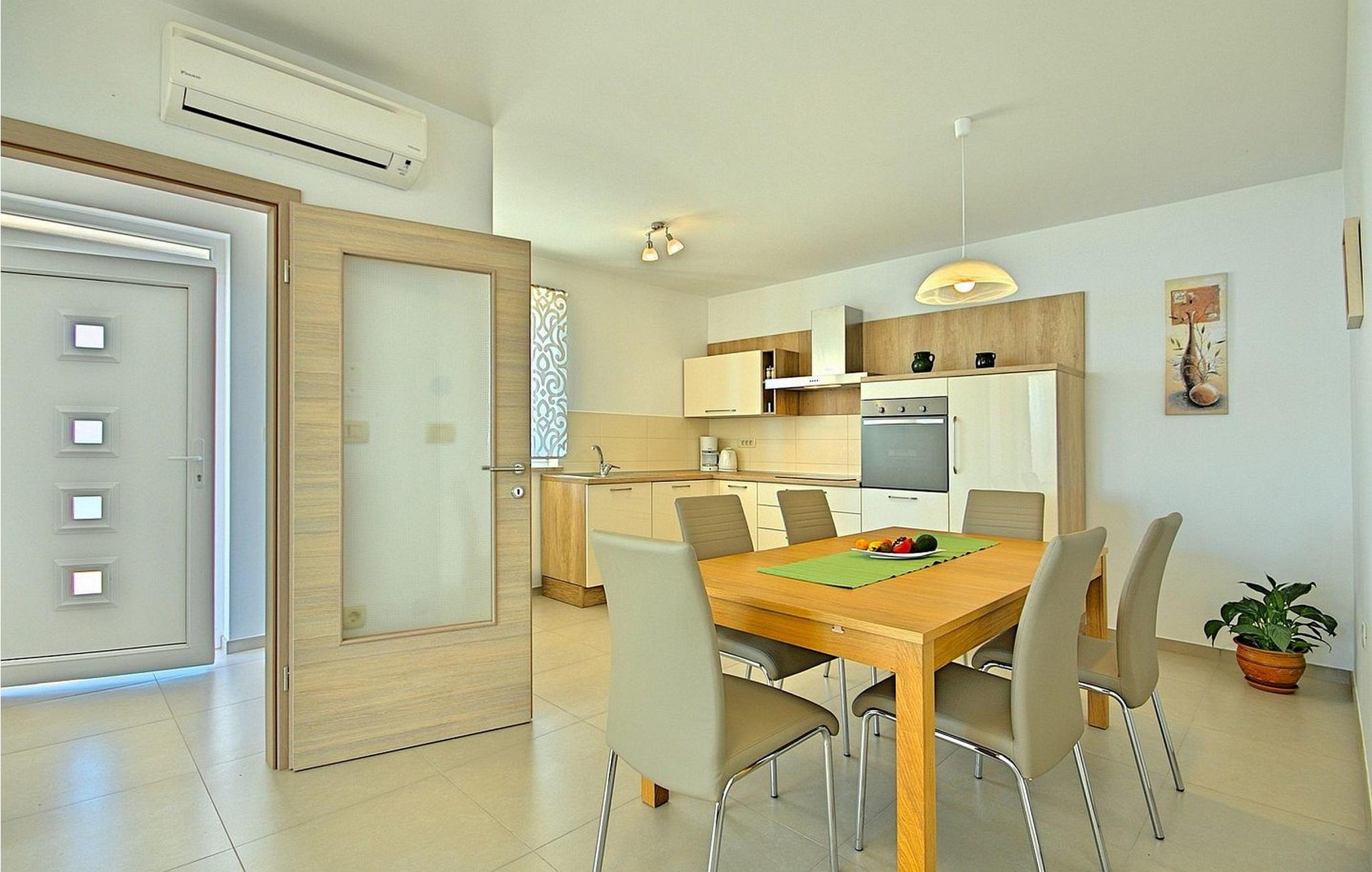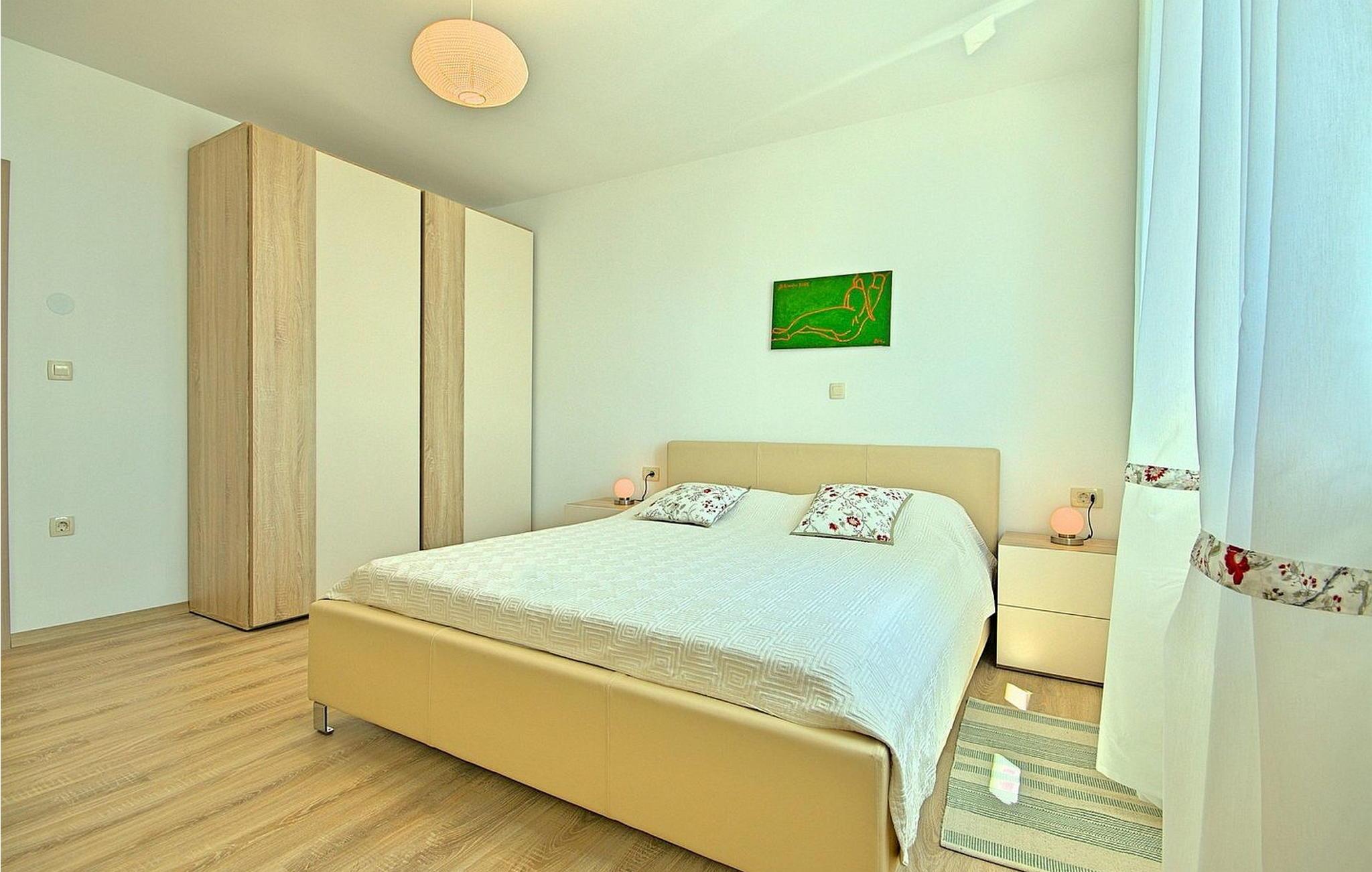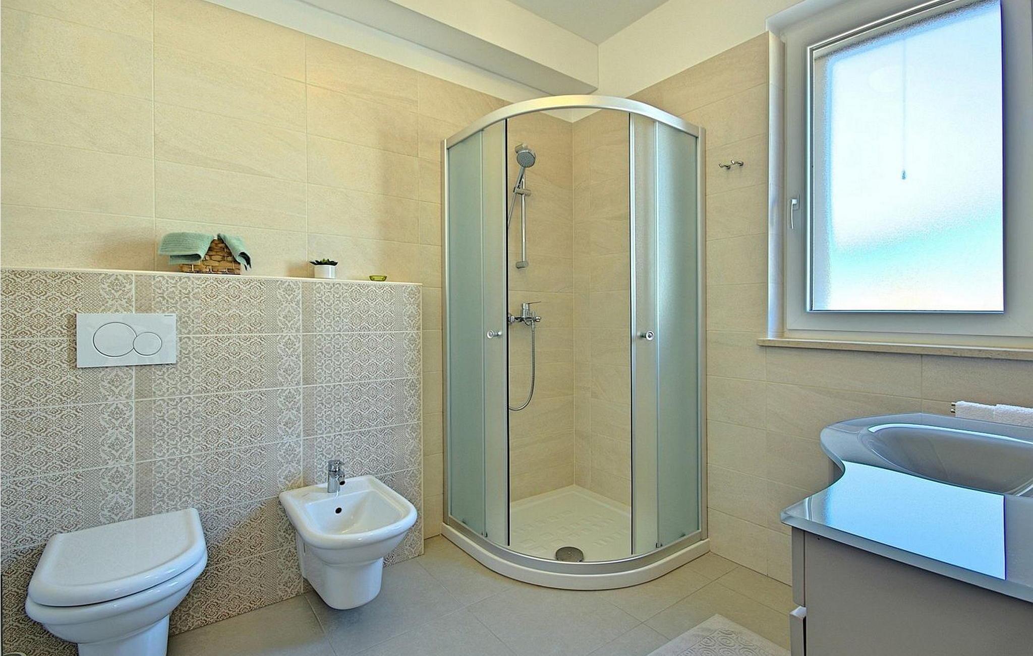 Gæsterne i dette smukke, moderne feriehus kan nyde den enestående udsigt over havet og de omkringliggende øer fra de øverste etager. I nærheden af huset ligger færgehavnen, ideel for dem, der ønsker at besøge øerne Cres og Losinj. Den nærmeste butik og restaurant samt stranden ligger i landsbyen Brsec, kun 2,5 km væk. På en lukket grund på 1500 kvm er der udendørs swimmingpool på 24 kvm, overdækket terrasse med grill og spisebord, liggestole, tre parkeringspladser og en parkeringsplads i garagen.