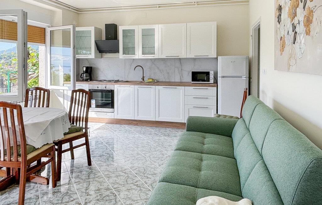Lejligheden og haven har en smuk udsigt over havet og Kvarnerbugten. Placeringen giver mange muligheder for en varieret ferie. Icici er kendt som det nautiske centrum af Opatija Riviera med ACI-lystbådehavnen, der tilbyder en komplet søfartsservice, i centrum af byen er der en stor strand, der har fået tildelt det Blå Flag og tilbyder en række sportsgrene ud over solbadning og svømning. Afrund dit ophold med de mange promenader og stier i baglandet. Den berømte Lungomare-promenade fører fra Opatija sydpå til Lovran. Den nærliggende Opatija er centrum af Rivieraen. En gang en berømt spaby er det i dag et populært wellness- og sundhedsturismecenter for turister fra hele verden i Opatija. Oplev interessant byarkitektur, der er en arv fra den østrig-ungarske periode. En af dem er Villa Angiolini, hvor turistmuseet ligger.